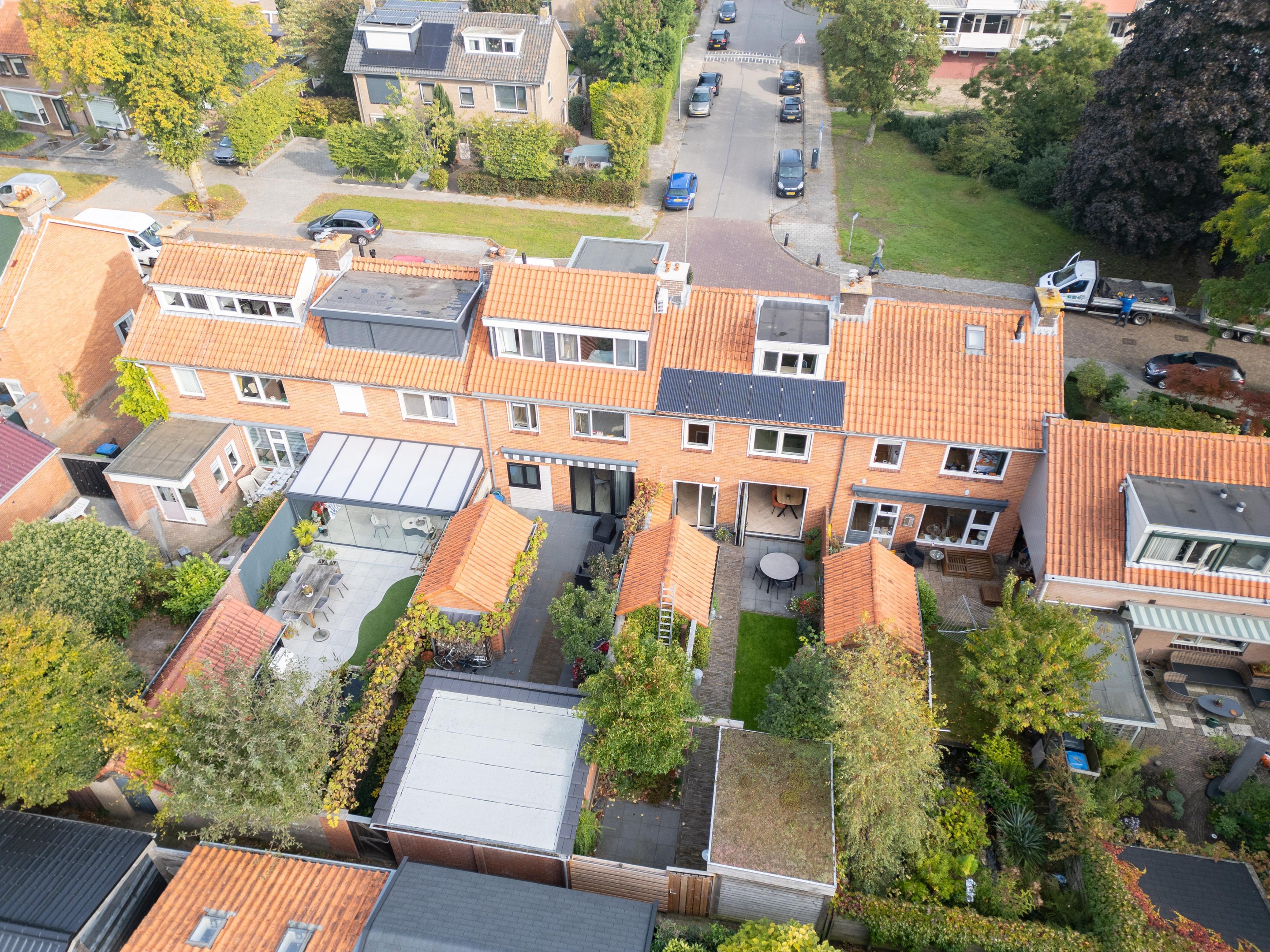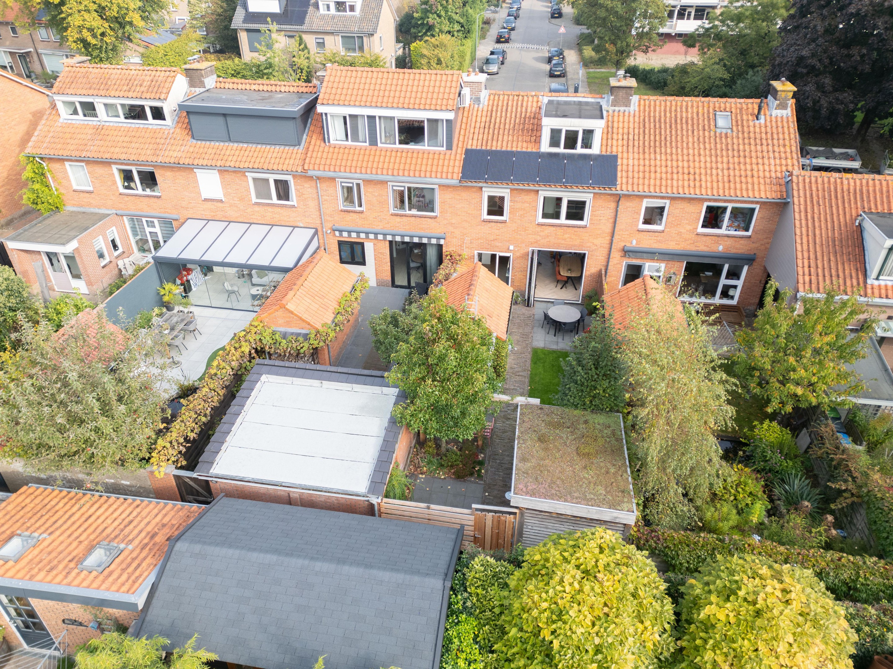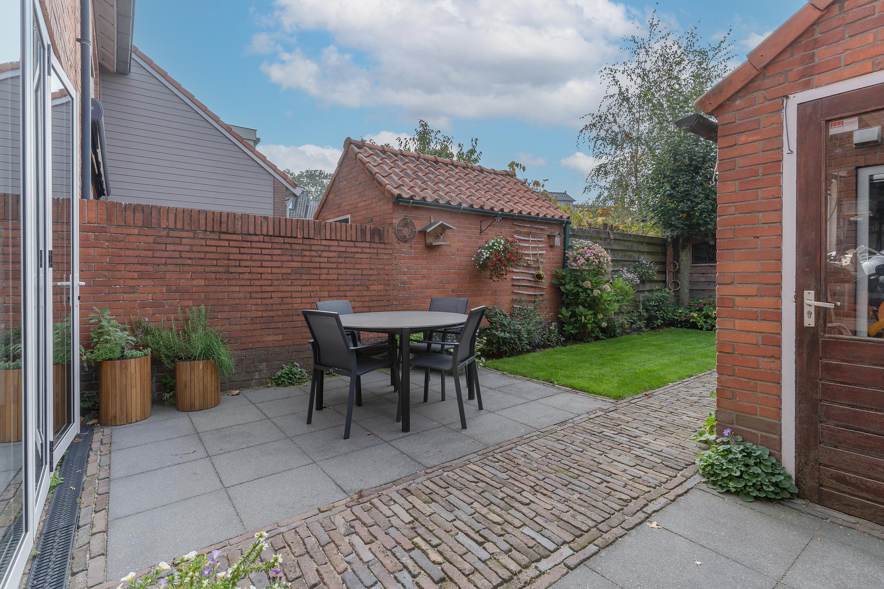 De fraai aangelegde tuin op het zonnige zuiden is jouw eigen stukje rust. Meerdere terrassen, een gazon, groene borders, twee bergingen én een achterom maken het plaatje compleet. Of je nu wakker wordt met een kop koffie in de ochtendzon of ’s avonds gezellig barbecuet met vrienden – hier voelt het altijd als thuiskomen.
