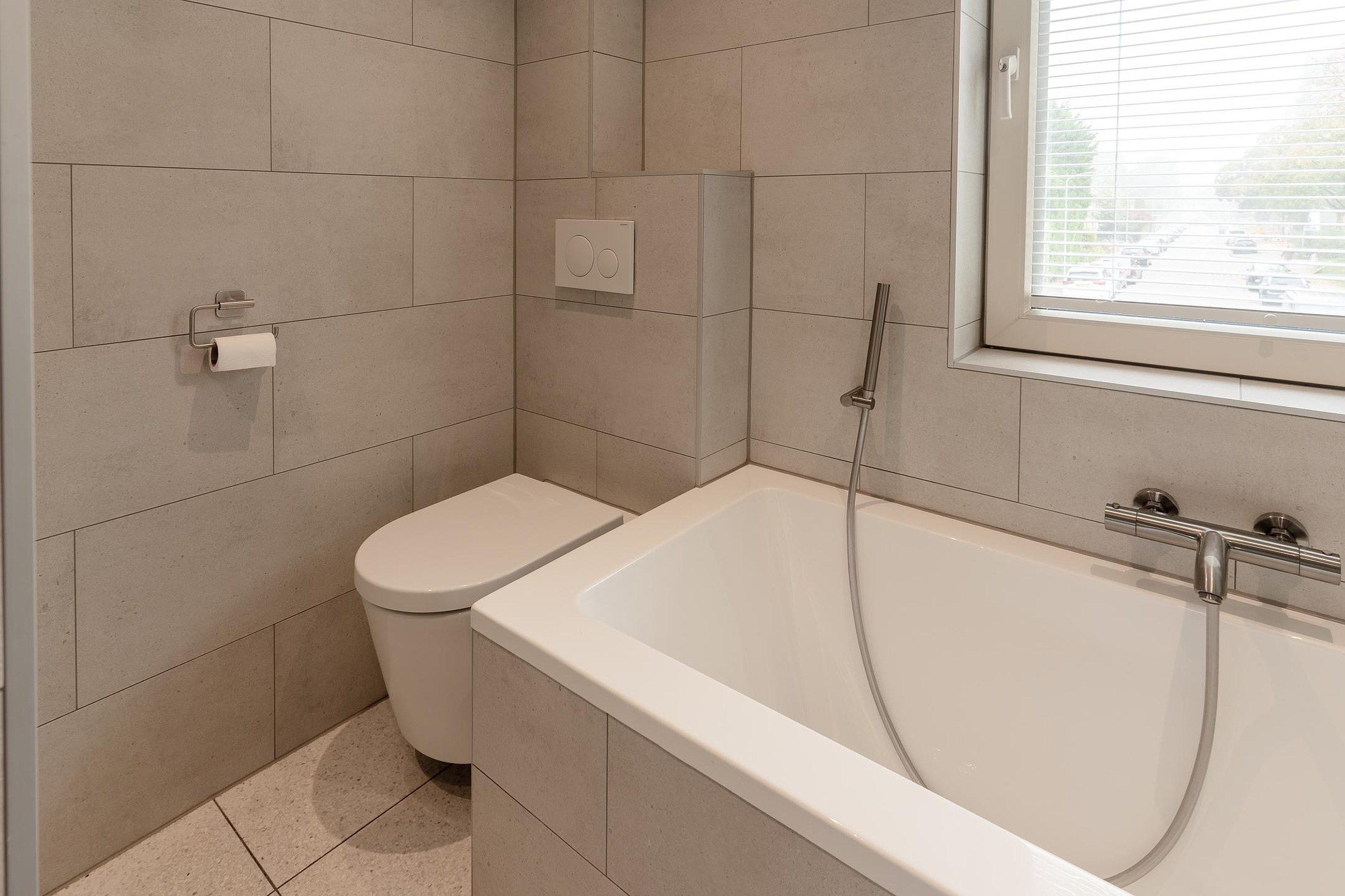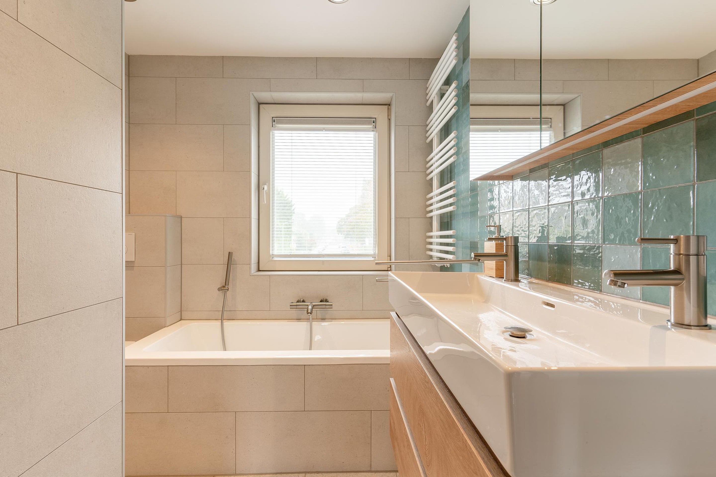 Eerste verdieping overloop, 3 slaapkamers (1 slaapkamer met balkon) en een moderne badkamer voorzien van inloopdouche, ligbad, wastafel en tweede toilet.