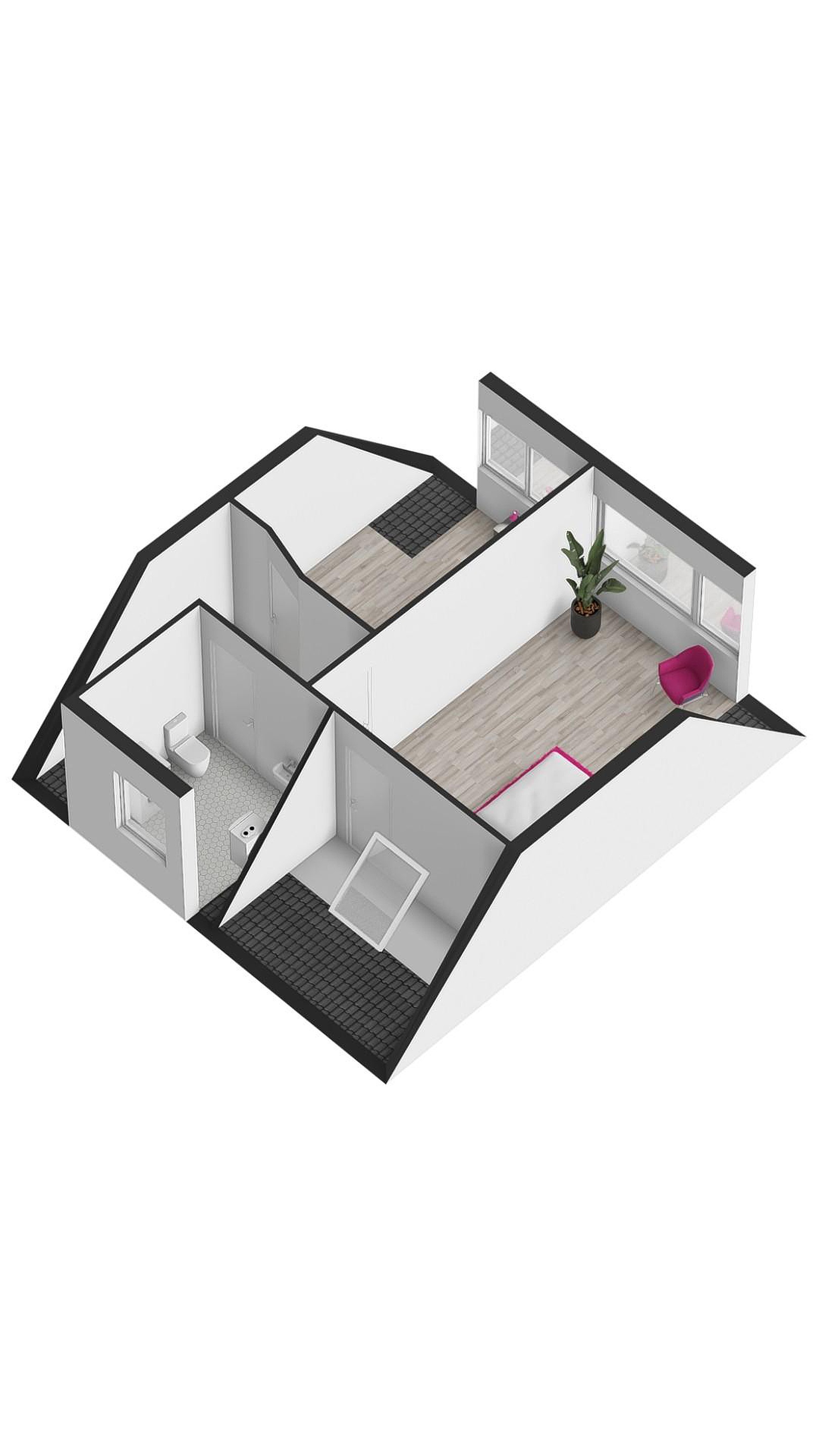 overloop, 2 slaapkamers (met dakkapel), afzonderlijke ruimte met dakkapel voor de wasapparatuur, toilet en de c.v. ketel. Bergruimte met dakvenster.