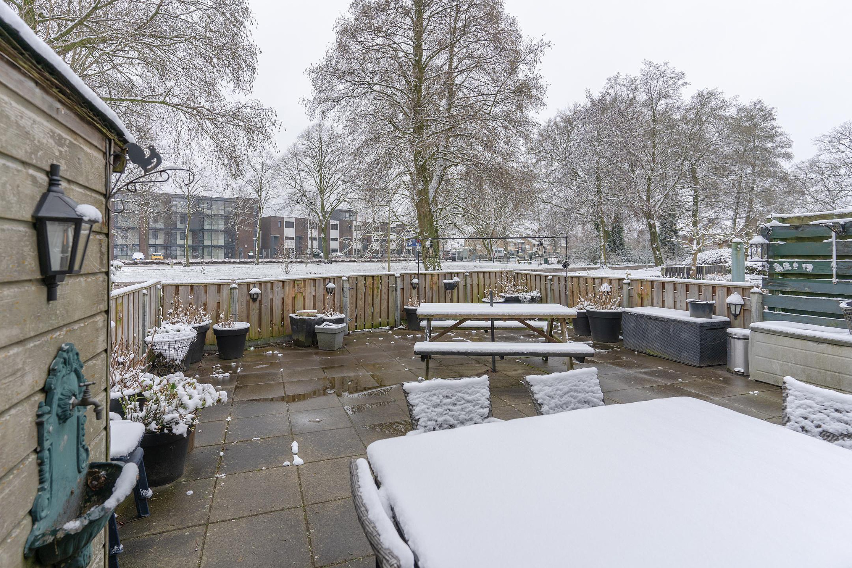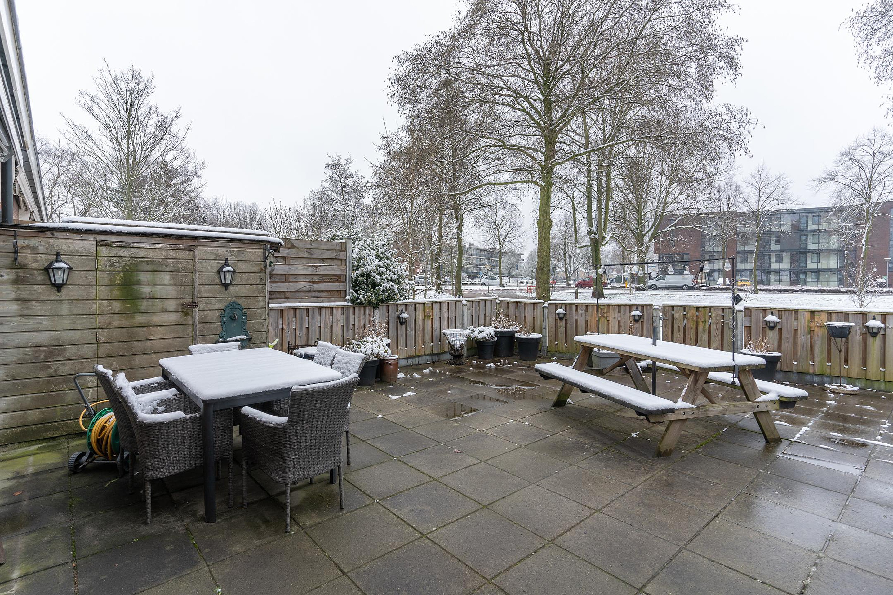 Aan de achterzijde van het huis ligt een tuin met een prettige afmeting. Deze is ongeveer 8 x 7 meter en gelegen op het zuiden. De tuin vraagt weinig onderhoud, maar biedt wel voldoende ruimte om buiten te zitten, te tuinieren en vooral te genieten.