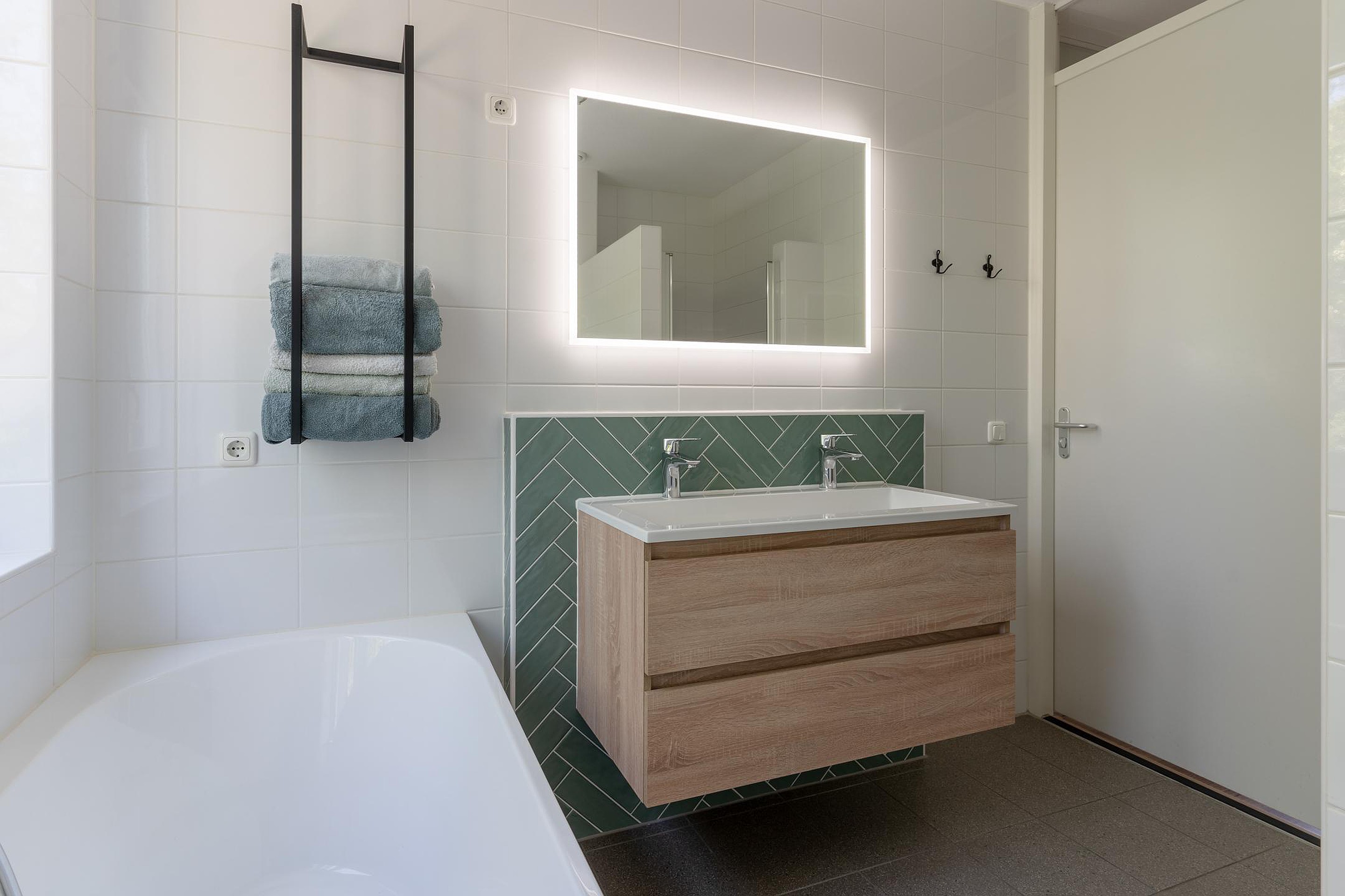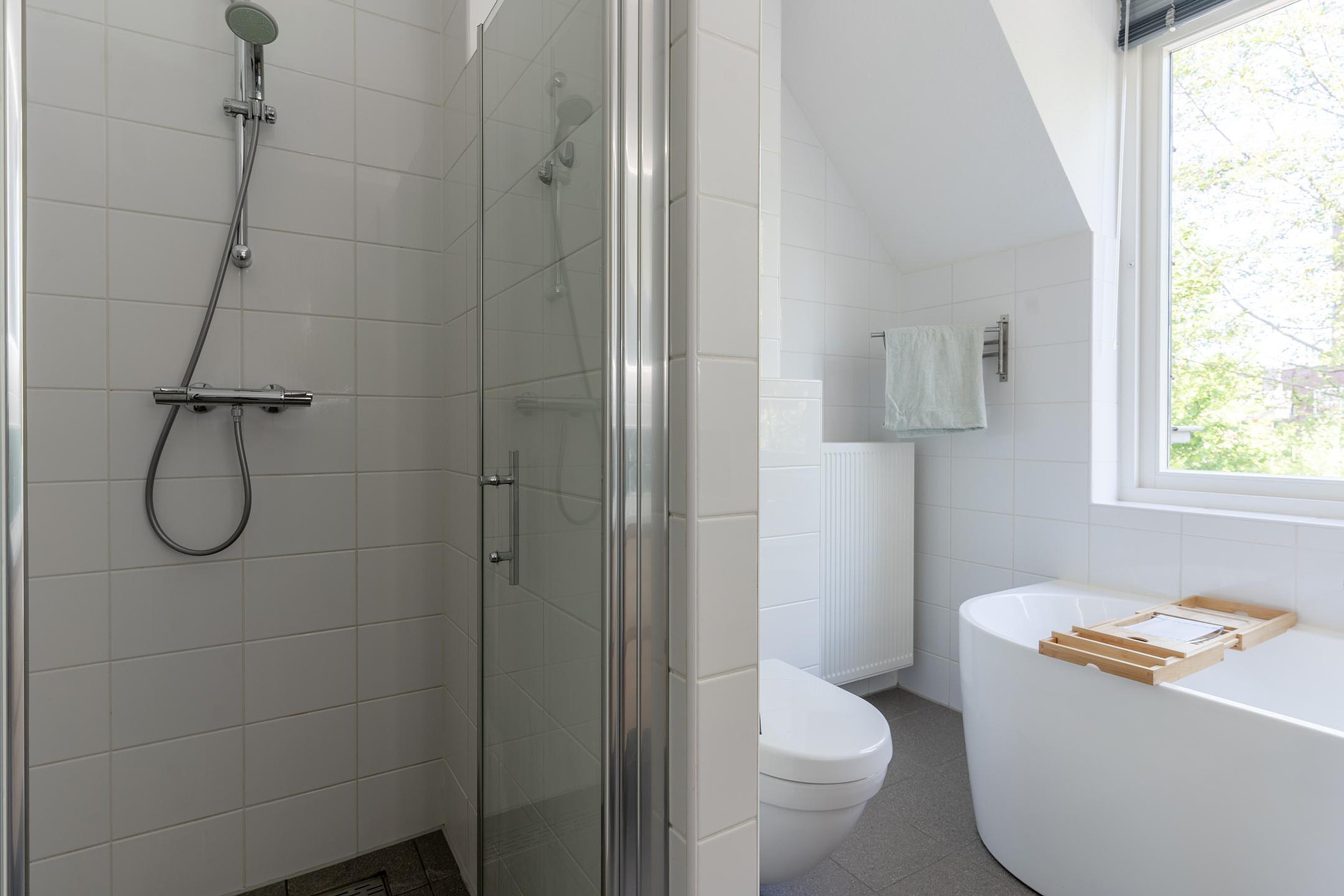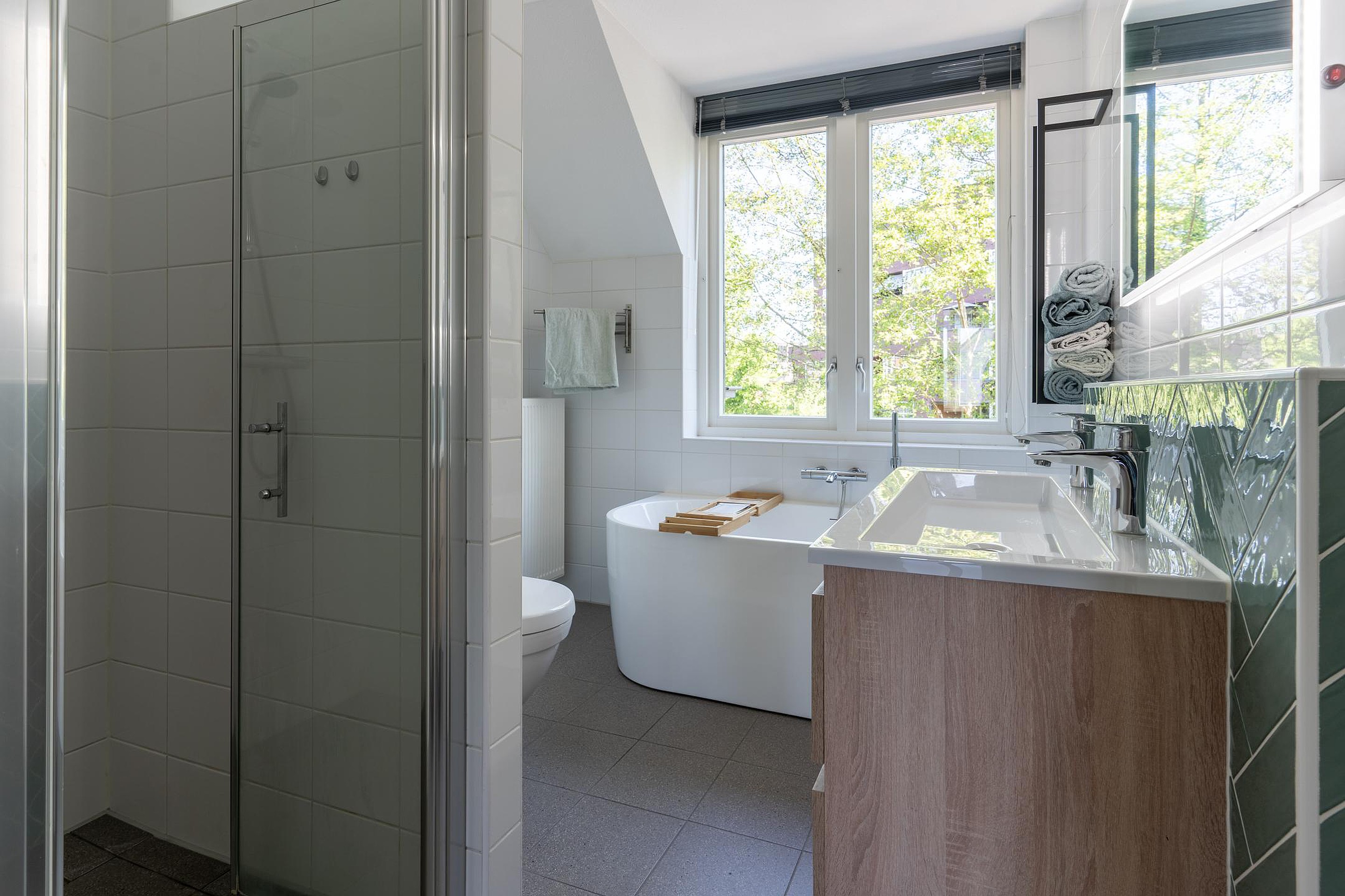 overloop, 3 slaapkamers en een moderne badkamer voorzien van douche, wastafelmeubel, ligbad en 2e toilet. Op deze etage ligt een laminaatvloer.