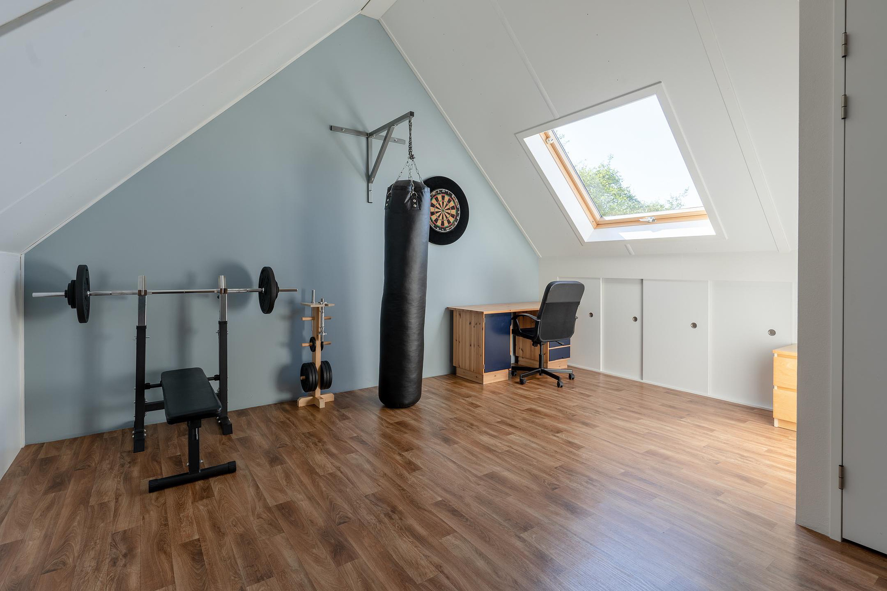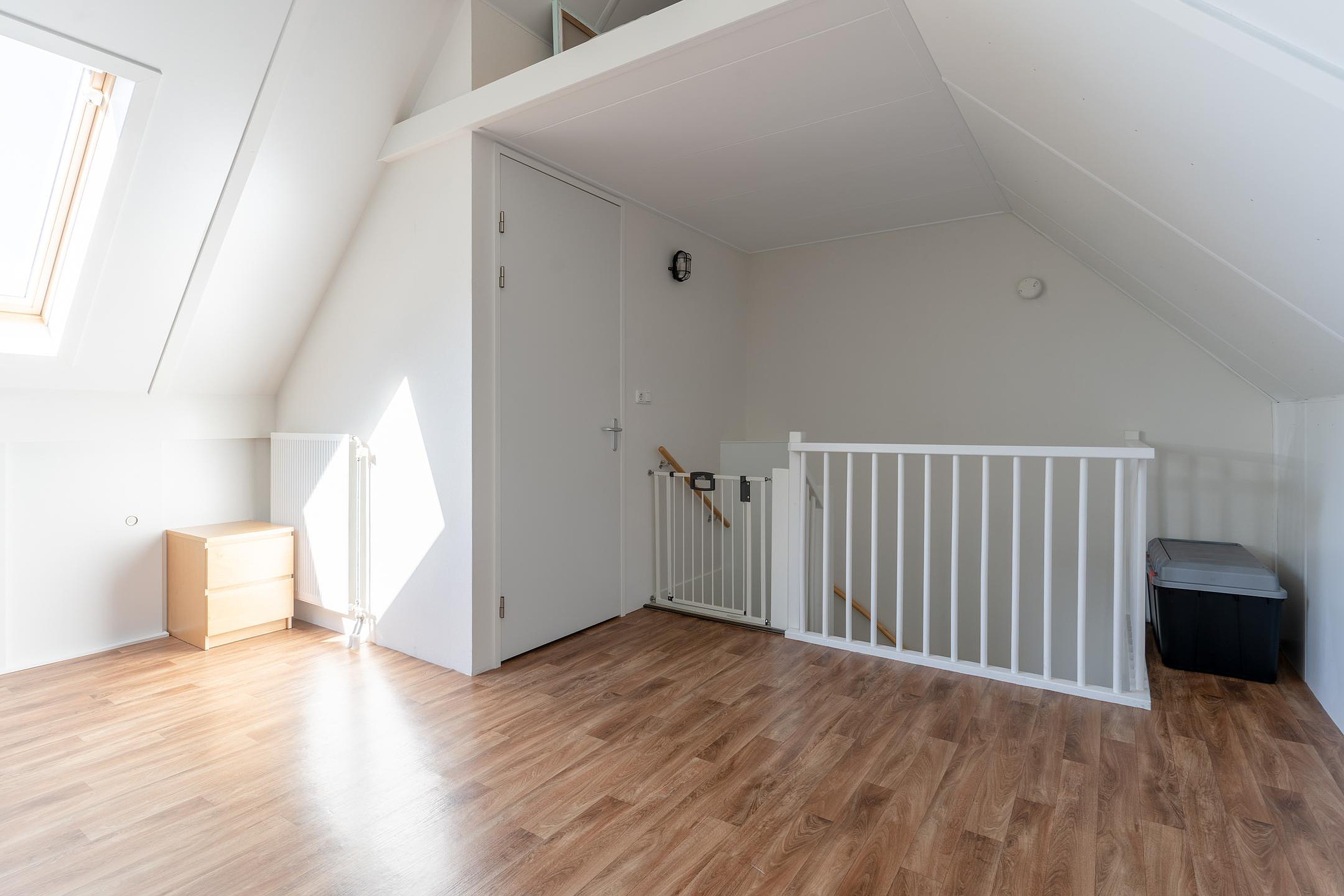 grote open zolderruimte met open vliering en veel bergruimte achter de knieschotten. Afzonderlijke wasruimte waar ook de c.v. ketel te vinden is. Op de gehele zolder ligt vinyl op de vloer.