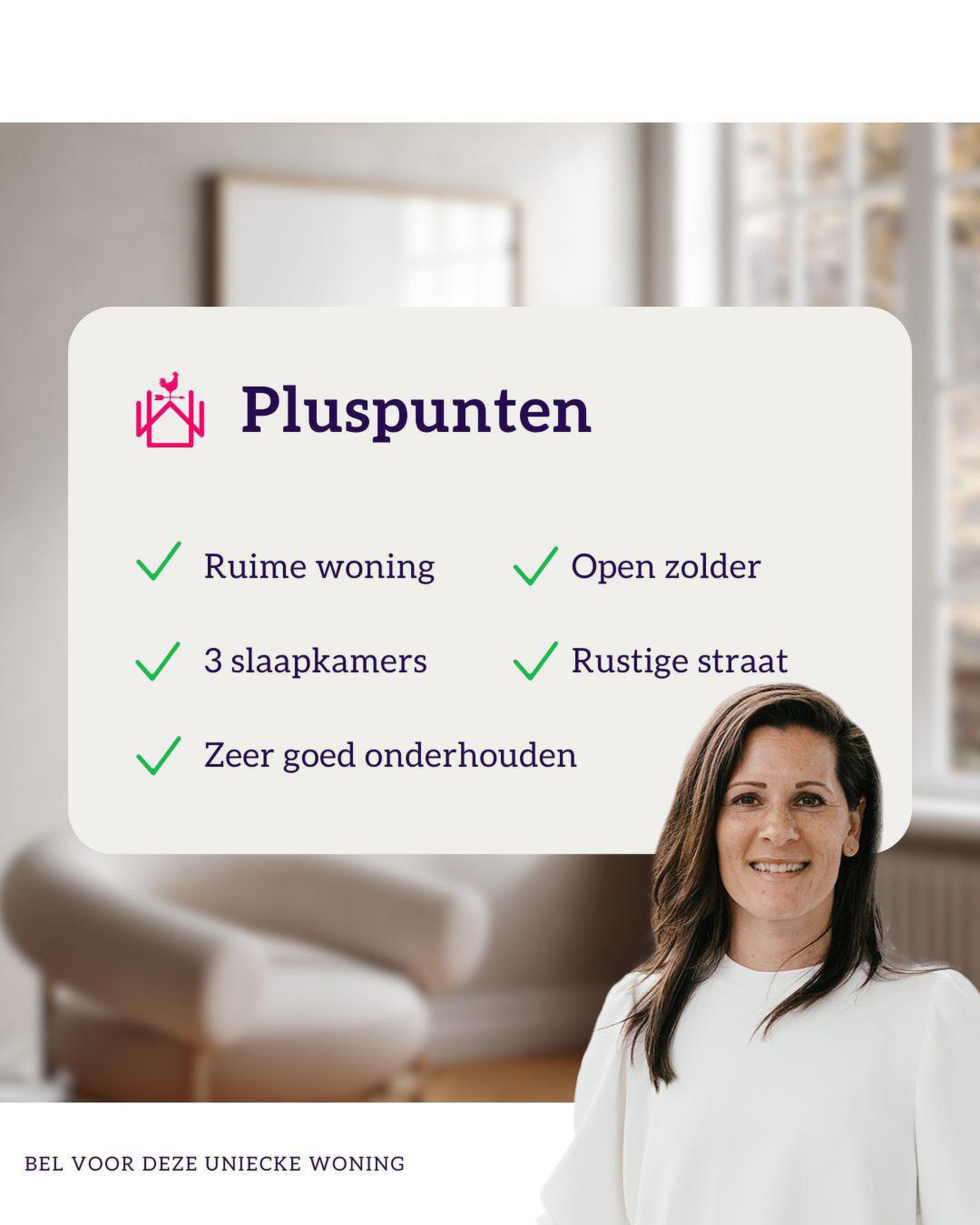 Een gezinswoning met tuin op het zuiden en een woonoppervlakte van maar liefst 150 m2. Dat noemen we nog eens royaal. Aan ruimte geen gebrek hier. De woning beschikt nu over 3 slaapkamers en een mooie open zolder, maar zijn er hier meer (slaap)kamers nodig dan is dit eenvoudig te realiseren.