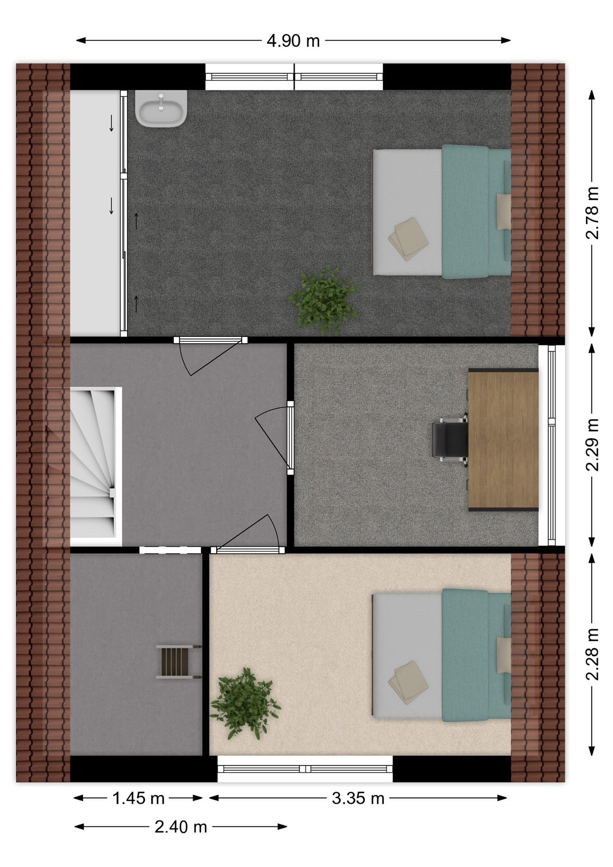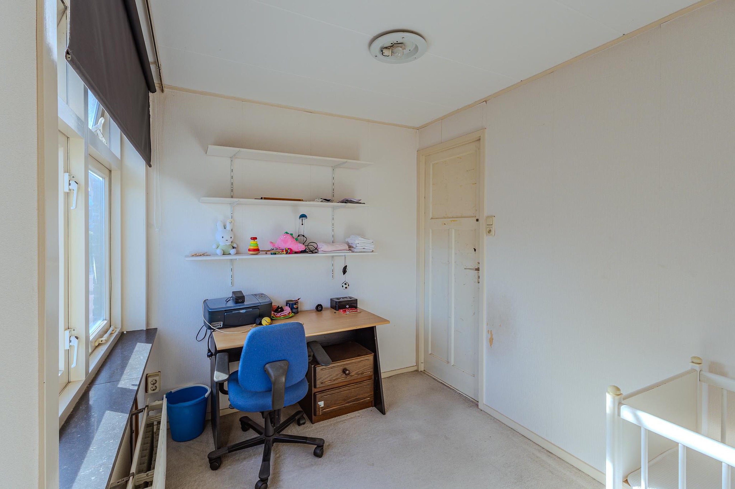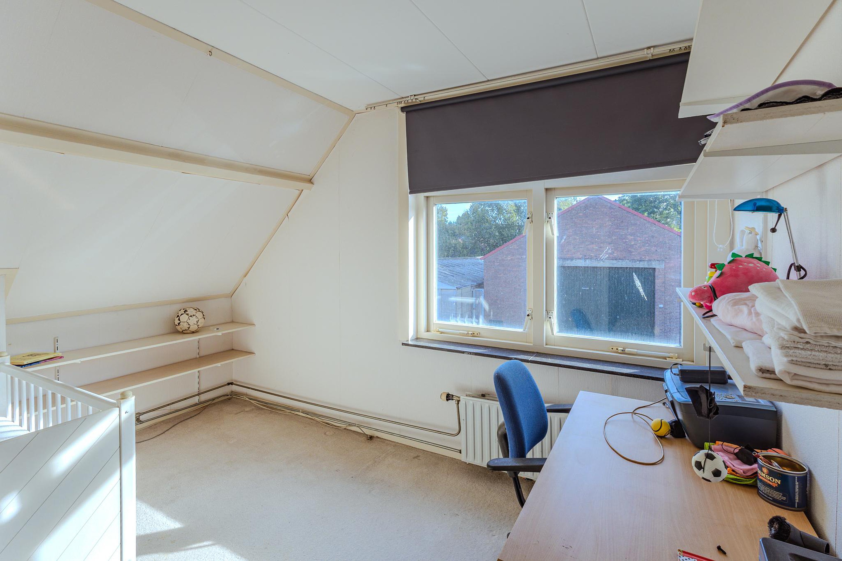 Vanaf de overloop toegang tot de de drie slaapkamers, de bergzolder en een bergkamer. De eerste slaapkamer bevindt zich aan de achterzijde van de woning en biedt een mooi zicht op de tuin, deze slaapkamer is uitgerust met een vaste schuifdeurkastenwand en een wastafel. De tweede slaapkamer is voorzien van een dakkapel en de derde slaapkamer is gelegen aan de voorzijde van de woning. De praktische bergkamer met toegang tot de bergzolder.