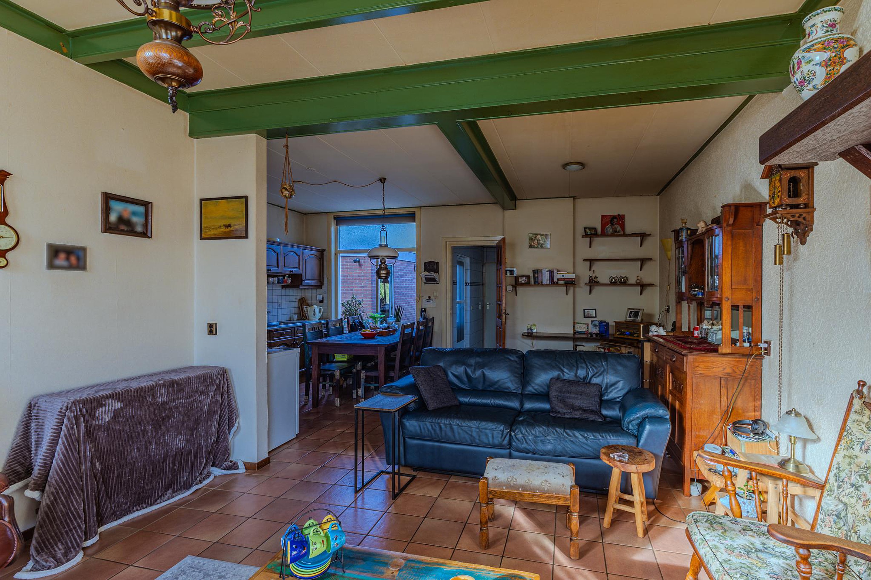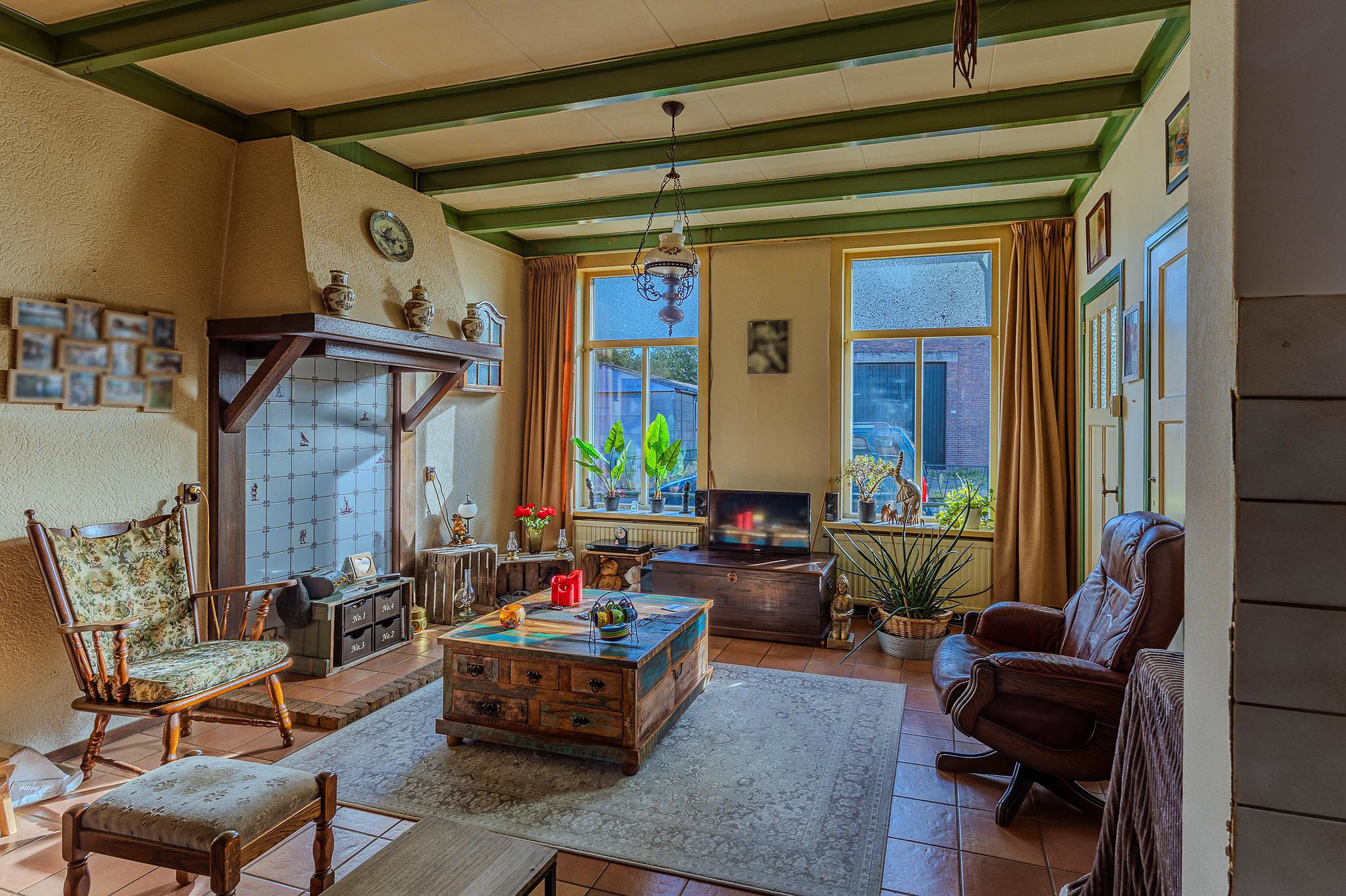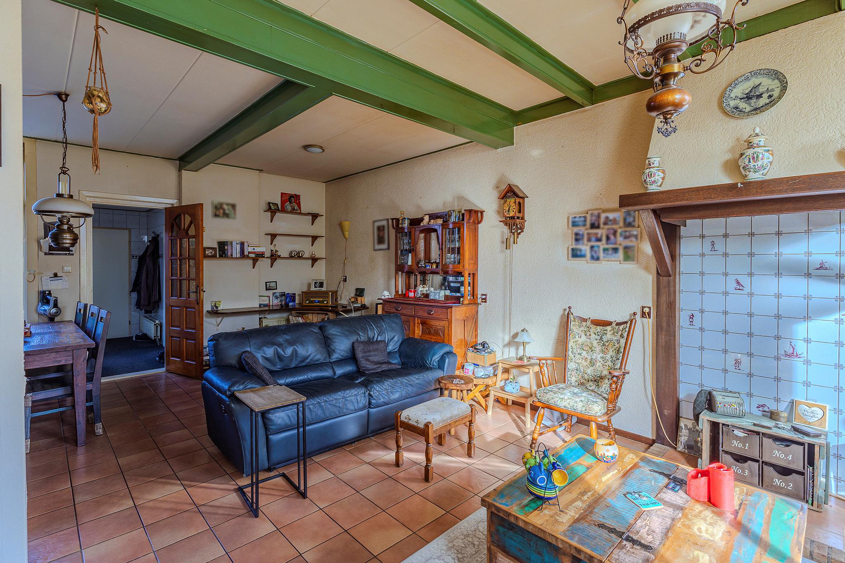 Binnen tref je een woning met karakter, voorzien van sfeervolle details zoals glas-in-loodramen en een hoog balkenplafond. Hoewel modernisering op sommige punten wenselijk is, biedt dit juist de kans om je creatieve ideeën werkelijkheid te laten worden en de woning volledig naar eigen hand te zetten.