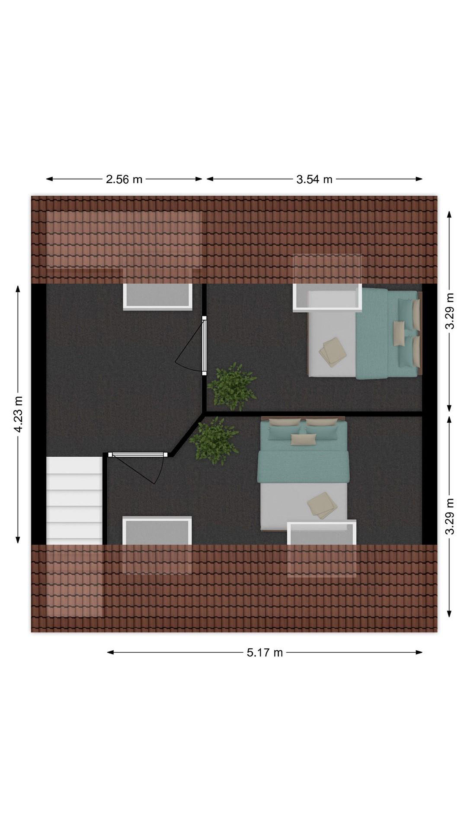 De voorzolder is uitgerust met een Velux-dakraam en biedt bergruimte achter de schotten. De derde en vierde slaapkamer beschikken beide over Velux-dakra(a)m(en).