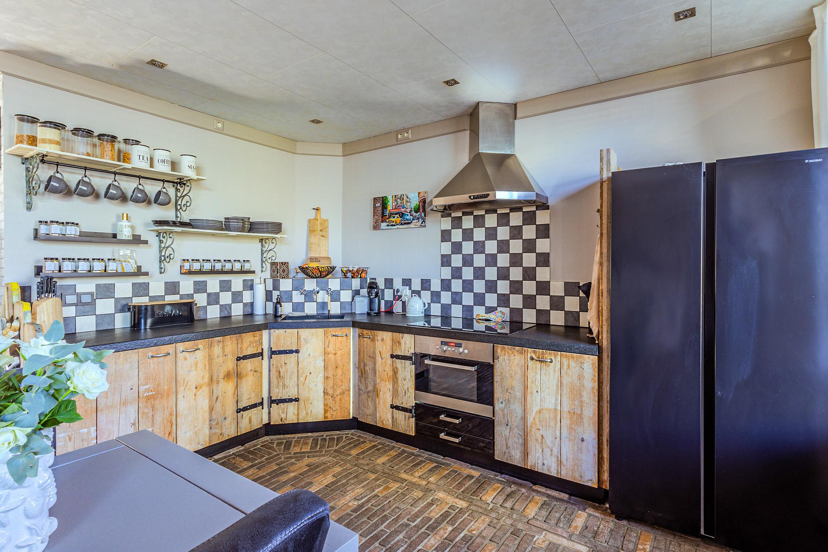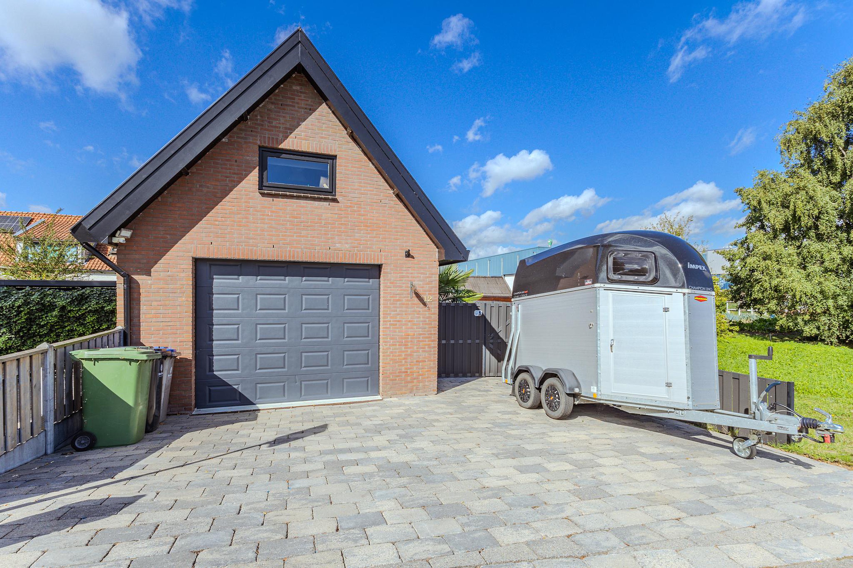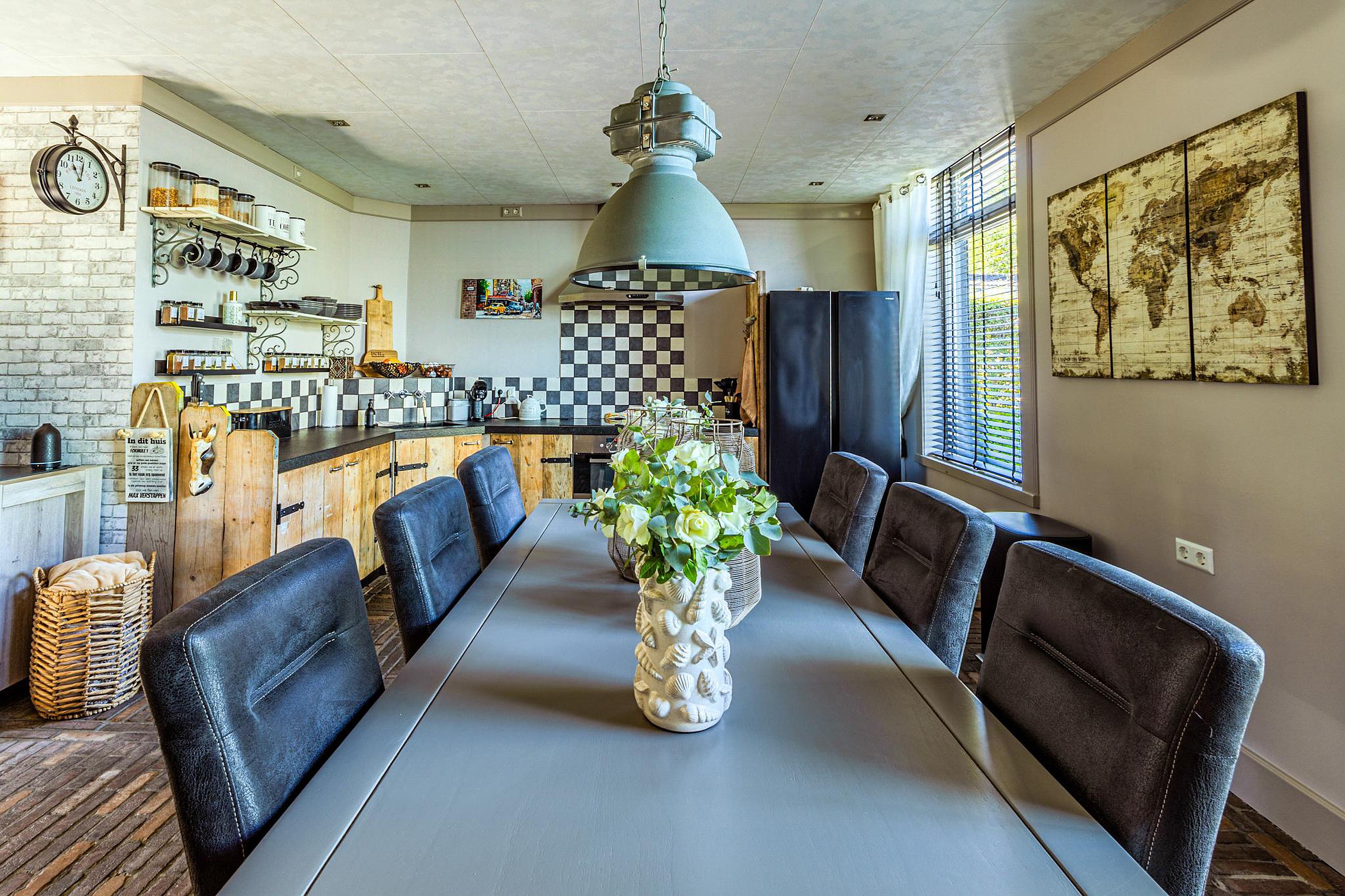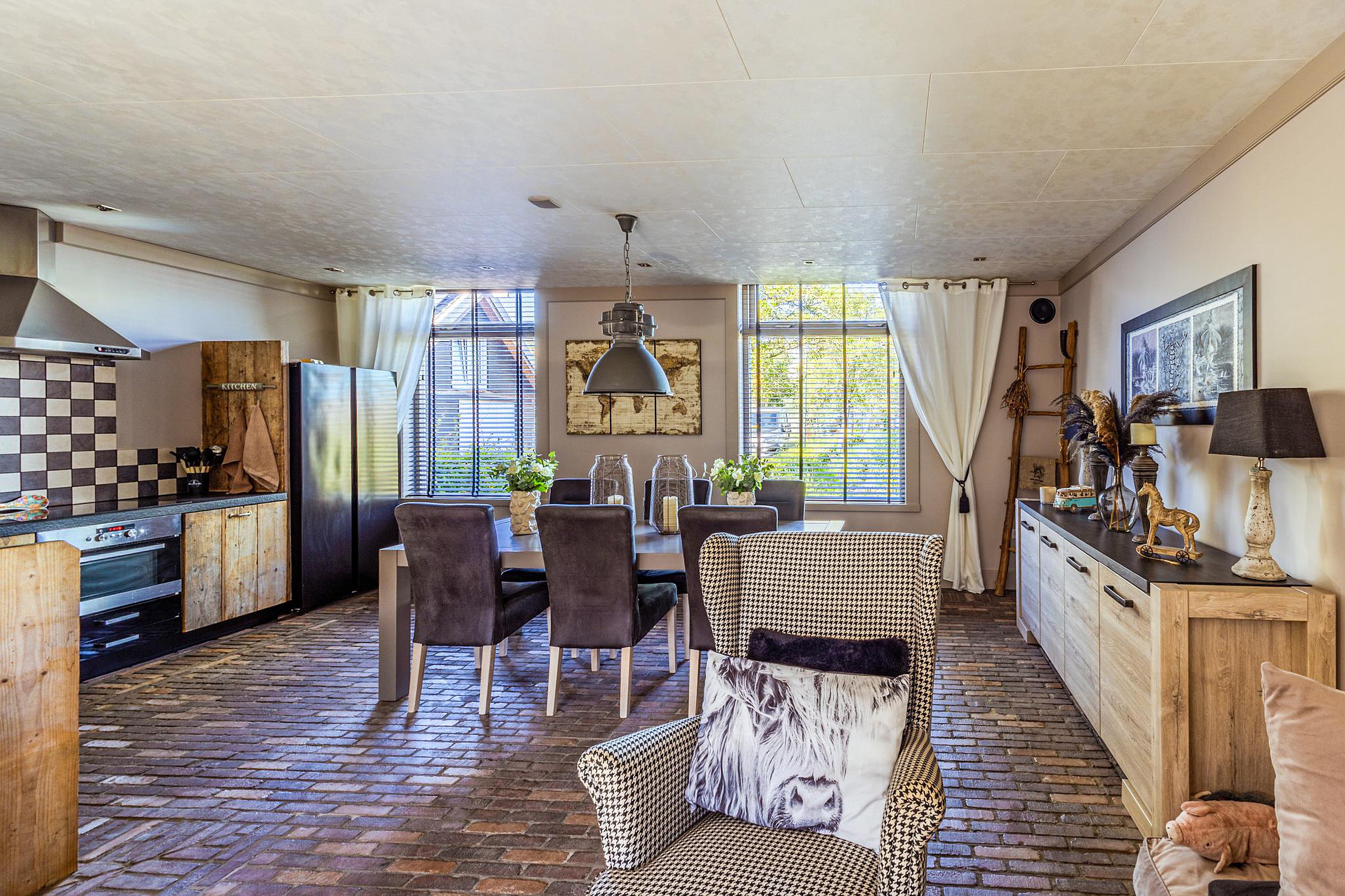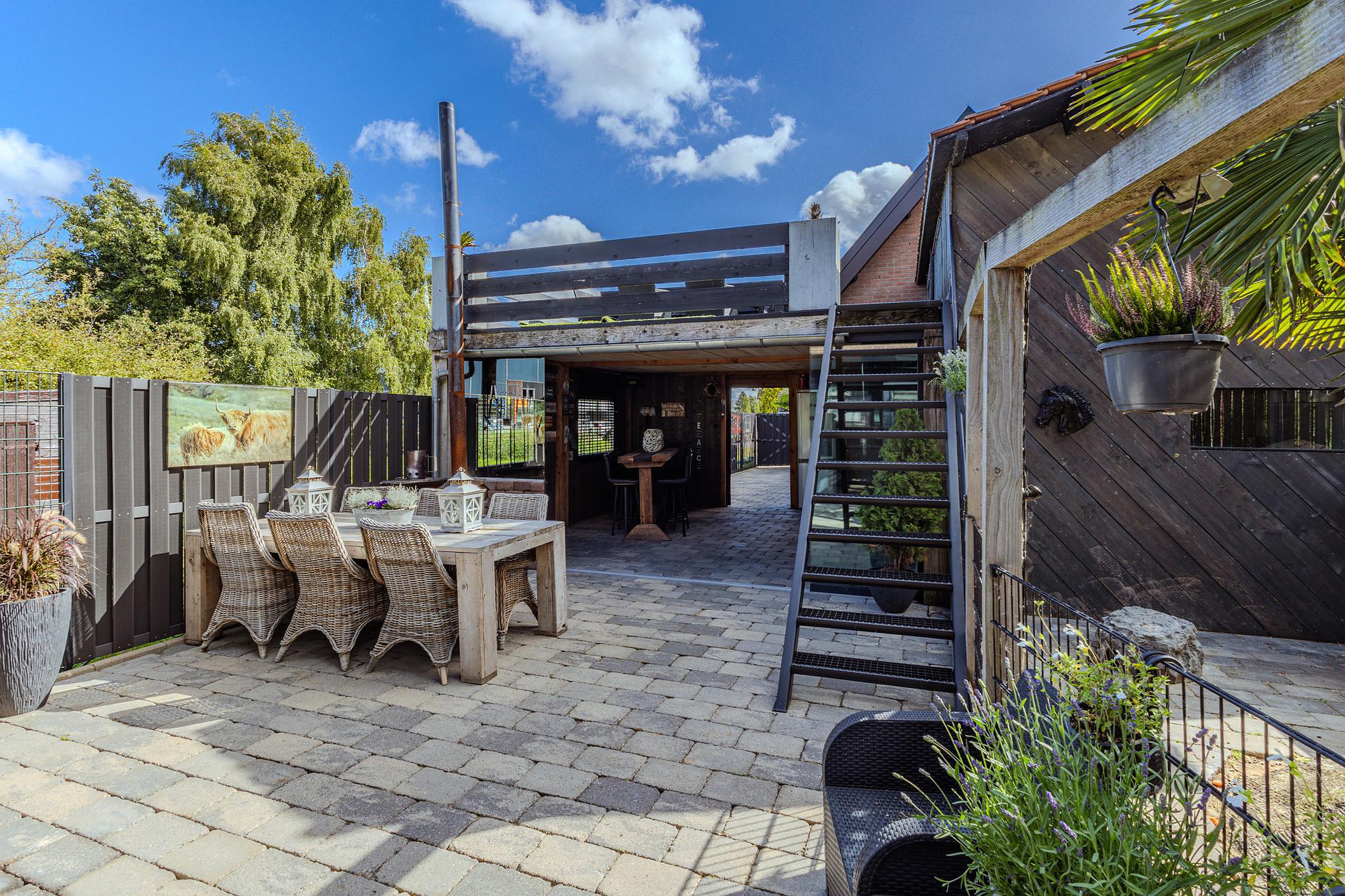 Grenzend aan de garage / werkplaats is een oergezellige en d.m.v. een glazen schuifwand geheel afsluitbare loungeruimte van ca. 25m2 gecreëerd. Deze ruimte is voorzien van elektra en een wateraansluiting. Door middel van een barndeur eveneens toegang tot de zijtuin.