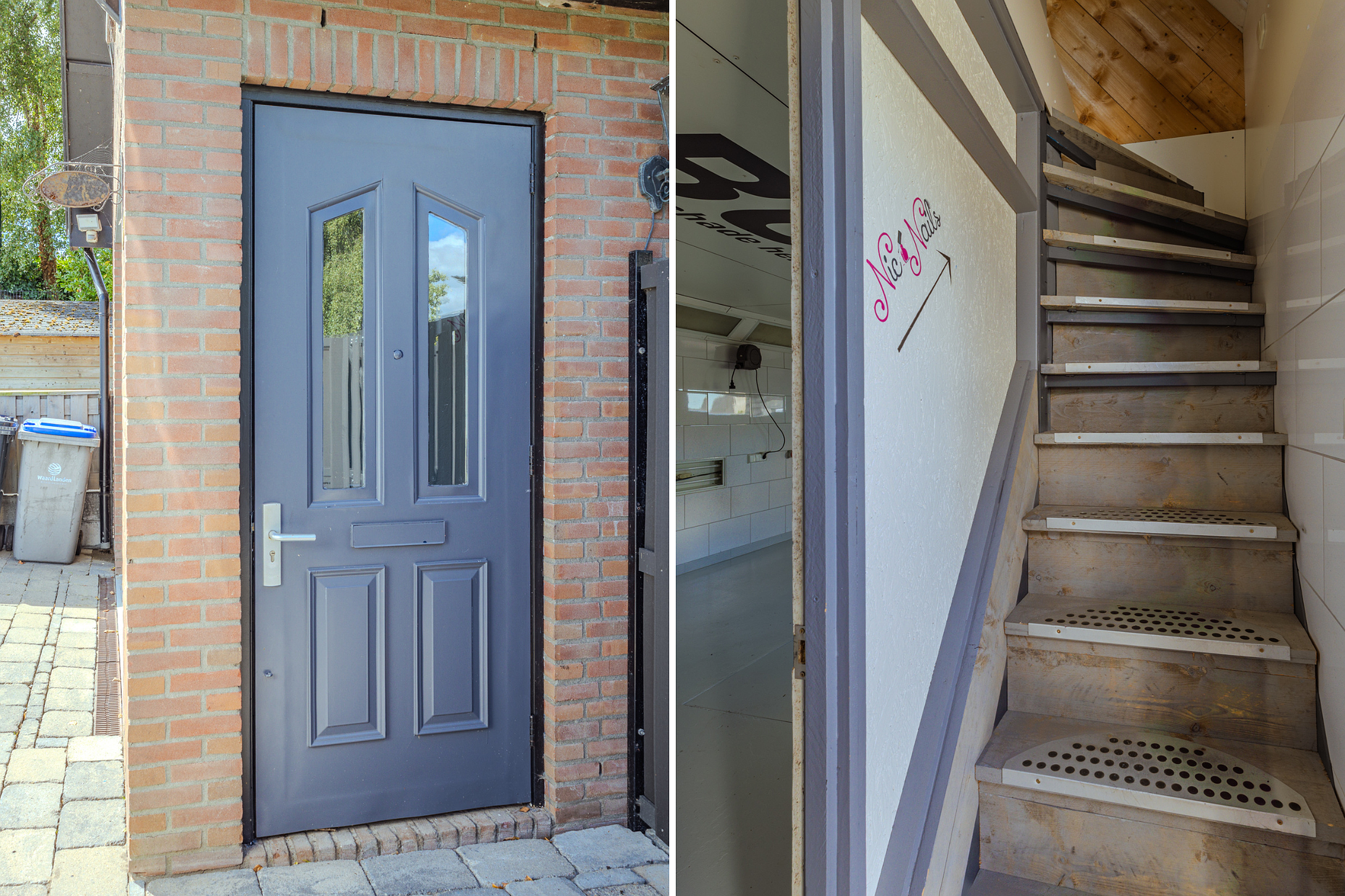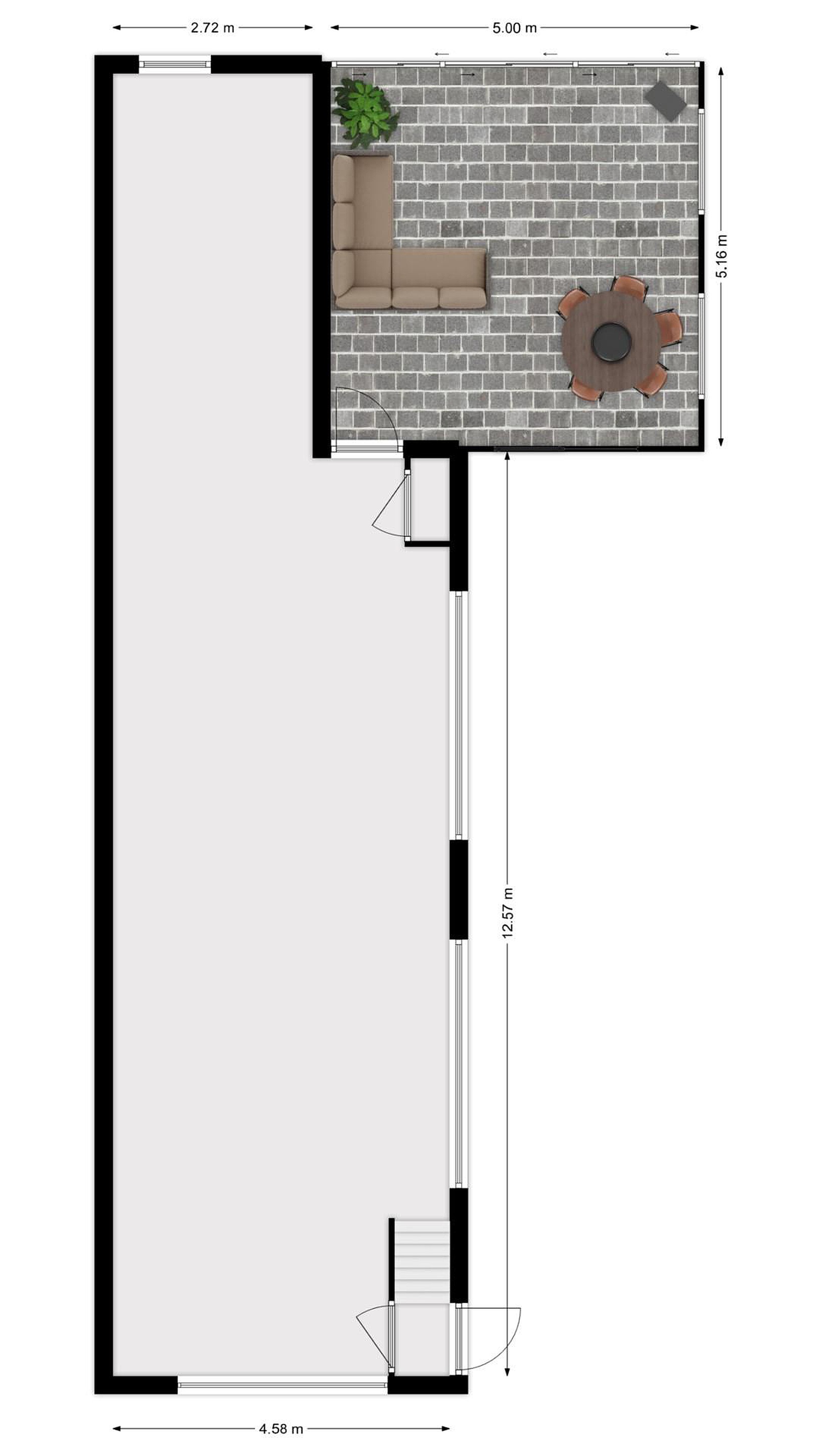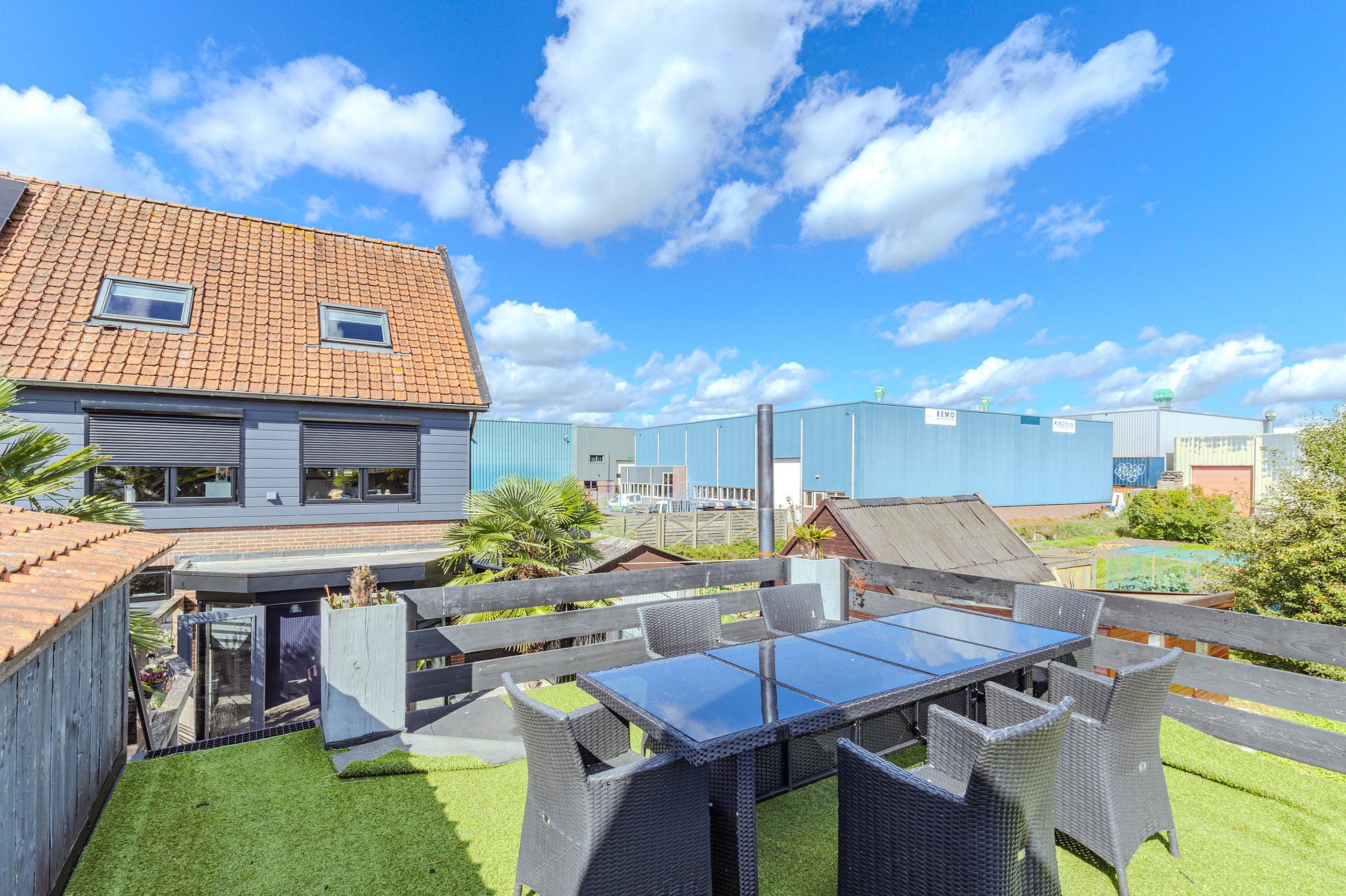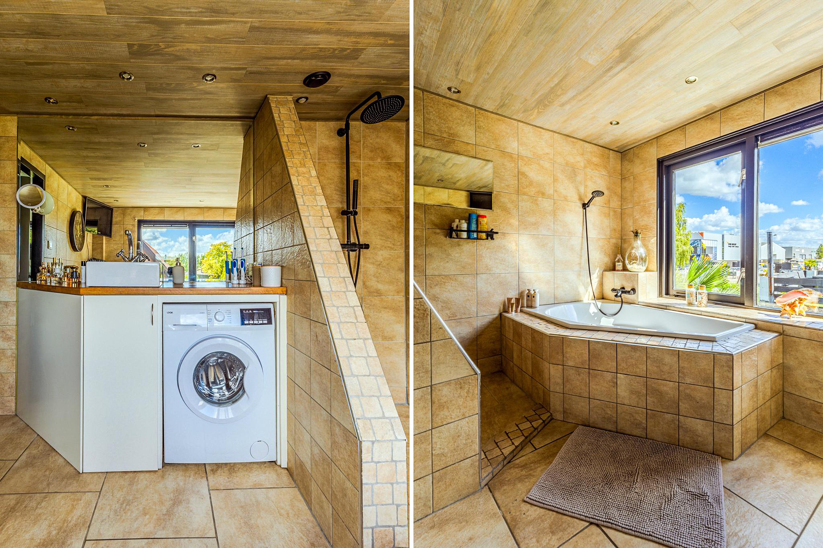 Grenzend aan de garage / werkplaats is een oergezellige en d.m.v. een glazen schuifwand geheel afsluitbare loungeruimte van ca. 25m2 gecreëerd. Deze ruimte is voorzien van elektra en een wateraansluiting. Door middel van een barndeur eveneens toegang tot de zijtuin.