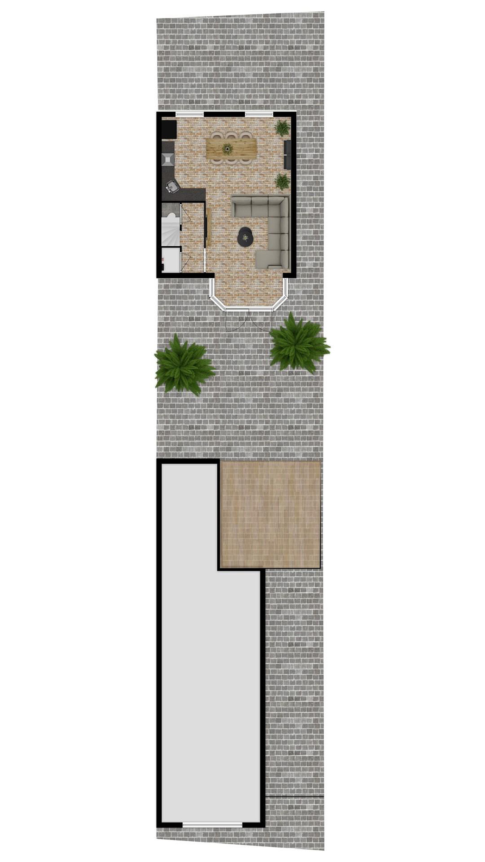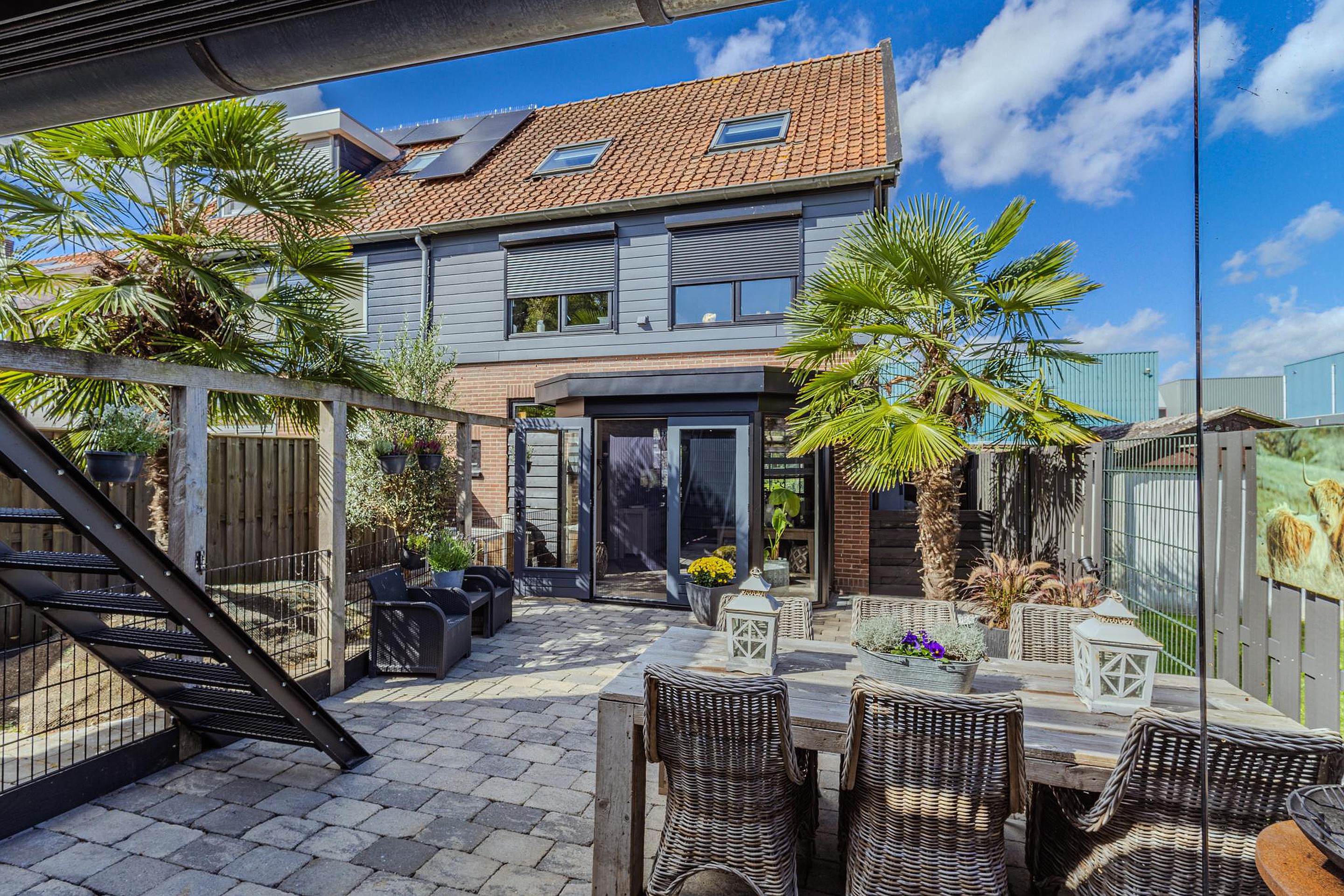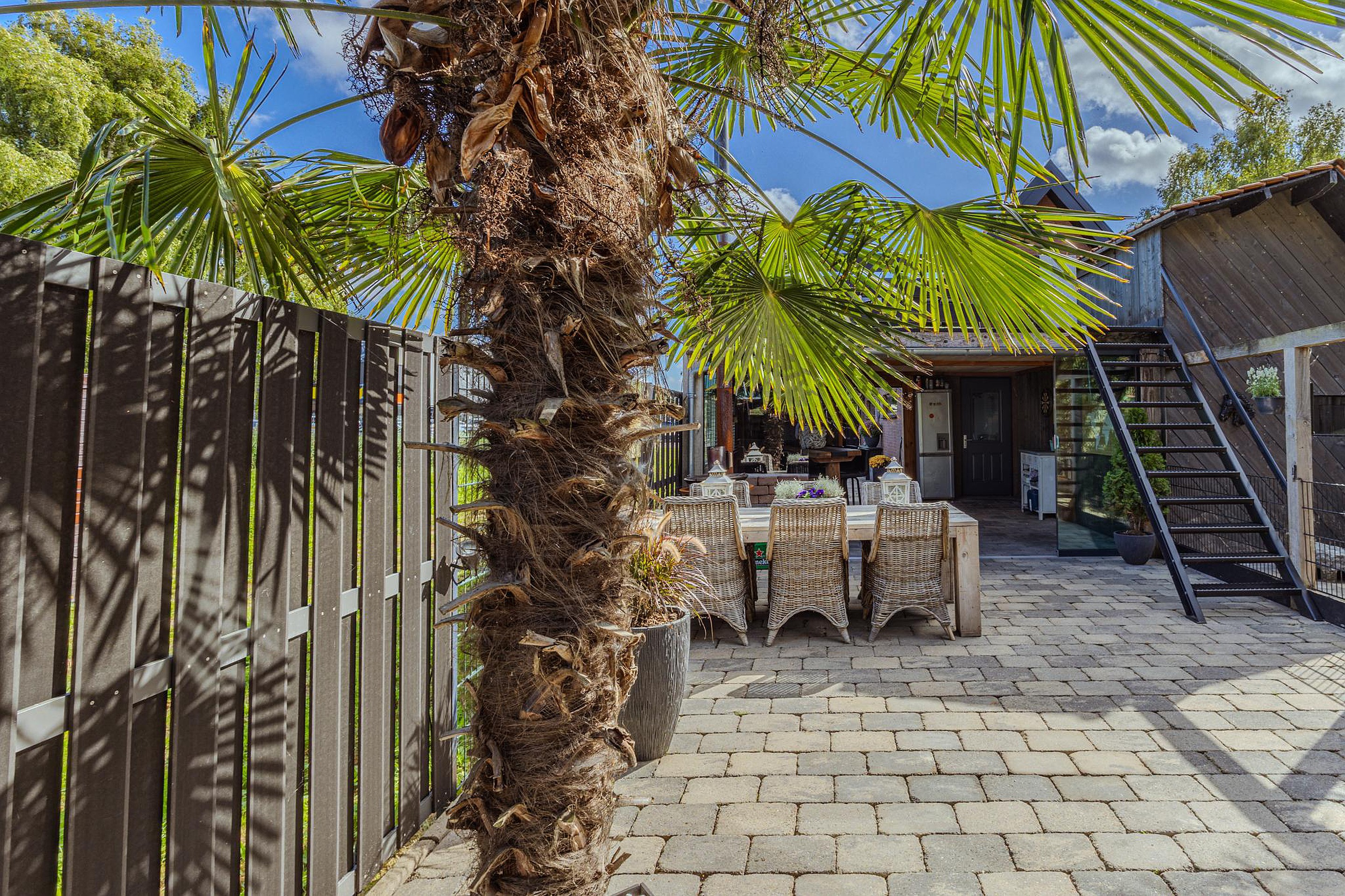 Aan zowel de Dokzijde als de Hellingzijde biedt dit aanbod een nette bestrate tuin met achterom. Hellingzijde: Via een poort toegang tot de zijtuin welke naadloos overgaat in de loungeruimte grenzend aan de verzorgde voortuin. Vanuit het overkapte zijpad toegang tot de tuin gelegen aan de Dokzijde.