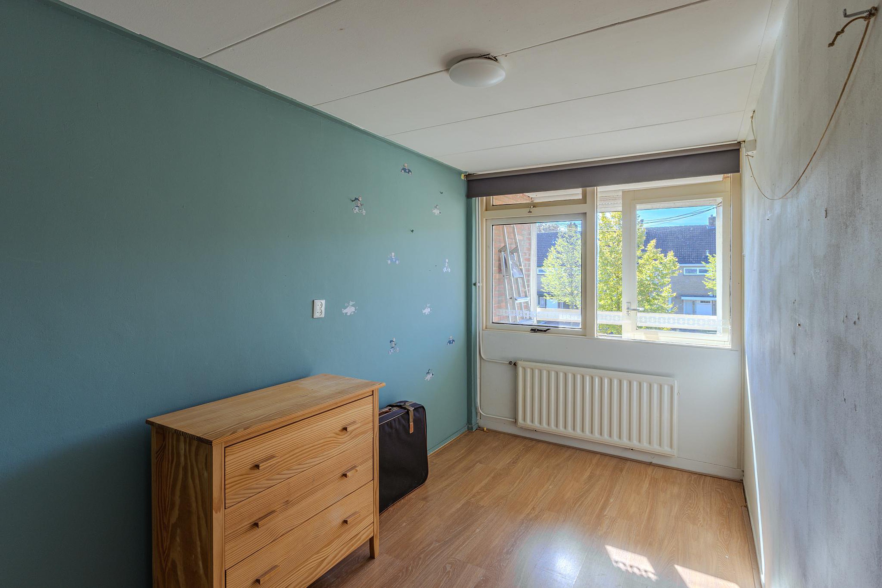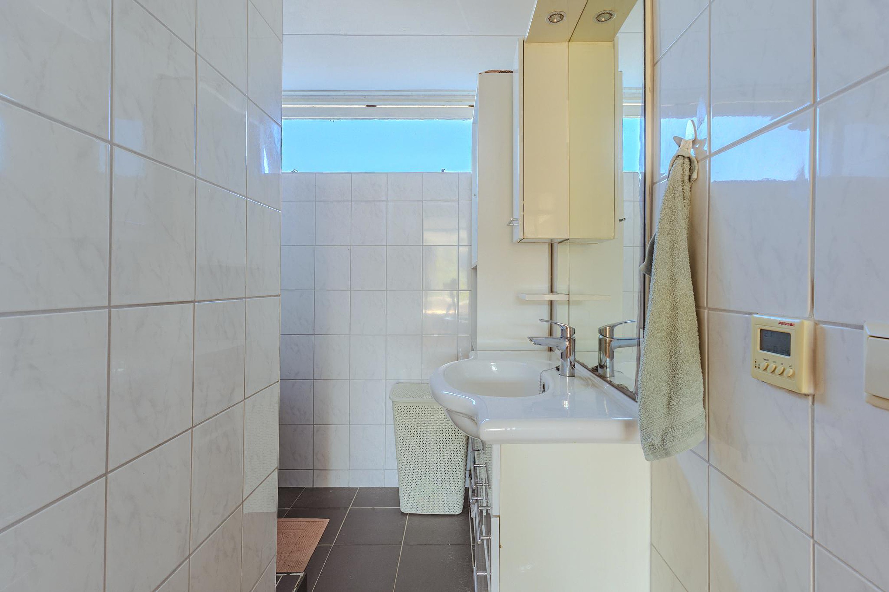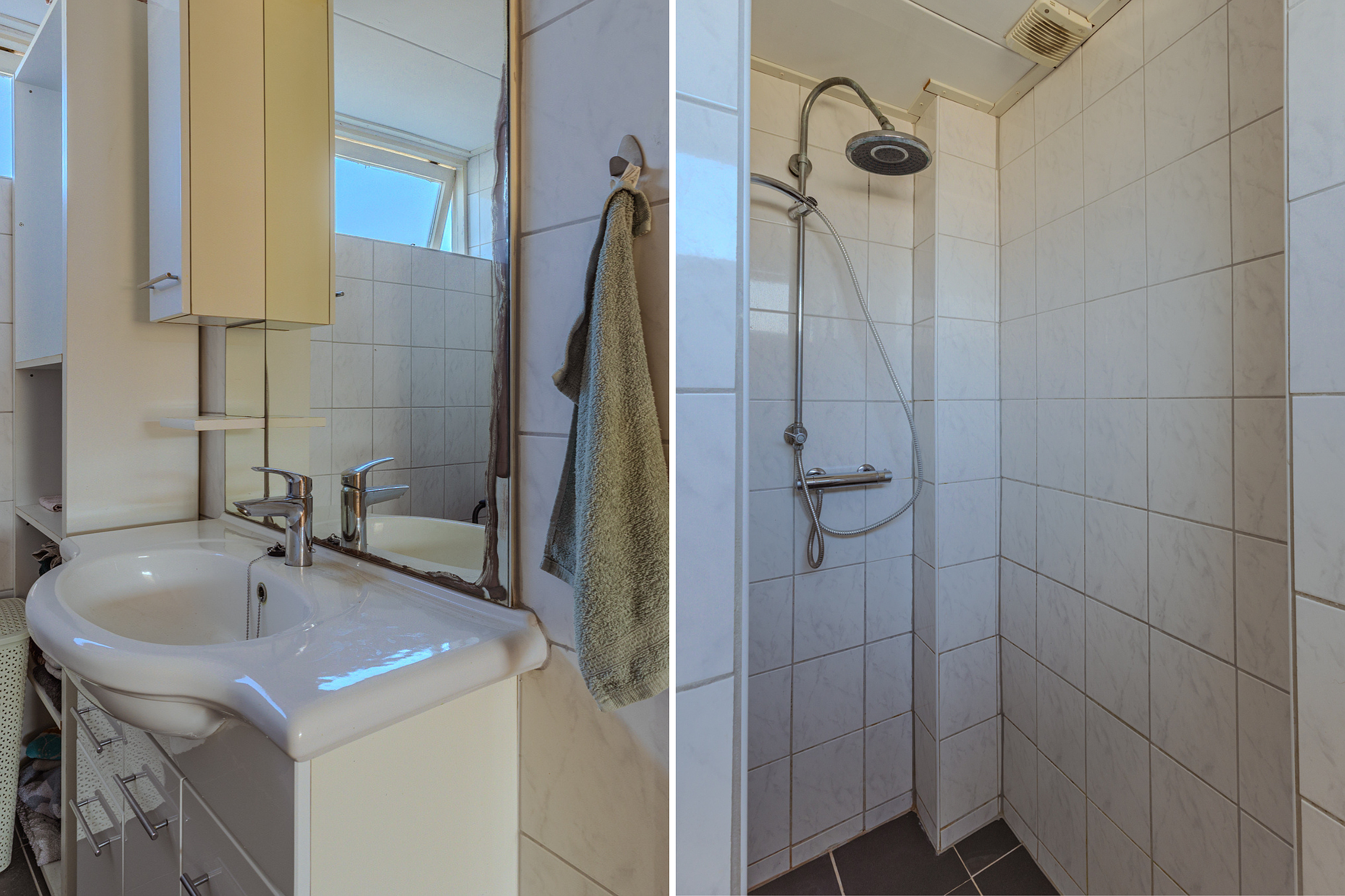 De overloop biedt toegang tot 3 slaapkamers, de badkamer en de trapopgang. De ouderslaapkamer biedt toegang tot een inpandig balkon en is net als het balkon voorzien van een rolluik. Beide overige slaapkamers zijn uitgerust met vaste kasten. Daarnaast grenst de 2de slaapkamer eveneens aan het balkon. De 3de slaapkamer is v.v. kunststof kozijnen. De nette en geheel betegelde badkamer beschikt over een inloopdouche en een wastafel met meubel.