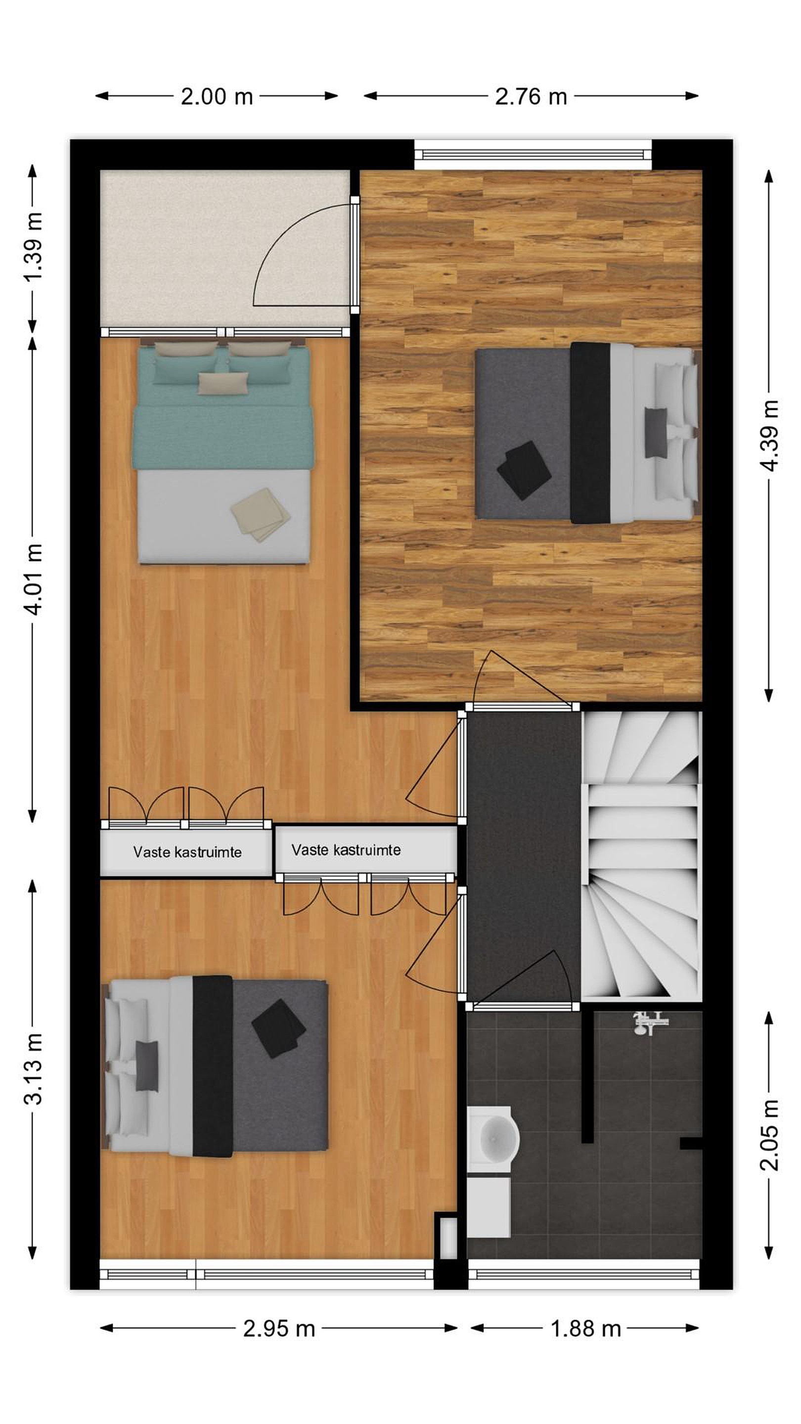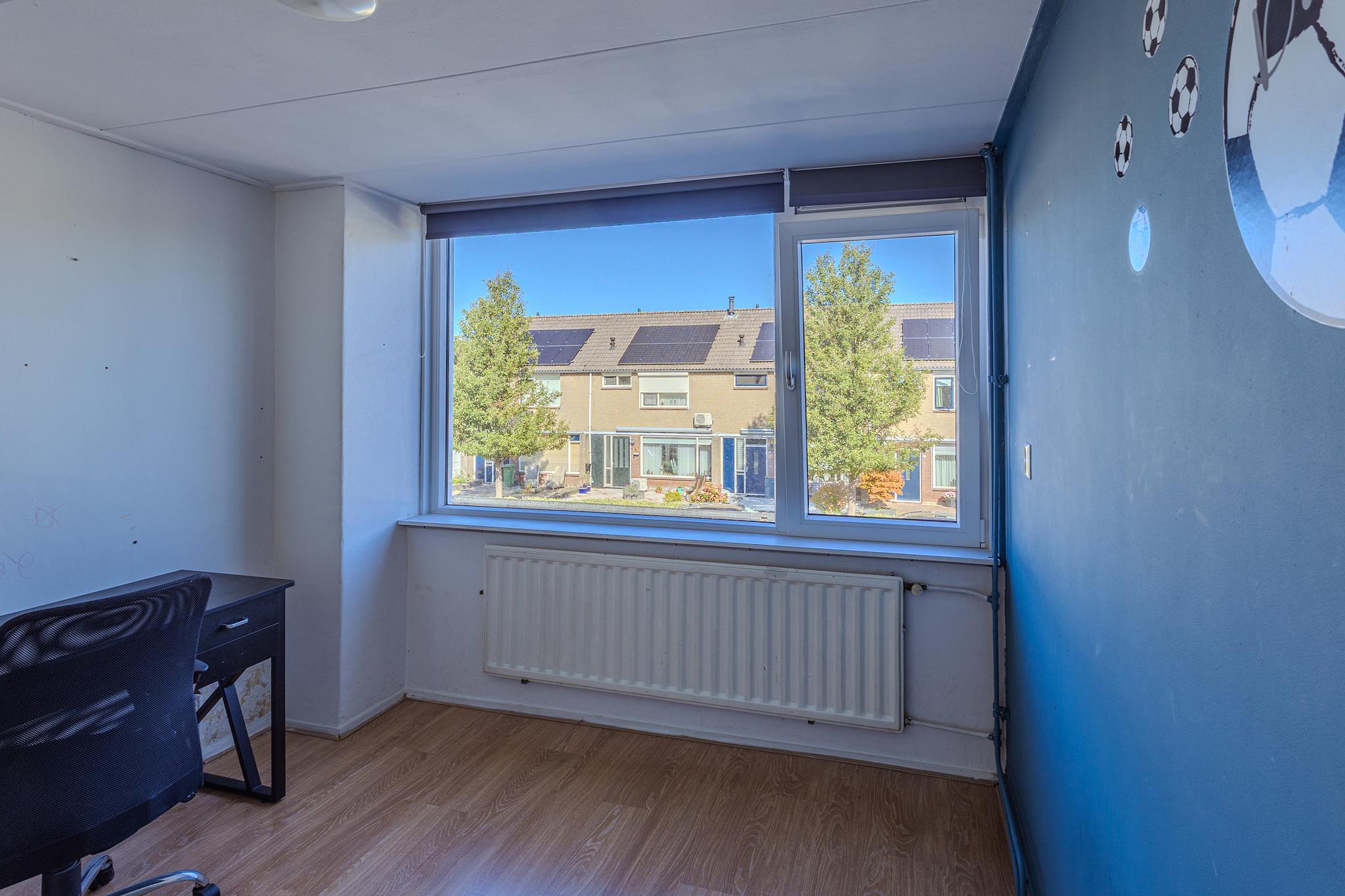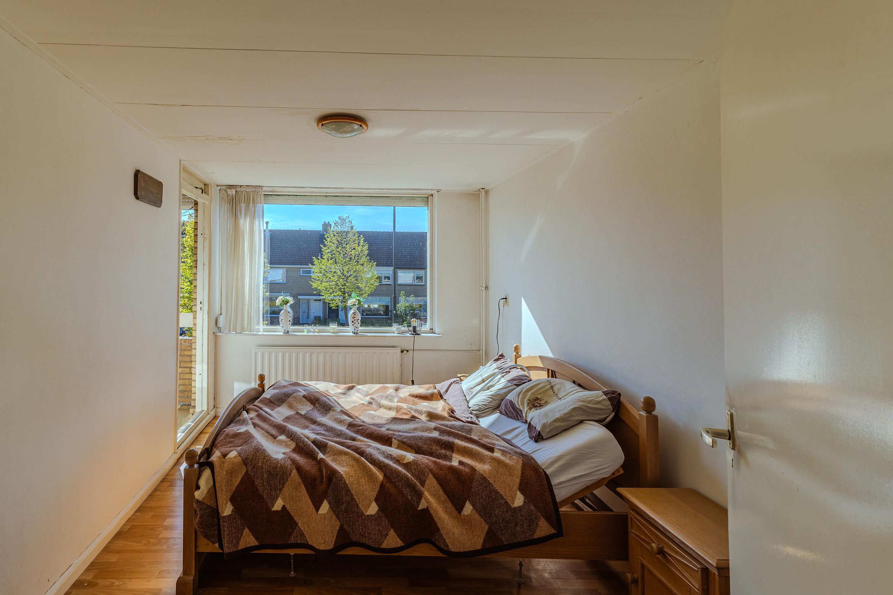 De overloop biedt toegang tot 3 slaapkamers, de badkamer en de trapopgang. De ouderslaapkamer biedt toegang tot een inpandig balkon en is net als het balkon voorzien van een rolluik. Beide overige slaapkamers zijn uitgerust met vaste kasten. Daarnaast grenst de 2de slaapkamer eveneens aan het balkon. De 3de slaapkamer is v.v. kunststof kozijnen. De nette en geheel betegelde badkamer beschikt over een inloopdouche en een wastafel met meubel.