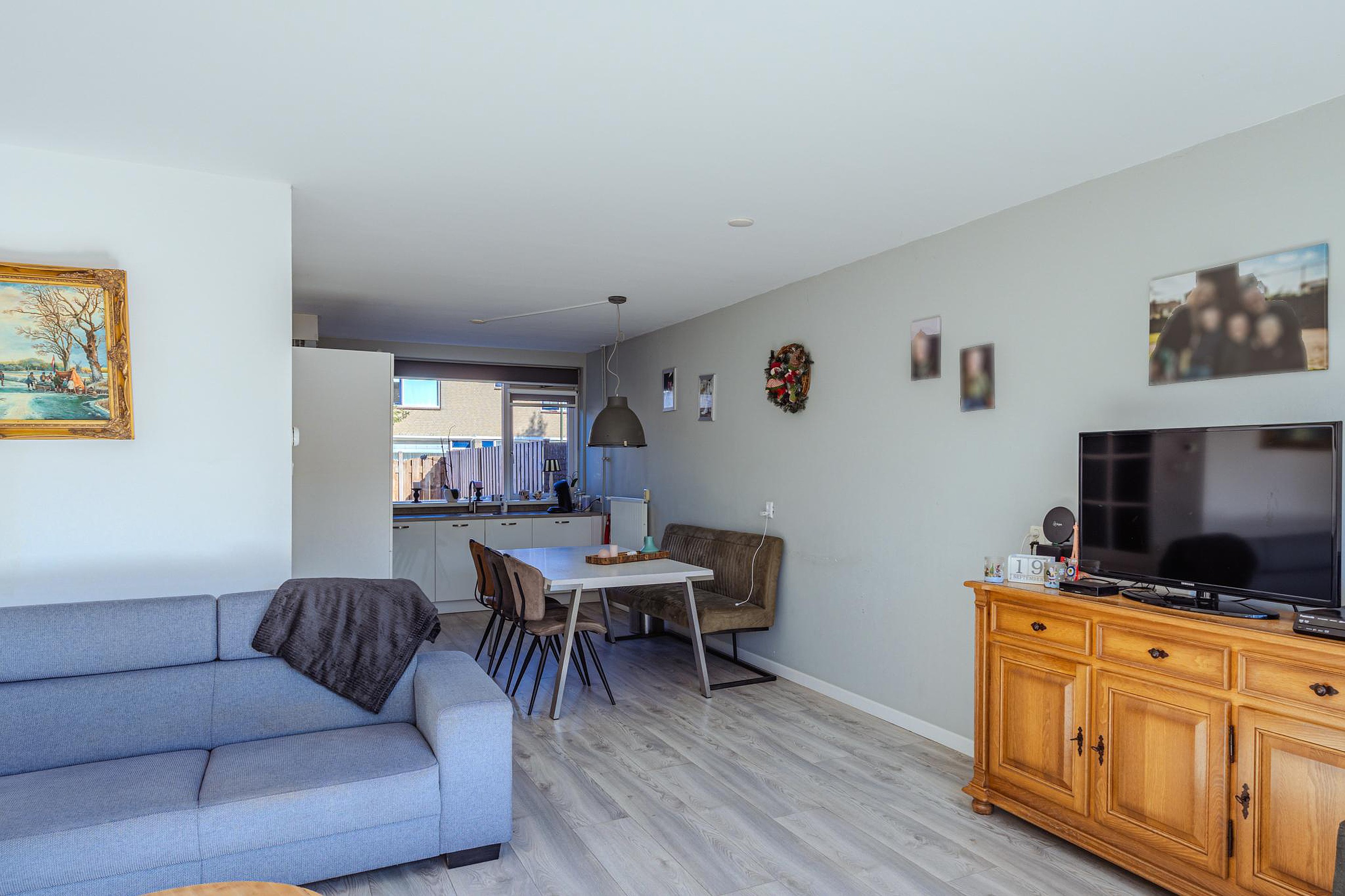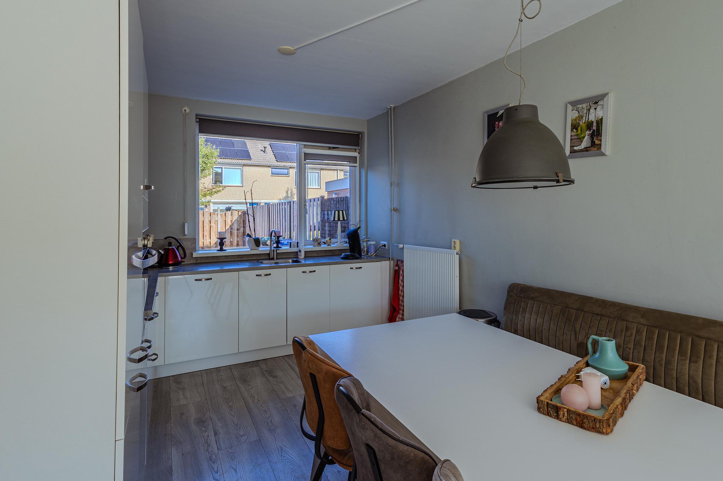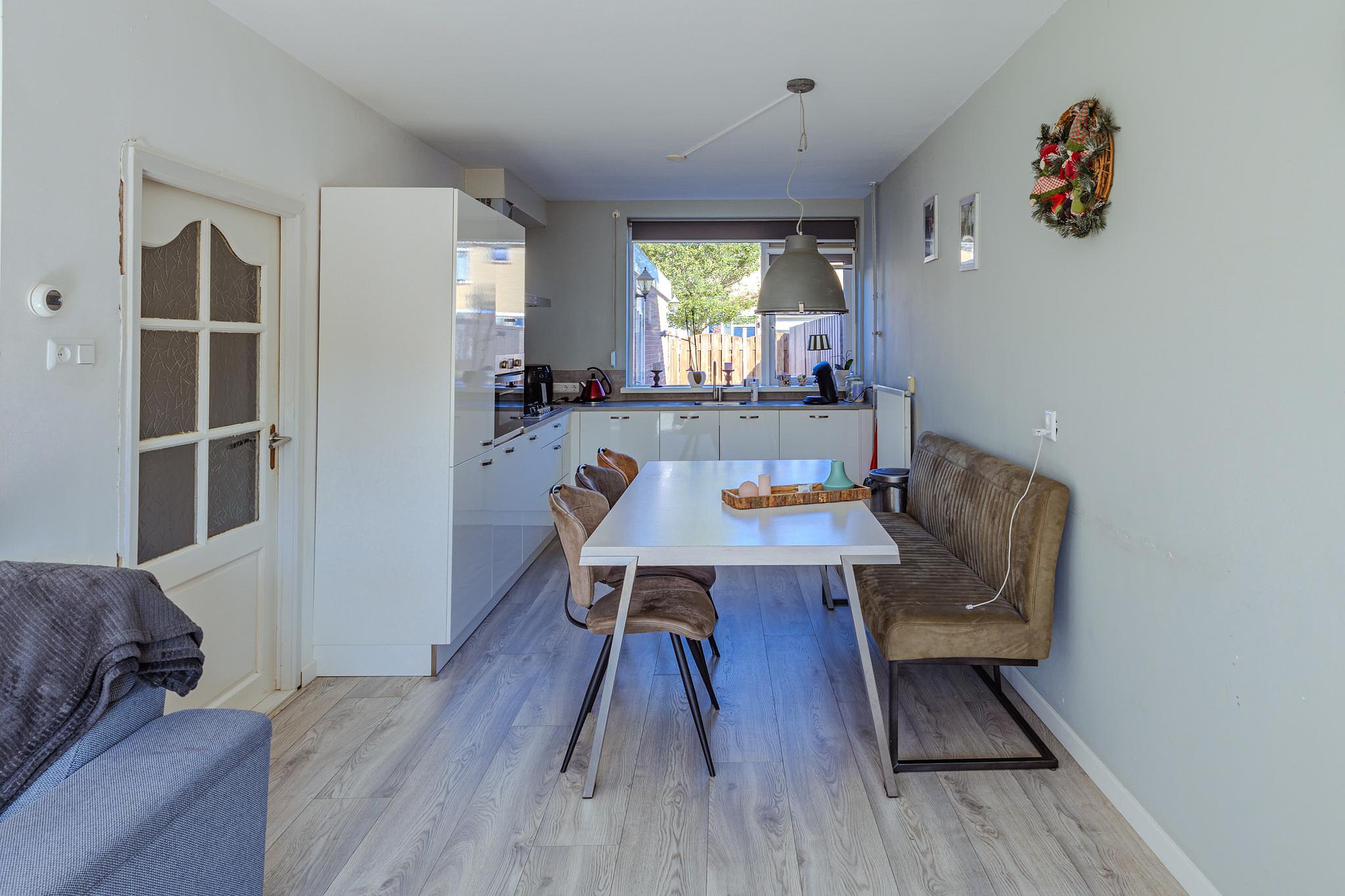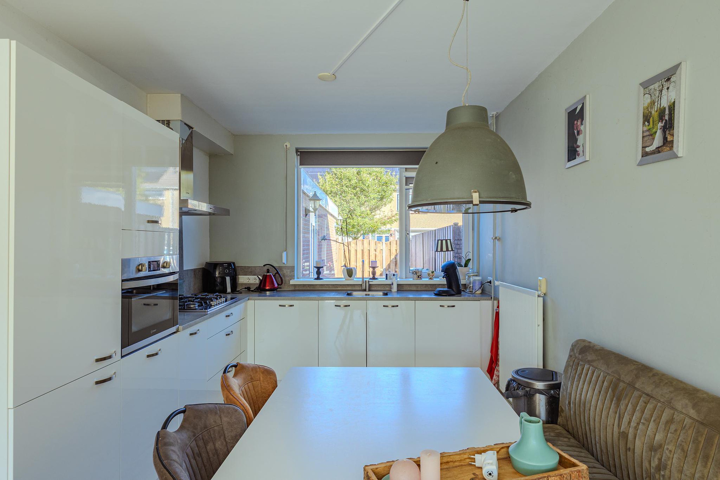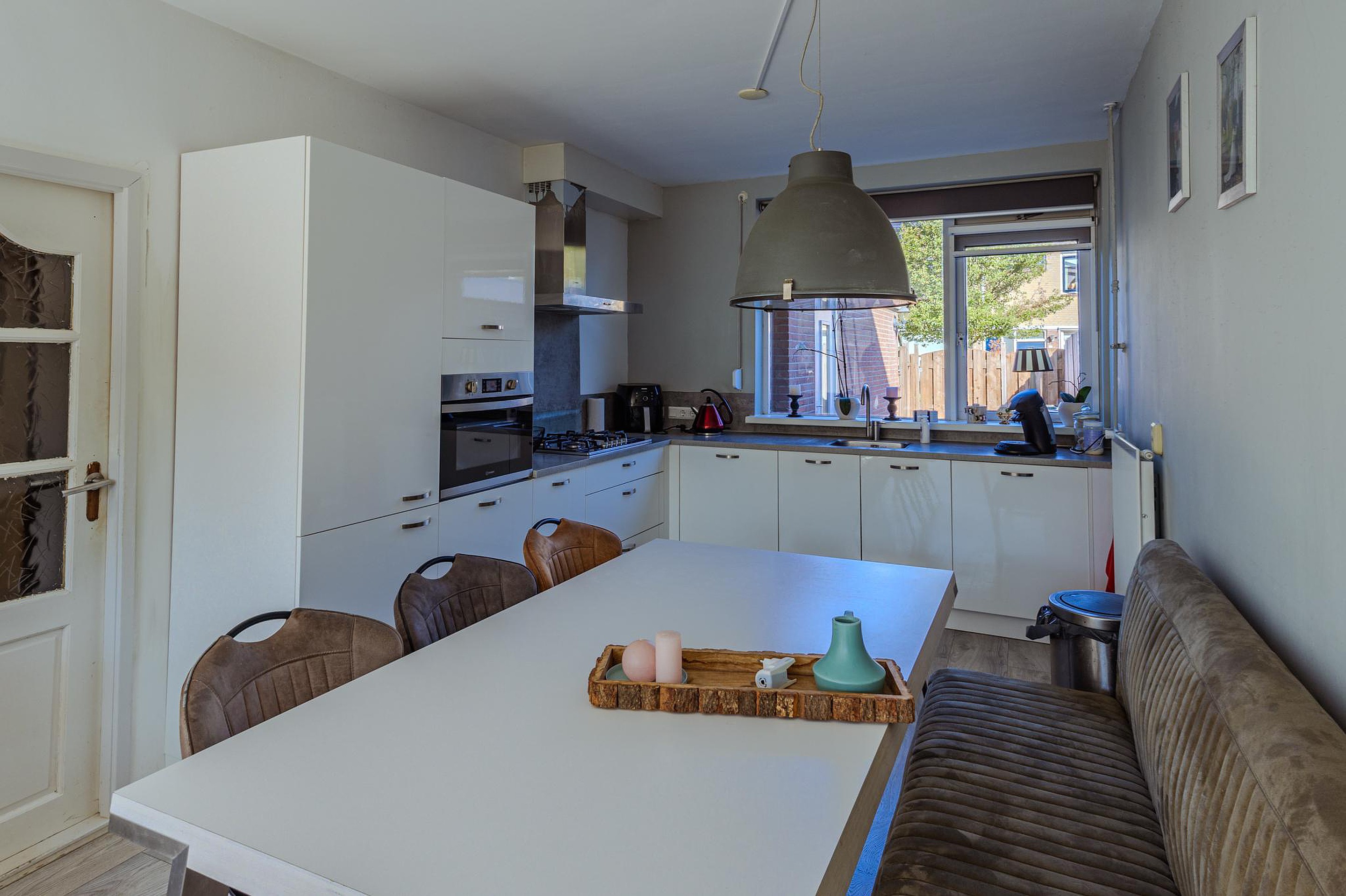 Entree in de hal met garderoberuimte, toegang tot de inpandige berging/garage (ca. 16m2), toiletruimte voorzien van een staand toilet en de trapopgang. De L-vormige woonkamer is uitgerust met grote raampartijen aan de tuinzijde alwaar het zitgedeelte zich bevindt, door het vele natuurlijke licht is het hier heerlijk vertoeven en door de tuindeur stap je zo de achtertuin in. Het eetgedeelte ligt dicht bij de open keuken, wat zorgt voor een praktische en gezellige indeling. Deze ruime open keuken in L-opstelling is in 2020 geplaatst en beschikt naast de vele opbergmogelijkheden onder andere over een koel-/vriescombinatie, een gasfornuis en een vaatwasser.