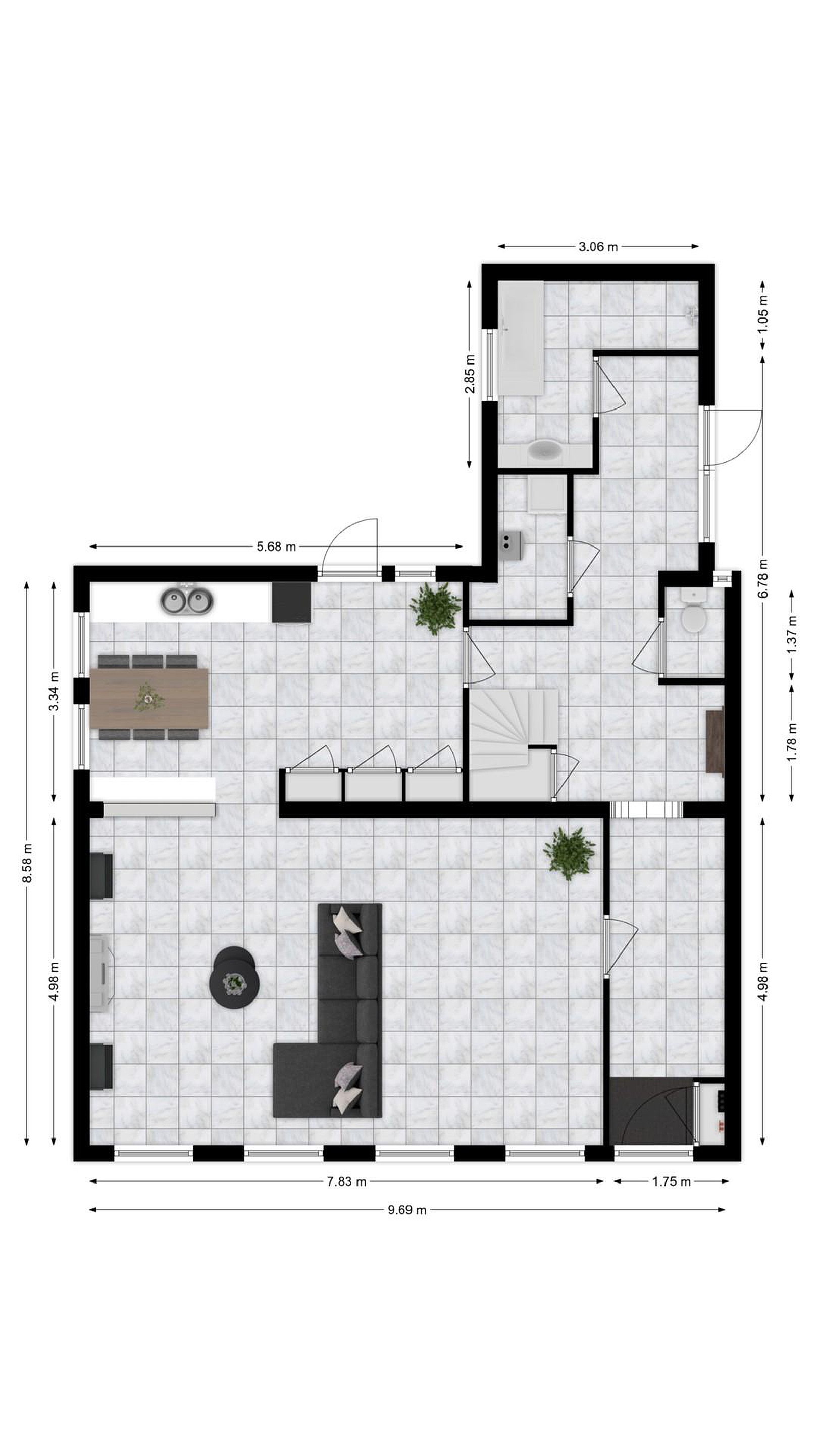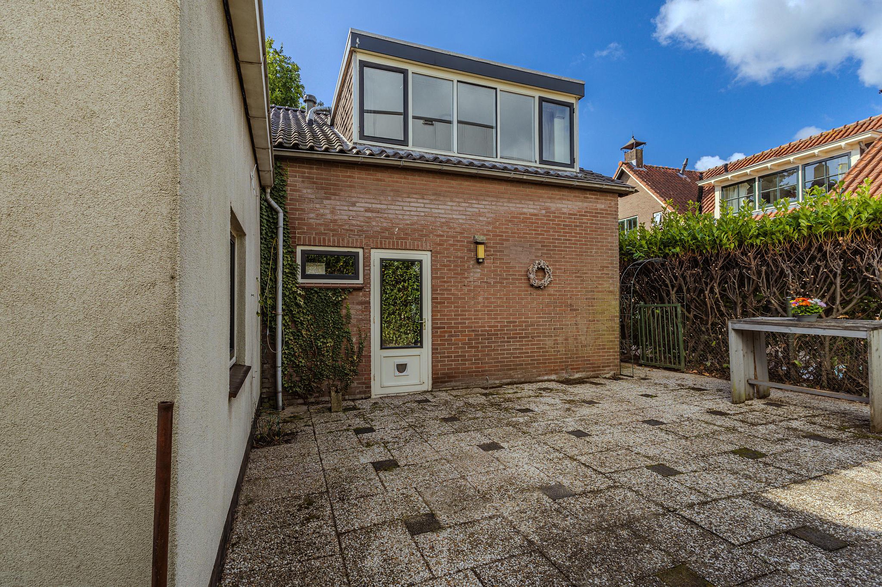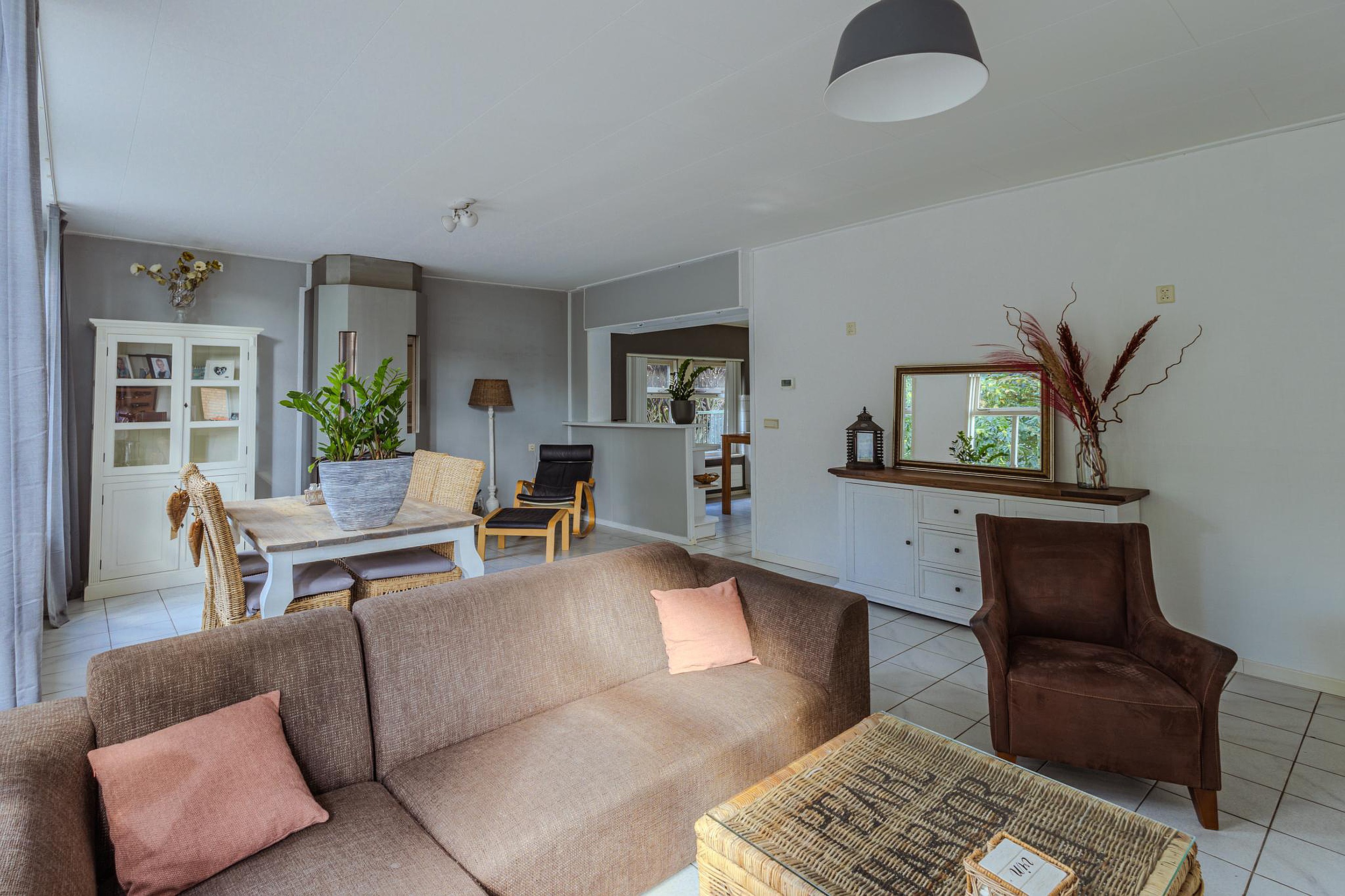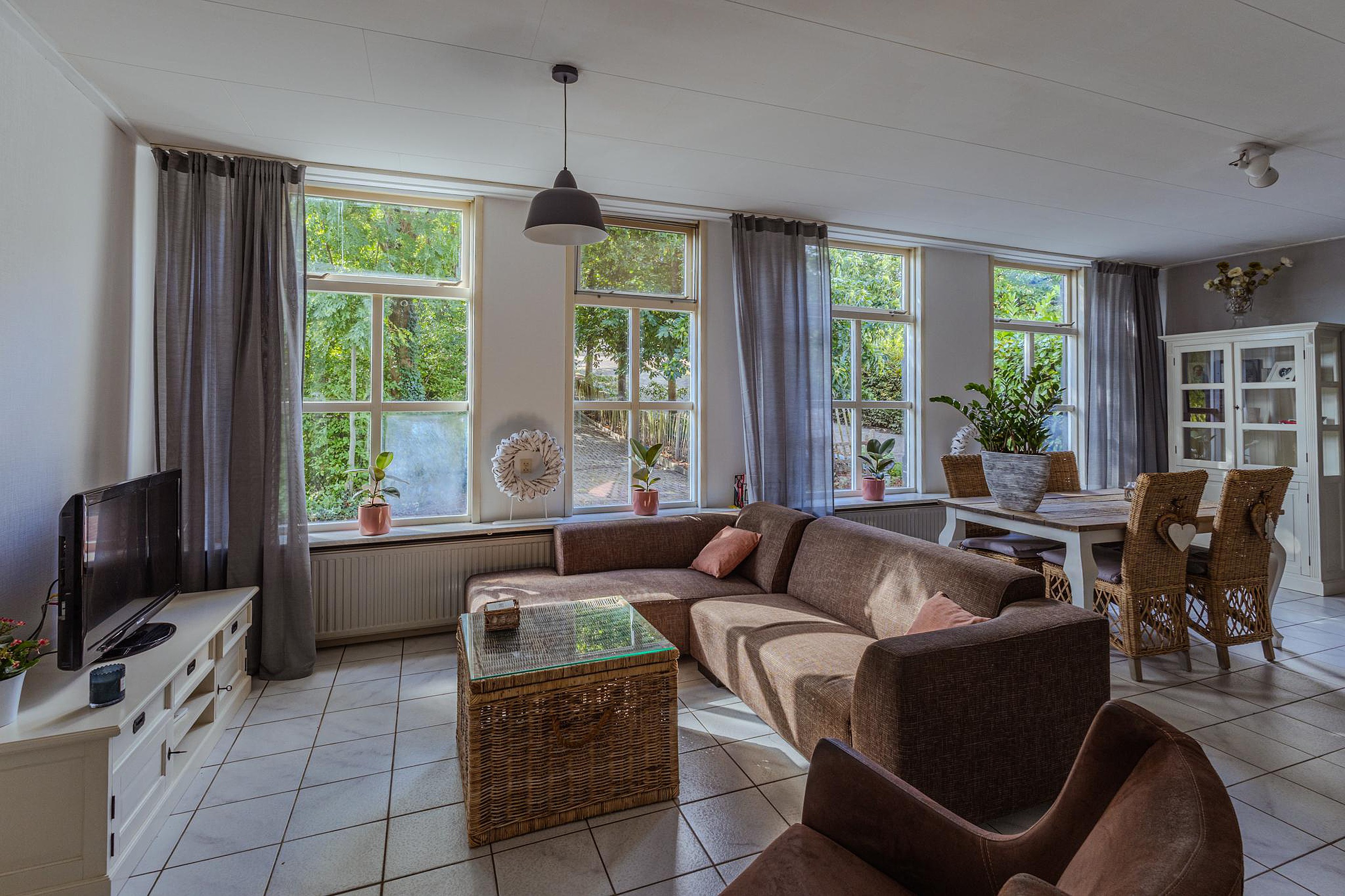 Begane grond De entree vindt plaats in de ruime hal voorzien van meterkast, garderobe, trapkast, trapopgang en de toiletruimte voorzien van een staand toilet en een fonteintje. De gehele begane grond is voorzien van vloerverwarming. De sfeervolle, licht overgoten woonkamer is ingedeeld in een zitgedeelte en een eetgedeelte nabij de halfopen keuken en de open haard/allesbrander. Vanuit de woonkamer is er een directe doorgang naar de keuken, waardoor beide ruimtes mooi met elkaar in verbinding staan. Deze halfopen keuken is voorzien van een dubbele spoelbak, een vaatwasser, diverse bergkasten en vaste kasten. Vanuit de keuken is er directe toegang tot de tuin. De badkamer op de begane grond is uitgerust met een ligbad, een inloopdouche, een wasmeubel en een designradiator. De separate wasruimte biedt plek aan de CV-ketel, de witgoedaansluitingen, de zonneboiler en de verdeler van de vloerverwarming.