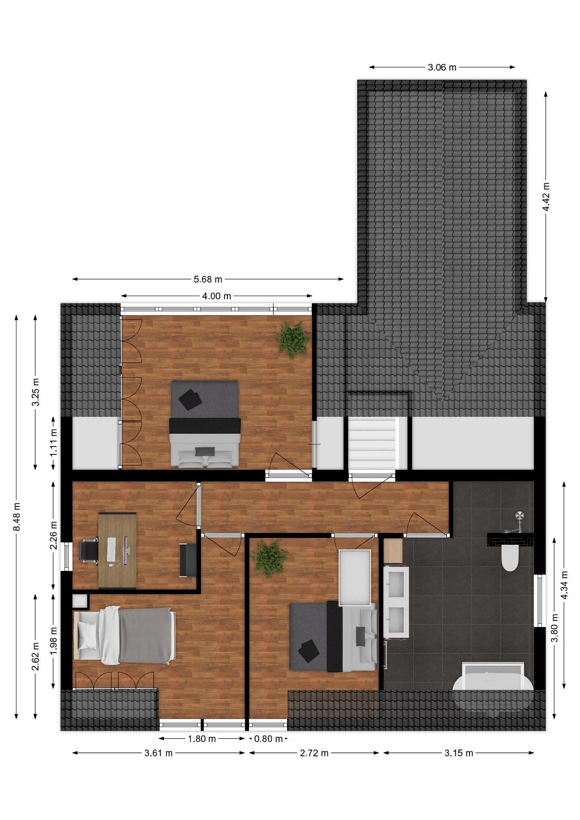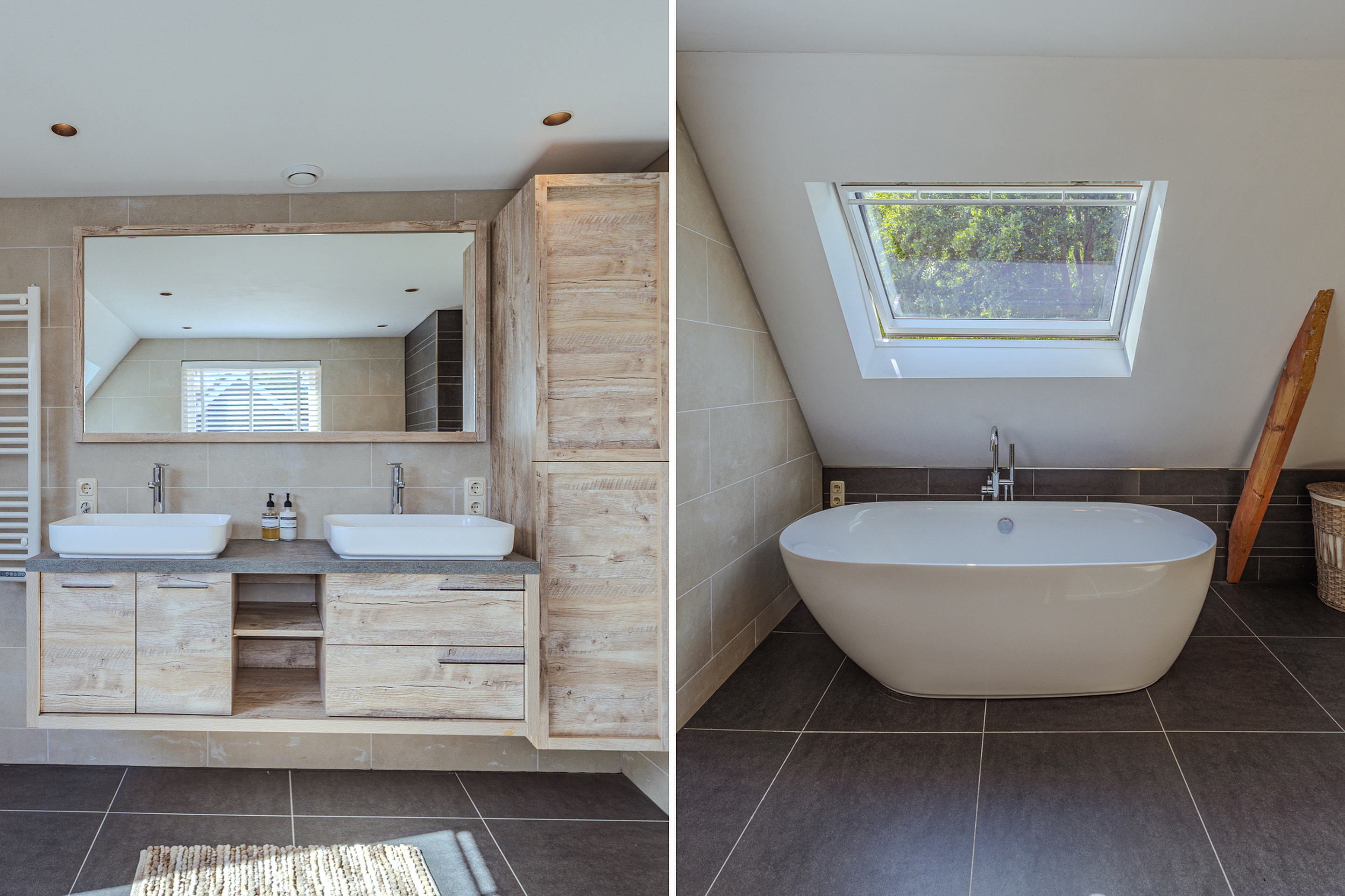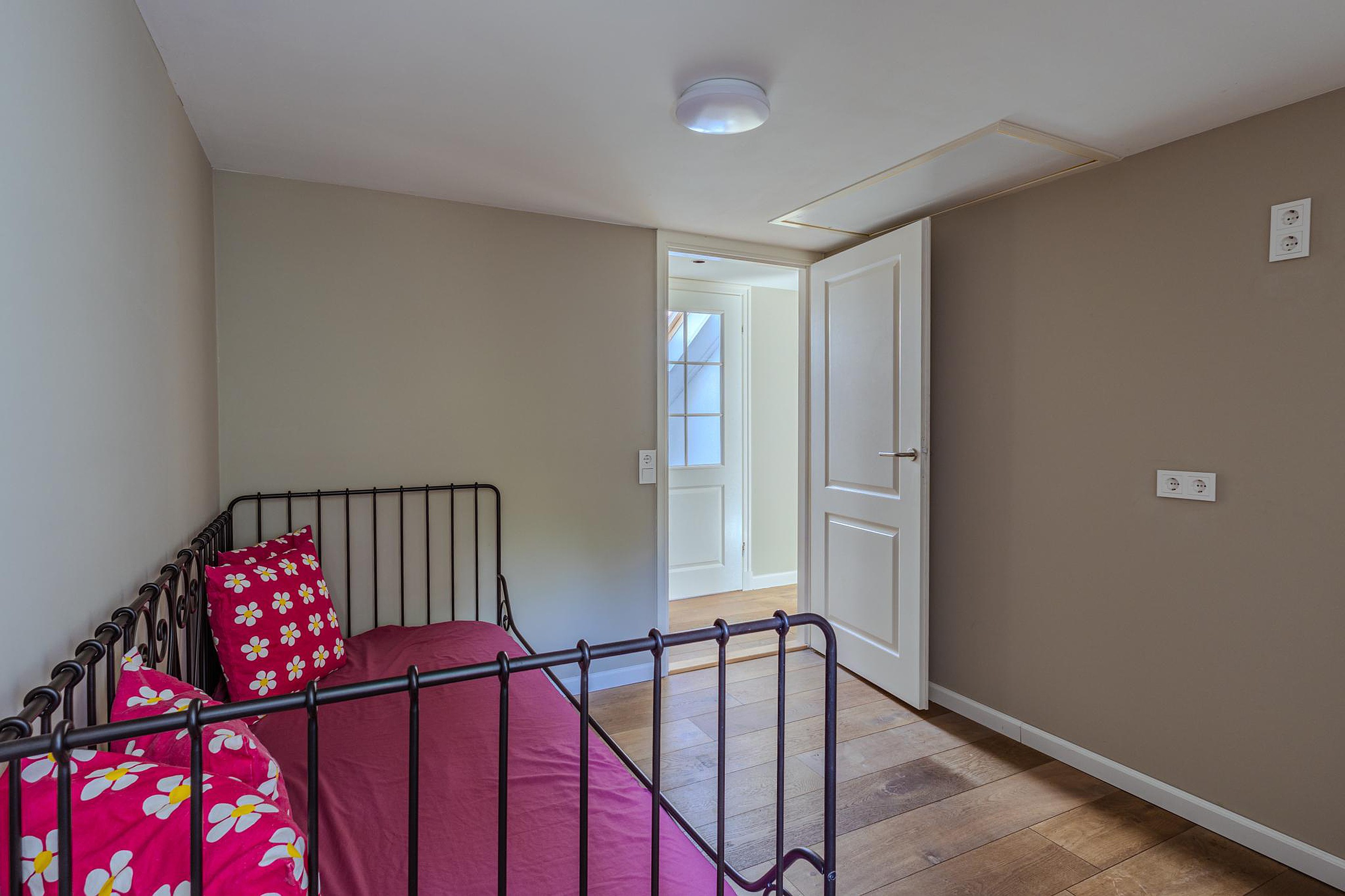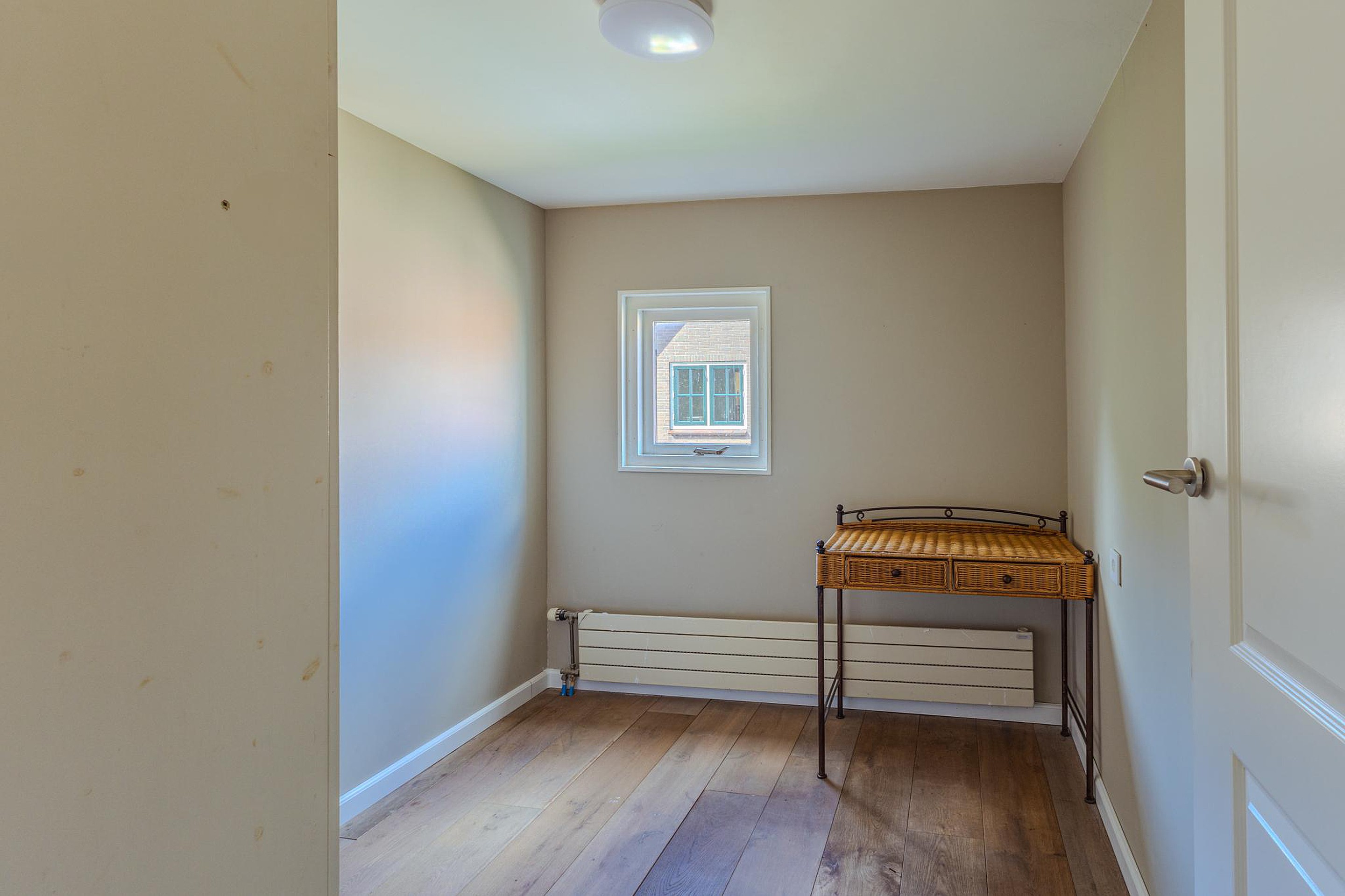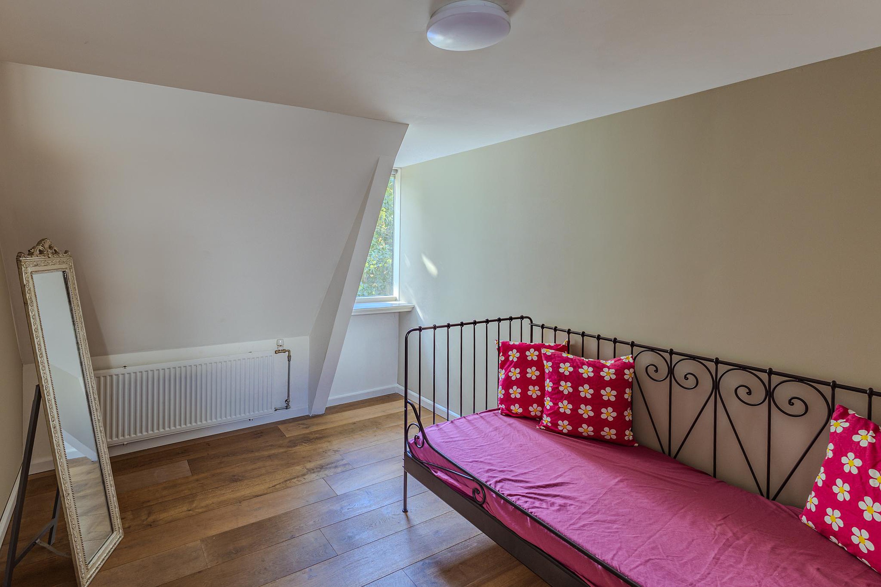 Eerste verdieping Via de trapopgang bereikt u de gerenoveerde etage op de overloop met toegang tot de badkamer en de vier slaapkamers. De in 2020 vernieuwde badkamer is luxe uitgevoerd en voorzien van een vrijstaand ligbad, een royale inloopdouche, een dubbele wastafel met stijlvol meubel en een designradiator. Dankzij het Velux dakraam boven het bad geniet je bovendien van veel daglicht. De hoofdslaapkamer is vergroot door middel van een dakkapel, voorzien van vaste kledingkasten en een praktische inbouwkast achter de akoestische panelen wand. De 2de slaapkamer bevindt zich aan het einde van de gang en is de kleinste van de vier slaapkamers. Derde slaapkamer met dakkapel en toegang tot de bergzolder. Ook de laatste slaapkamer is uitgerust met een dakkapel en beschikt hiernaast over vaste berging en een vast bureau.