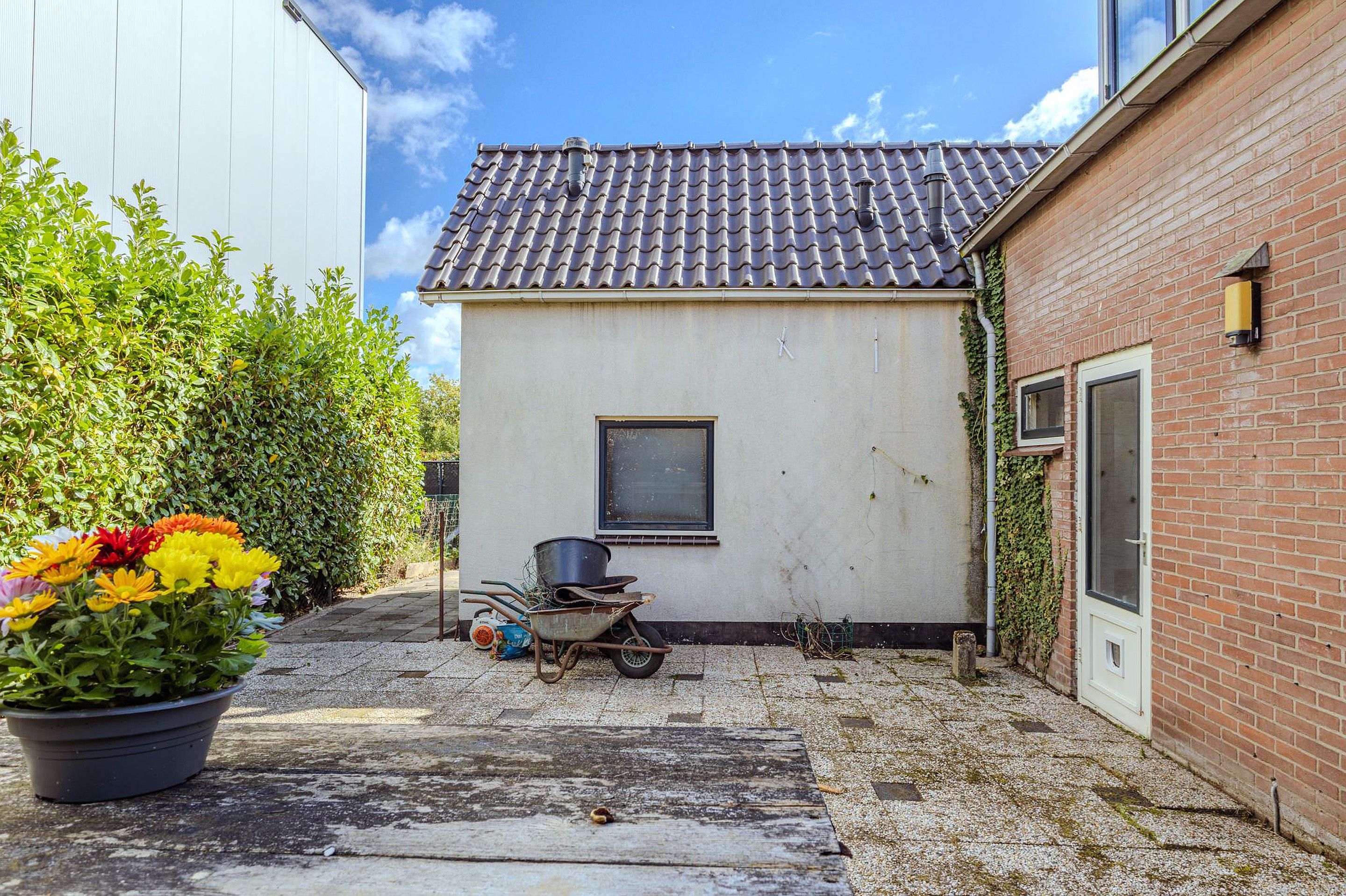 De vrijstaande garage (ca. 6,7 m diep en 5,9 m breed) biedt volop ruimte en mogelijkheden. Aan de voorzijde bevindt zich een dubbele toegangsdeur, terwijl de achterzijde is voorzien van een loopdeur met aangrenzende overkapping. Binnen treft u een ruime vliering, elektra en een wateraansluiting. Dankzij deze praktische voorzieningen en de royale afmetingen is de garage multifunctioneel in gebruik.