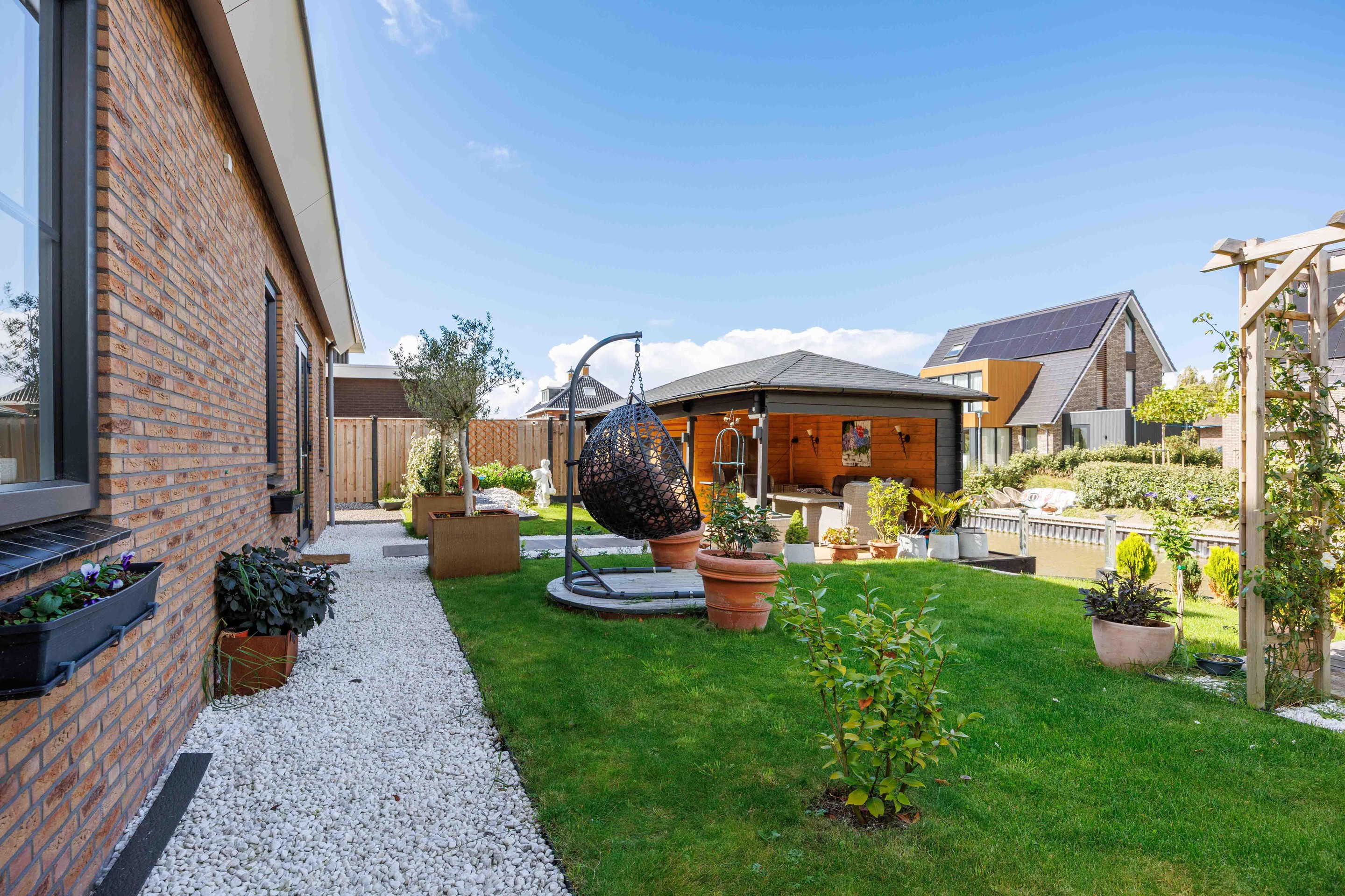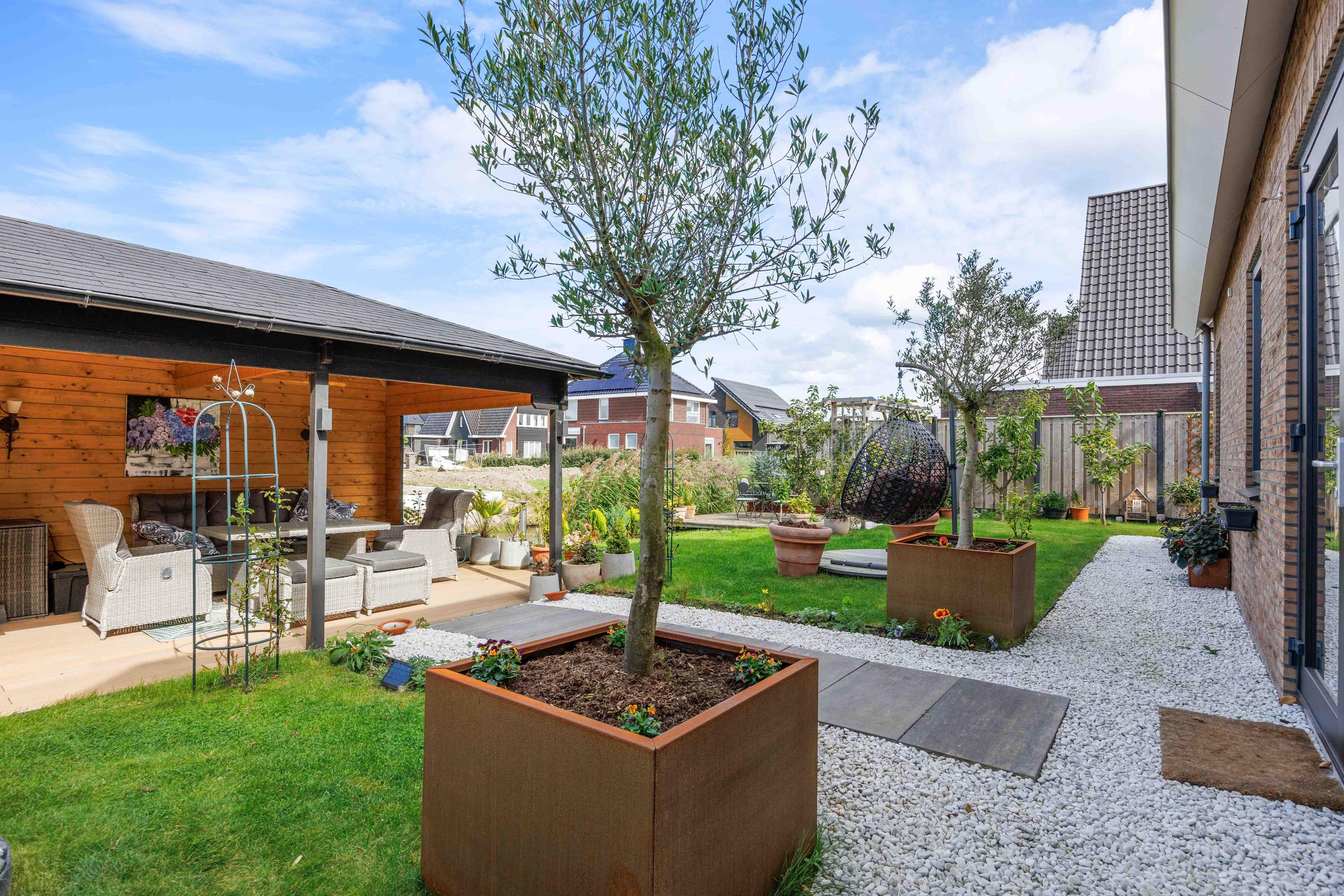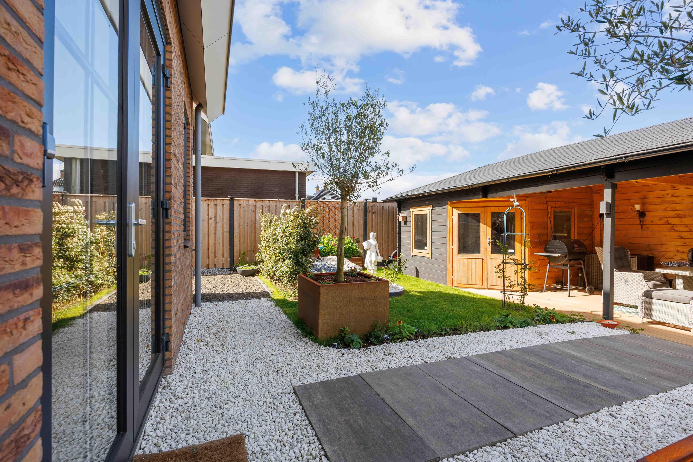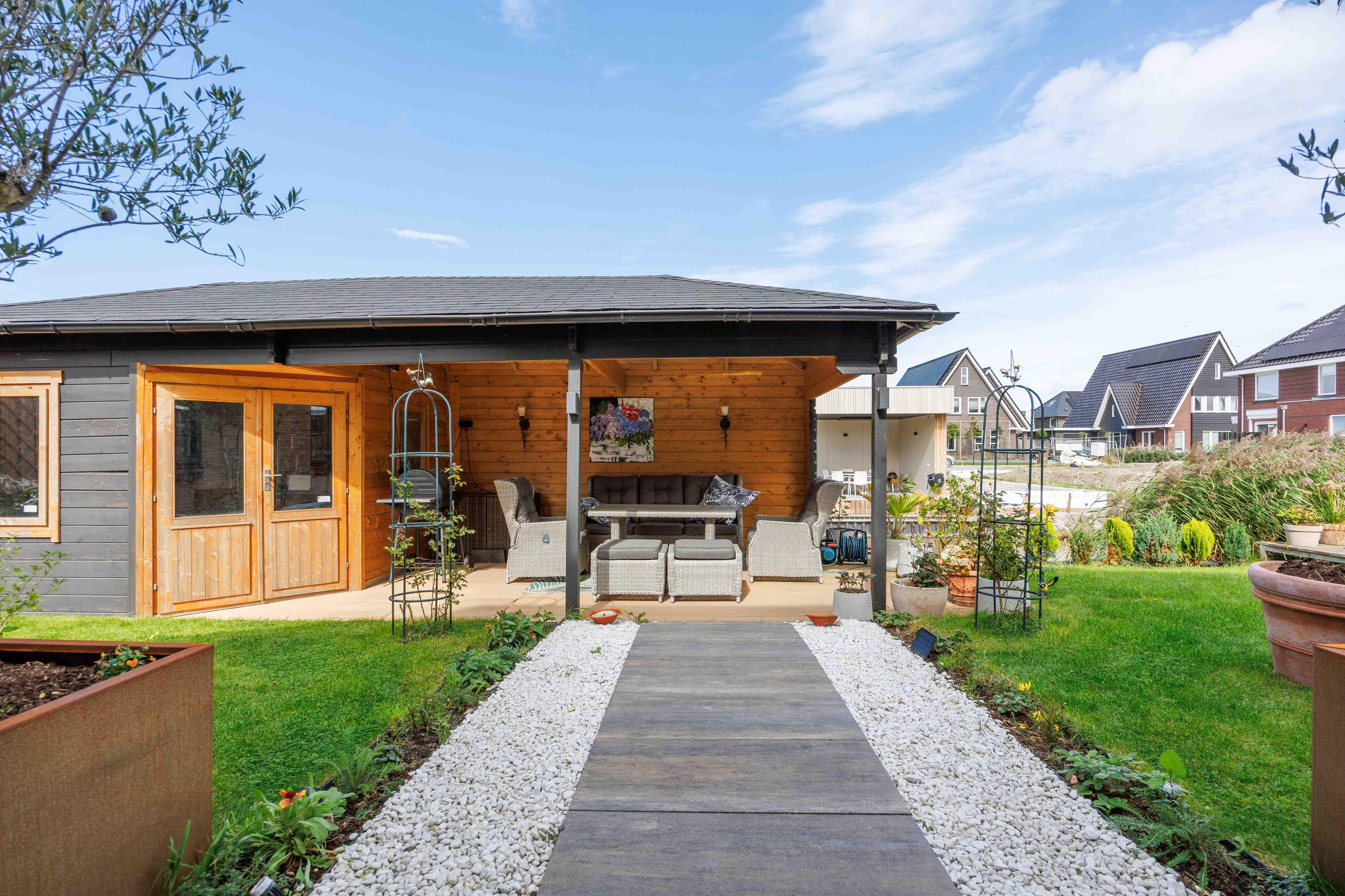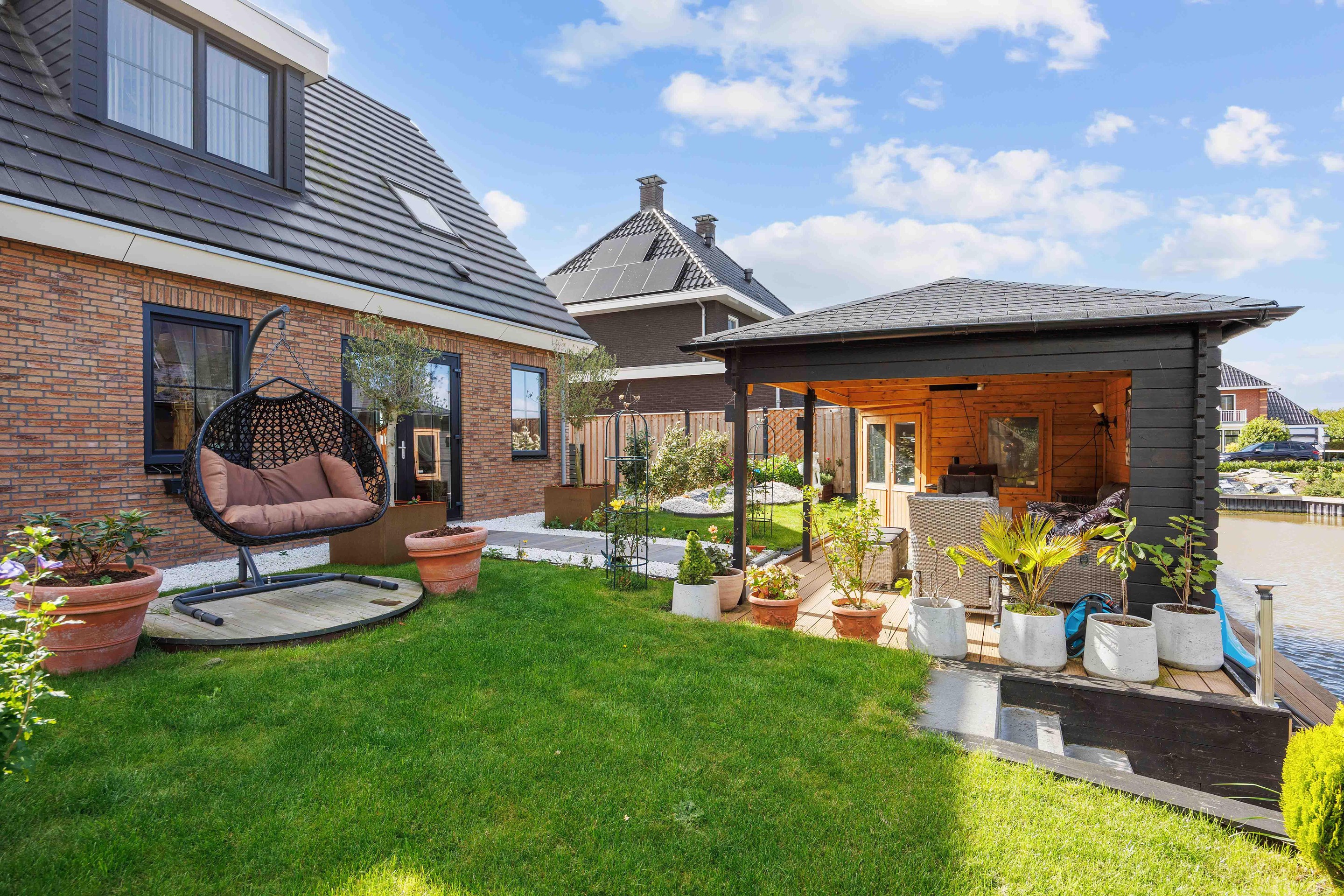 De fraaie aangelegde tuin rondom de woning is geheel af en biedt volop privacy. Een bijzonder pluspunt is de ligging aan open vaarwater (Bolswardervaart), met een eigen luxe hardhouten steiger over de gehele breedte van het perceel wat garant staat voor watersport, vissen of gewoon genieten van de rust. Daarnaast is er een vrijstaande houten berging met overkapping, praktisch voor extra opslagruimte én een fijne plek waardoor je ook bij minder mooi weer kunt genieten van het buitenleven, ongeacht het seizoen. De voortuin biedt parkeergelegenheid op eigen terrein, alsmede een oplaadpunt voor elektrische voertuigen.