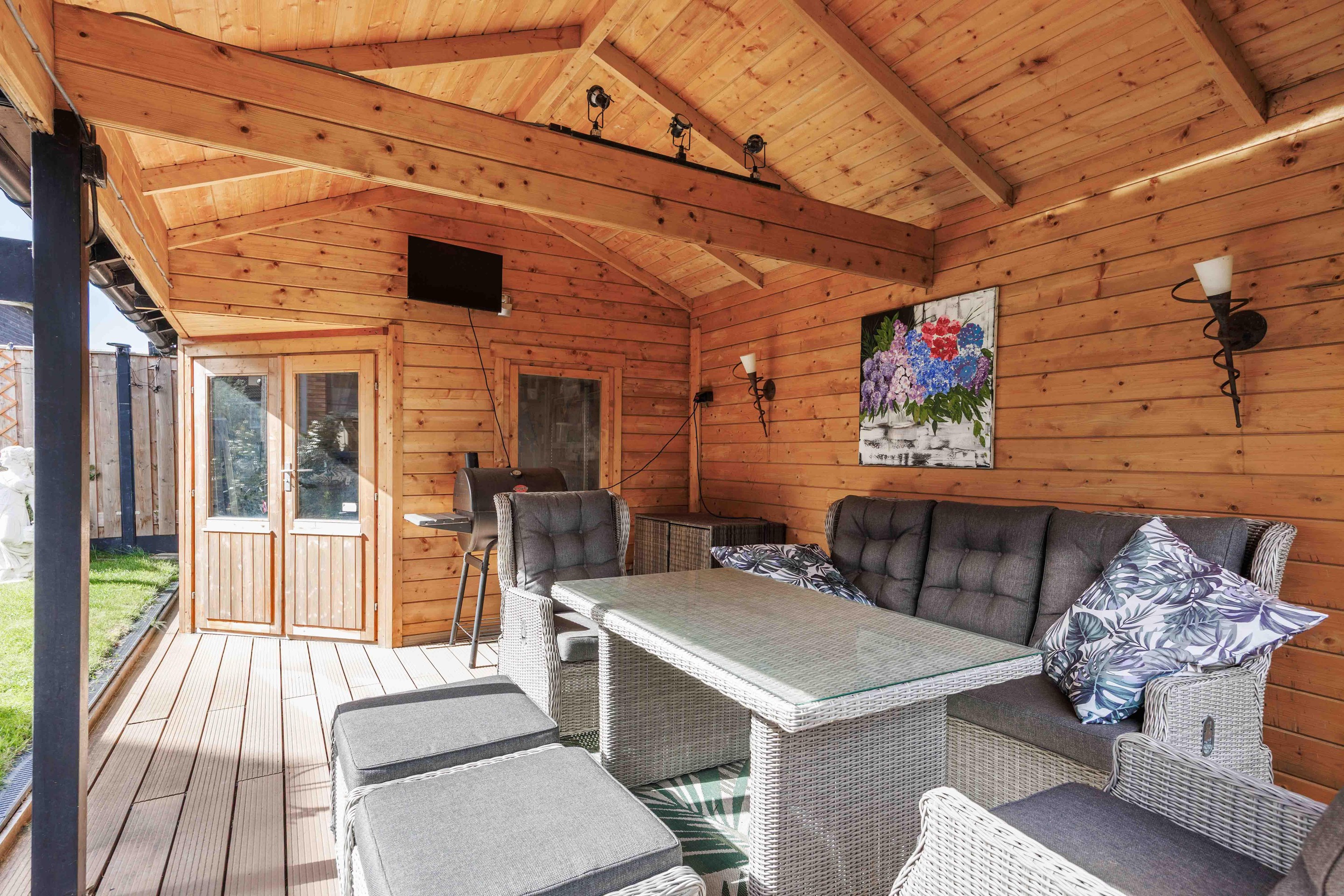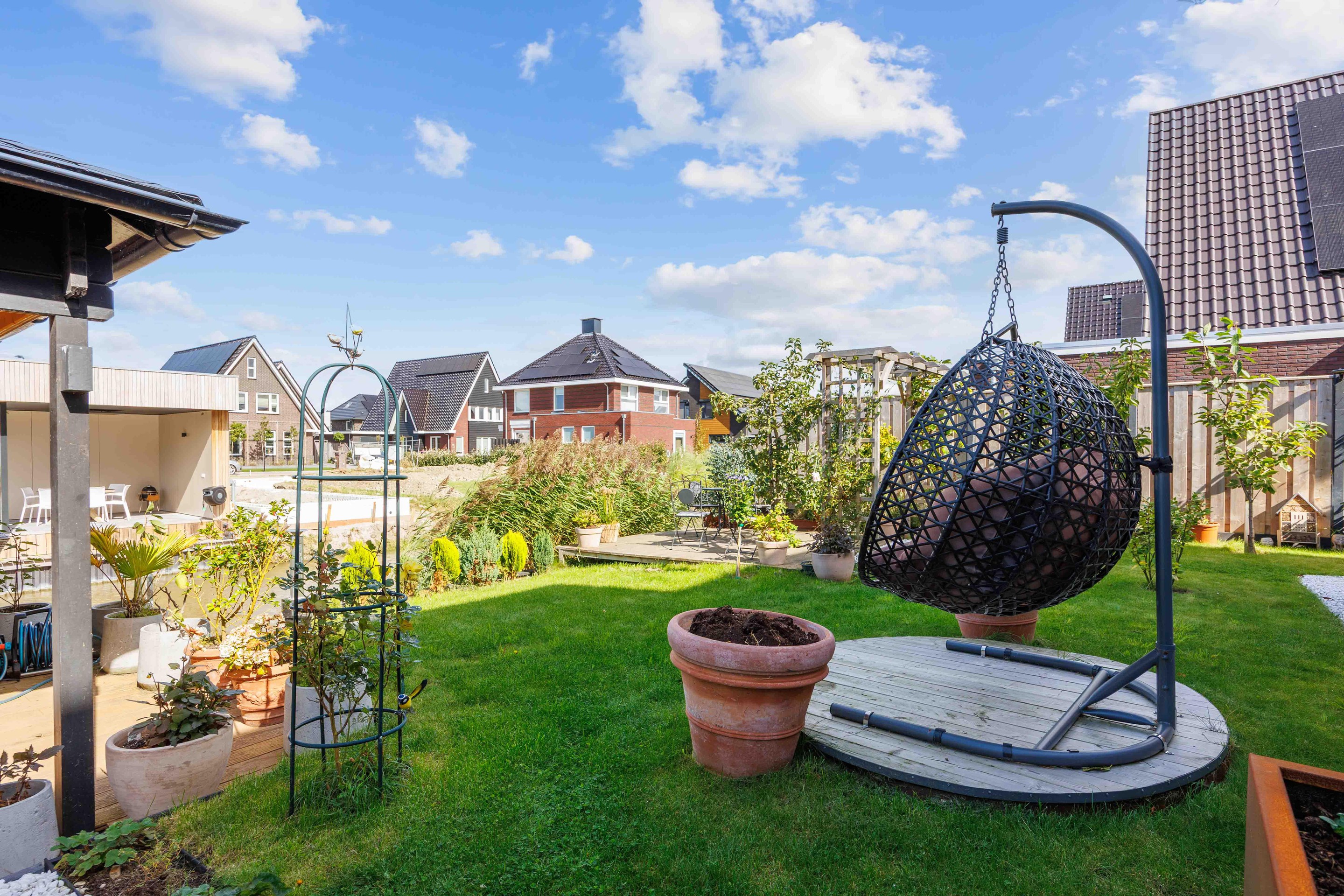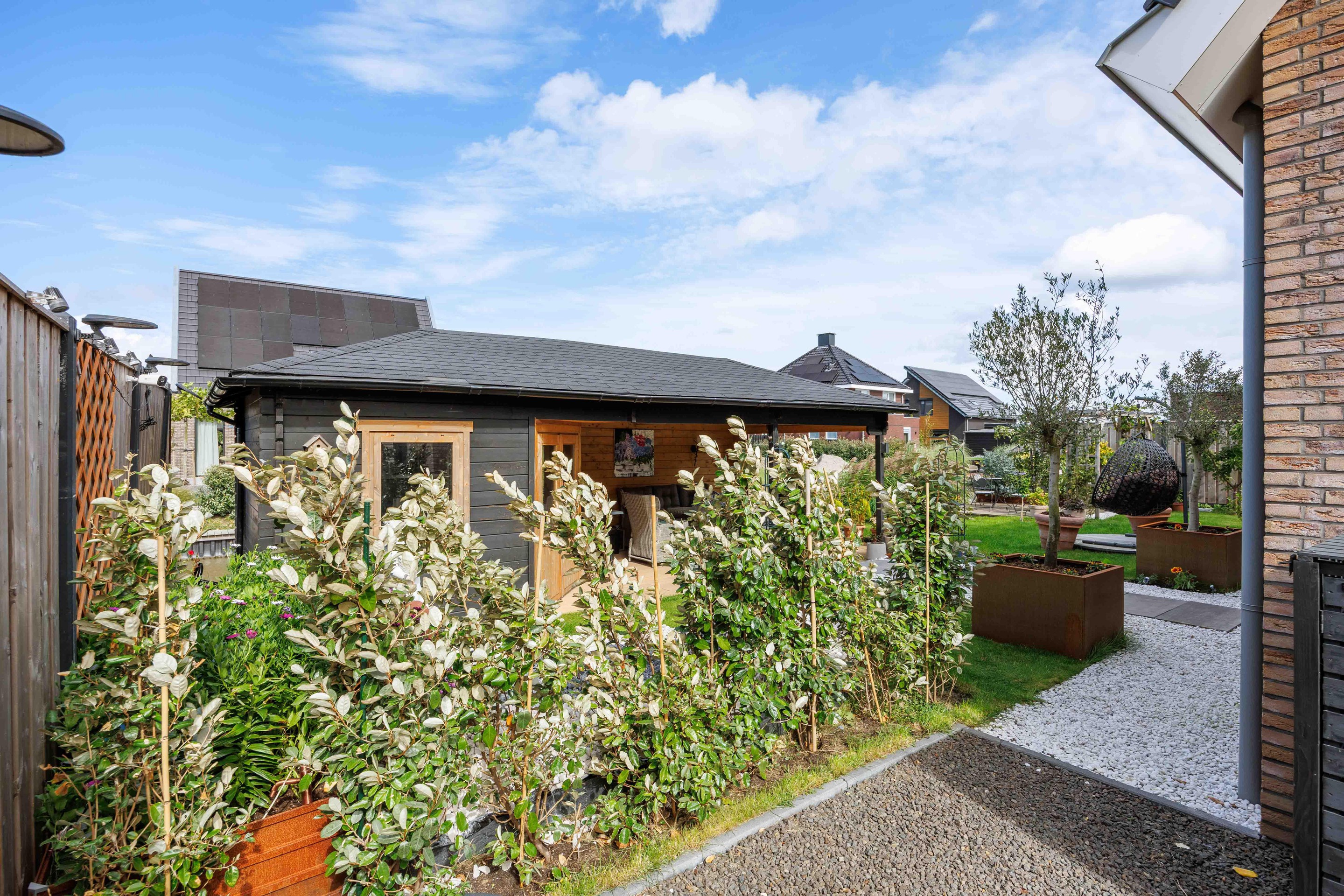 De luxe open keuken is het hart van de woning en is uitgevoerd met een stijlvol kookeiland, hoogwaardige inbouwapparatuur en veel opbergruimte. Het geheel vormt een eigentijdse leefruimte waar koken, gezelligheid en modern design samenkomen. Via de openslaande tuindeuren bereik je eenvoudig de achtertuin, waardoor binnen en buiten op een natuurlijke manier met elkaar verbonden zijn.