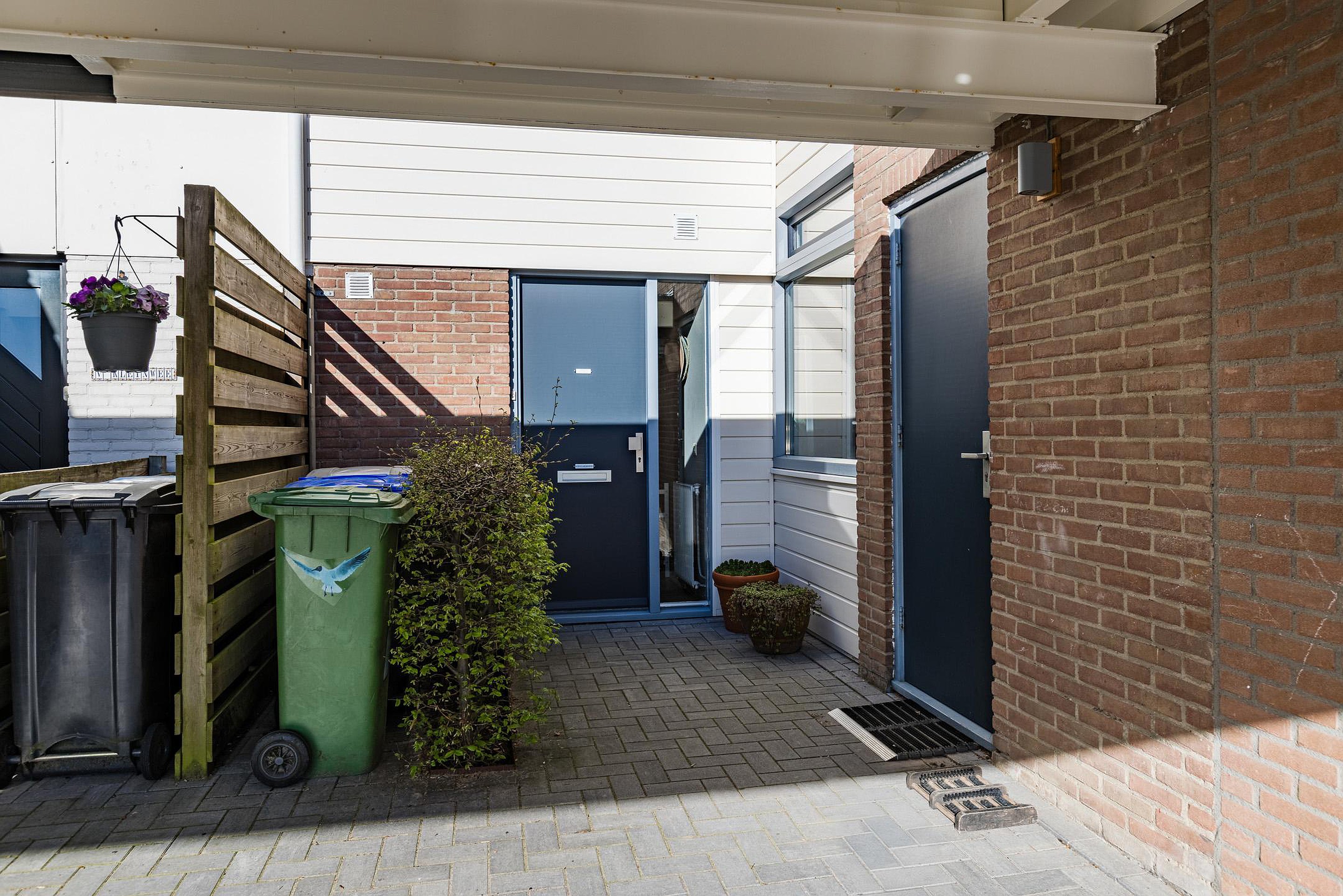 Tuin De voortuin is netjes bestraat. Je kunt hier gemakkelijk een auto parkeren op eigen terrein onder de carport.