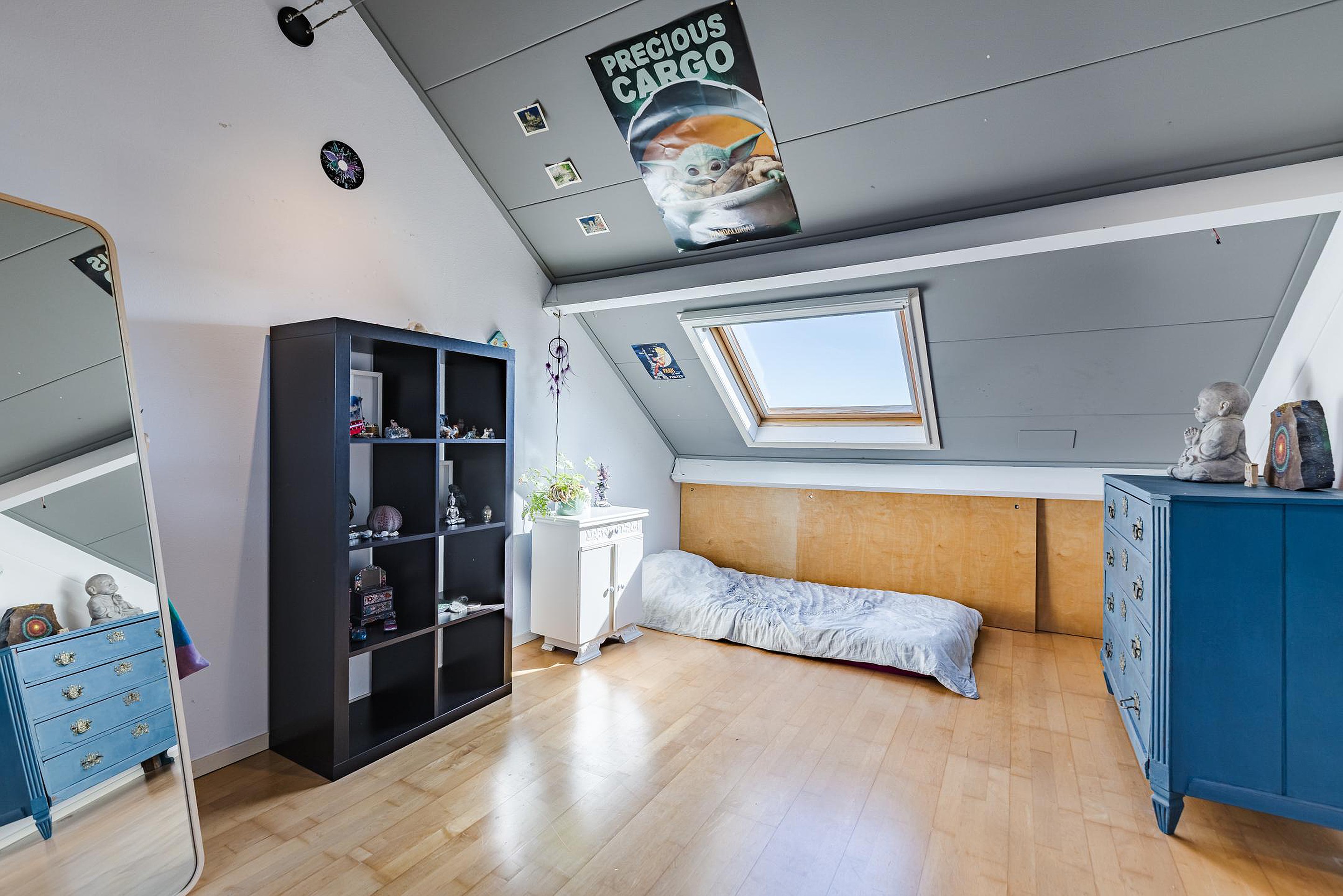 Ruime en lichte slaapkamer met 2 Velux dakramen.