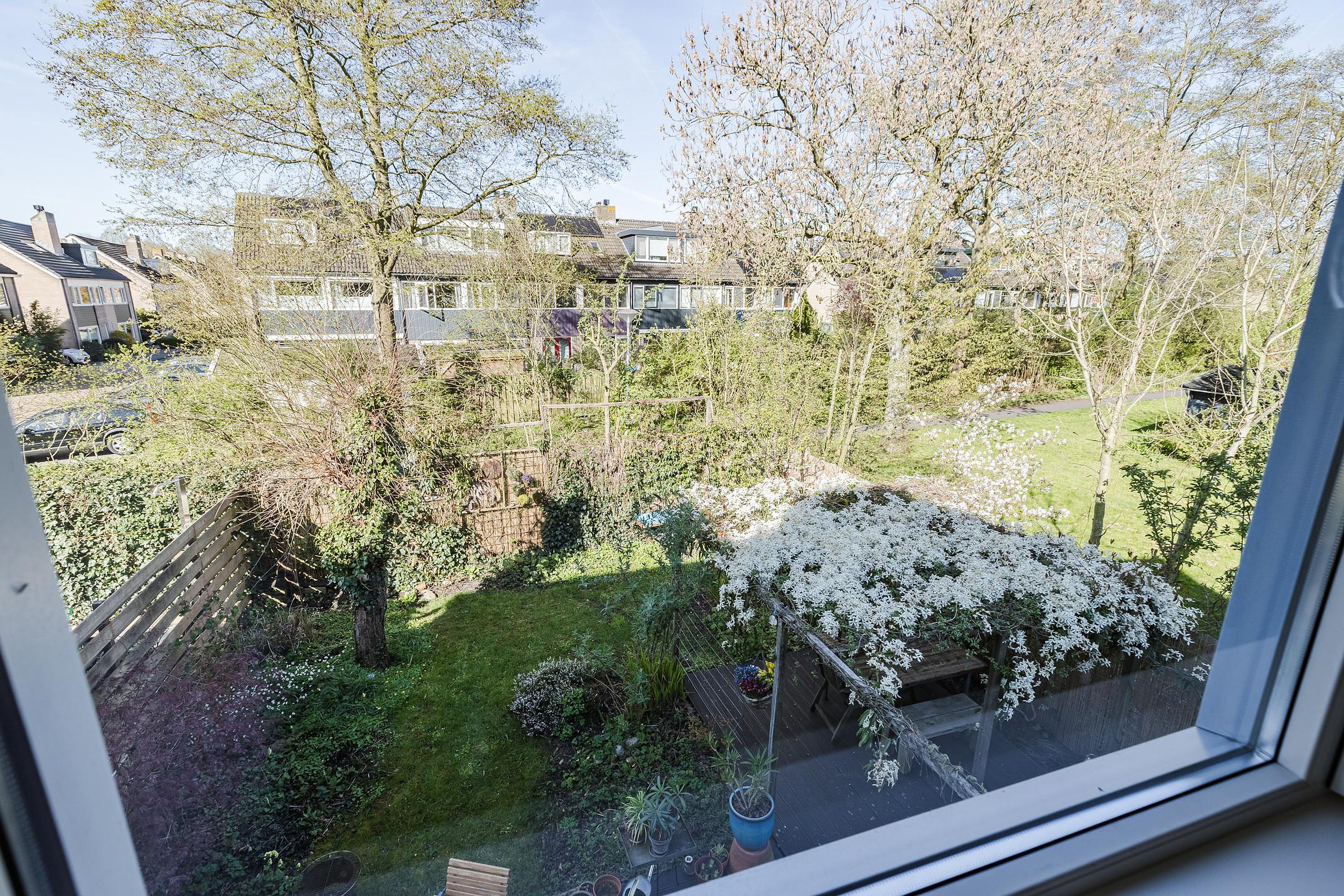 De voortuin is mooi bestraat en je kunt hier fijn onder de carport een auto parkeren op eigen terrein. Via de zij-tuin kun je achterom. Er staat hier een handige berging met een overkapping. De riante zonnige achtertuin ligt op het westen. De tuin is mooi aangelegd met veel groen en een vijver. Er zijn verschillende terrassen en je kunt ook heerlijk zitten onder de prachtig begroeide pergola. Door de vrije ligging aan de zij- en achterkant van de tuin is er veel privacy. De woning is gelegen in de geliefde en kindvriendelijke Molenwijk met veel verschillende speelvoorzieningen en groene ruimtes. Scholen, sporthal, tennisbanen en een zwembad zijn dichtbij. Het gezellige centrum van Harmelen met diverse winkels en eetgelegenheden is op loopafstand. Harmelen is gelegen in het Groene Hart en heeft veel wandel- en fietsmogelijkheden. Bovendien ligt het centraal aan de A12, waardoor je met de auto snel in alle grote steden bent. De bushalte is dichtbij en de busverbindingen naar Utrecht en Woerden zijn prima. Een prachtige hoekwoning op een fijne plek!