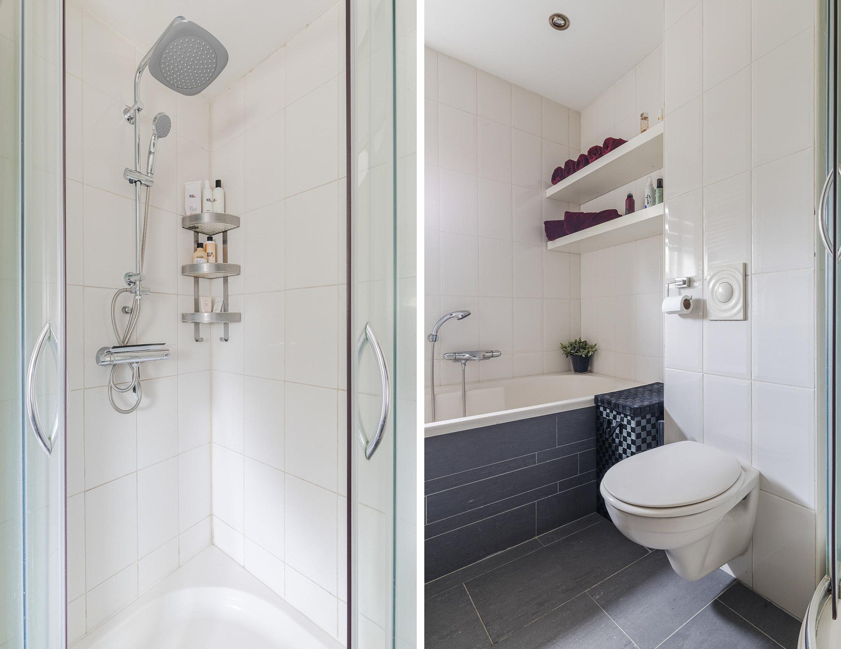 Op de 1e verdieping tref je 2 slaapkamers en een badkamer aan. Aan de achterzijde waren voorheen 2 slaapkamers en deze zijn samengevoegd tot 1 slaapkamer. Je kunt hier gemakkelijk weer 2 slaapkamers van maken.