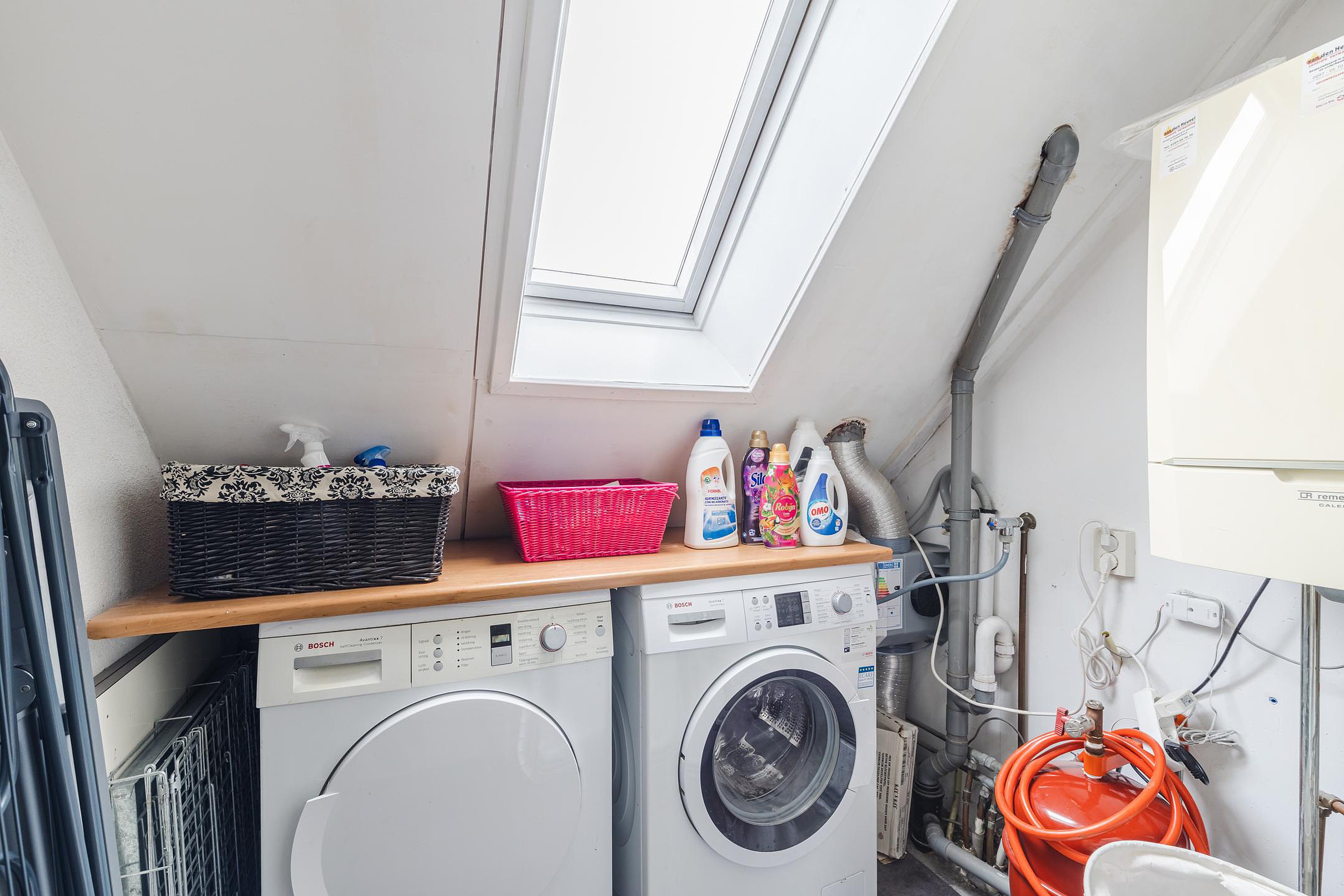 Wasruimte met wasmachine- en drogeraansluiting, cv ketel Remeha (bouwjaar 2010) en m.v. box.
