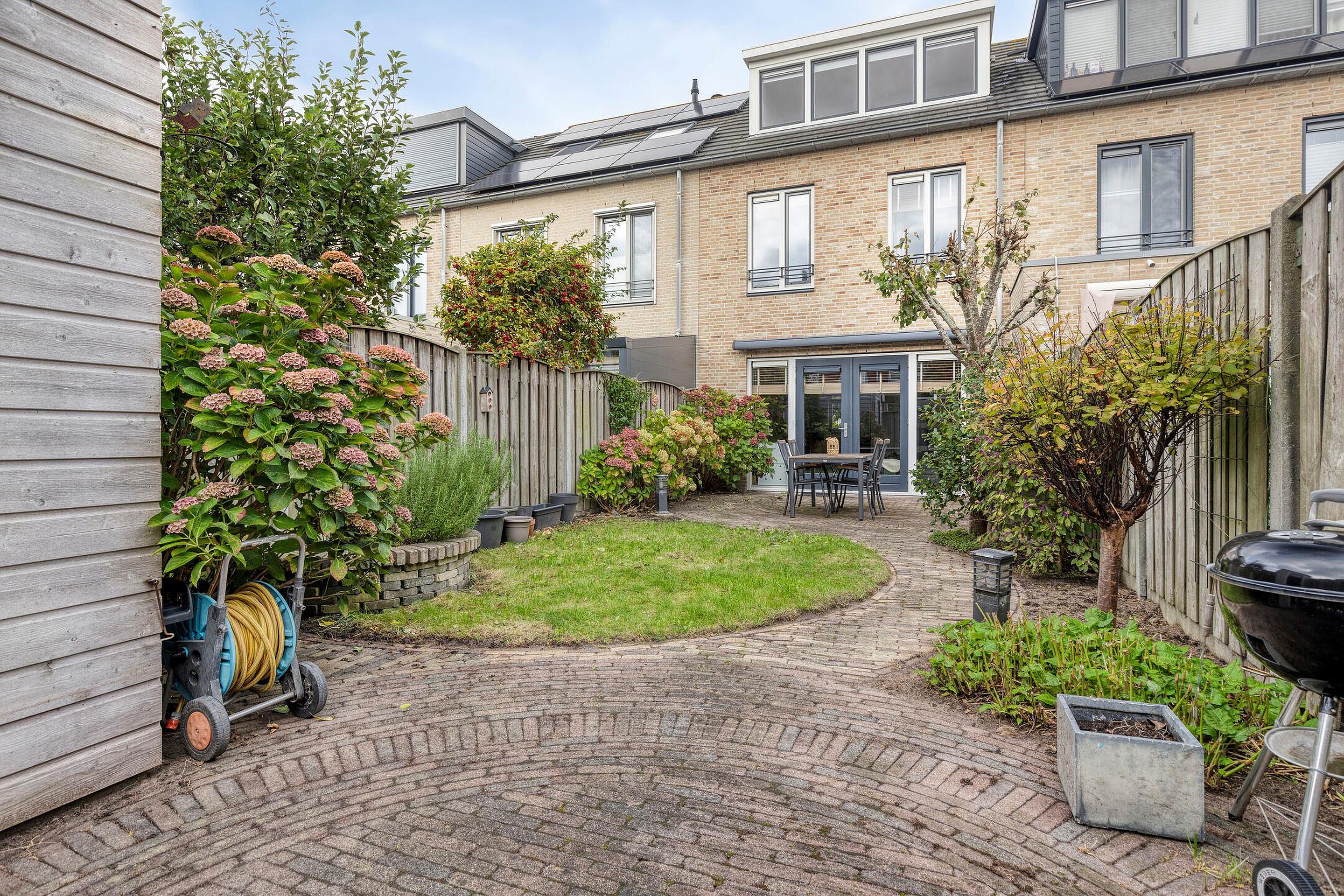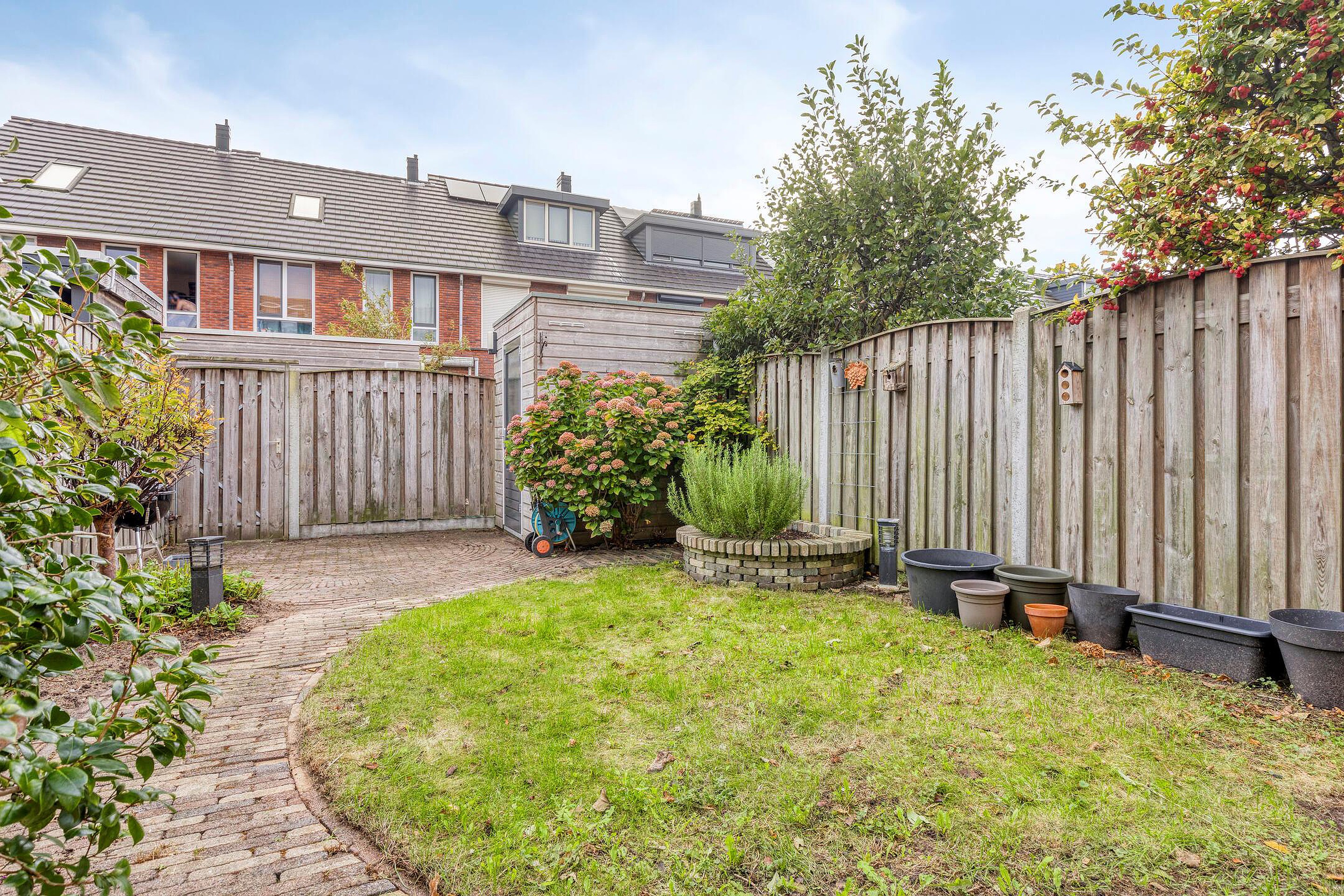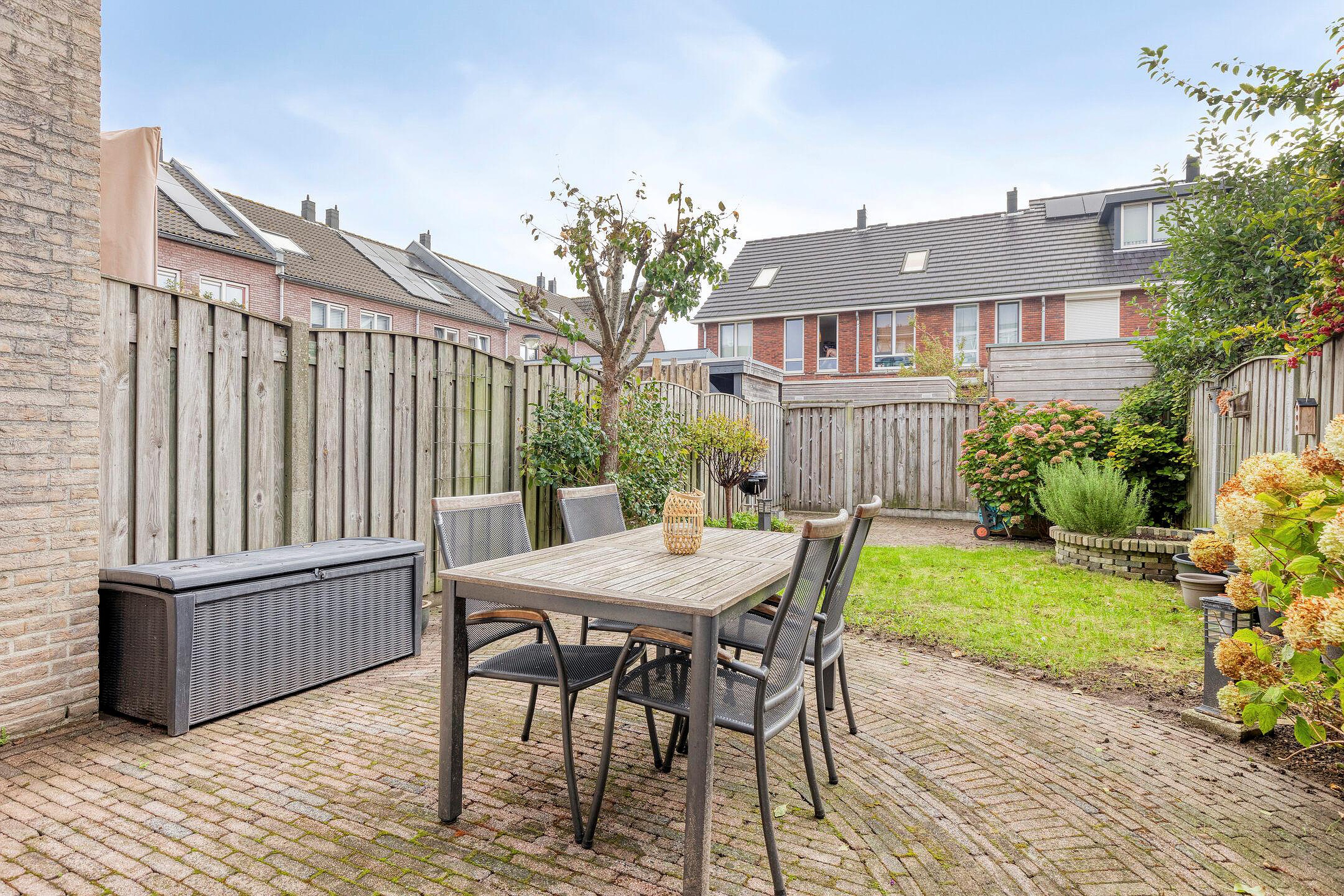 - zonnige achtertuin met achterom;