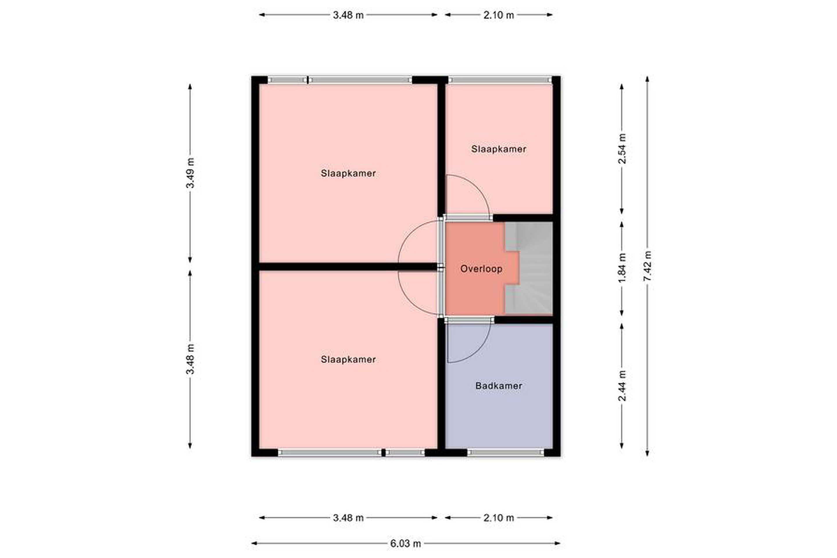 Eerste verdieping Op de eerste verdieping bevinden zich 3 slaapkamers en de badkamer.