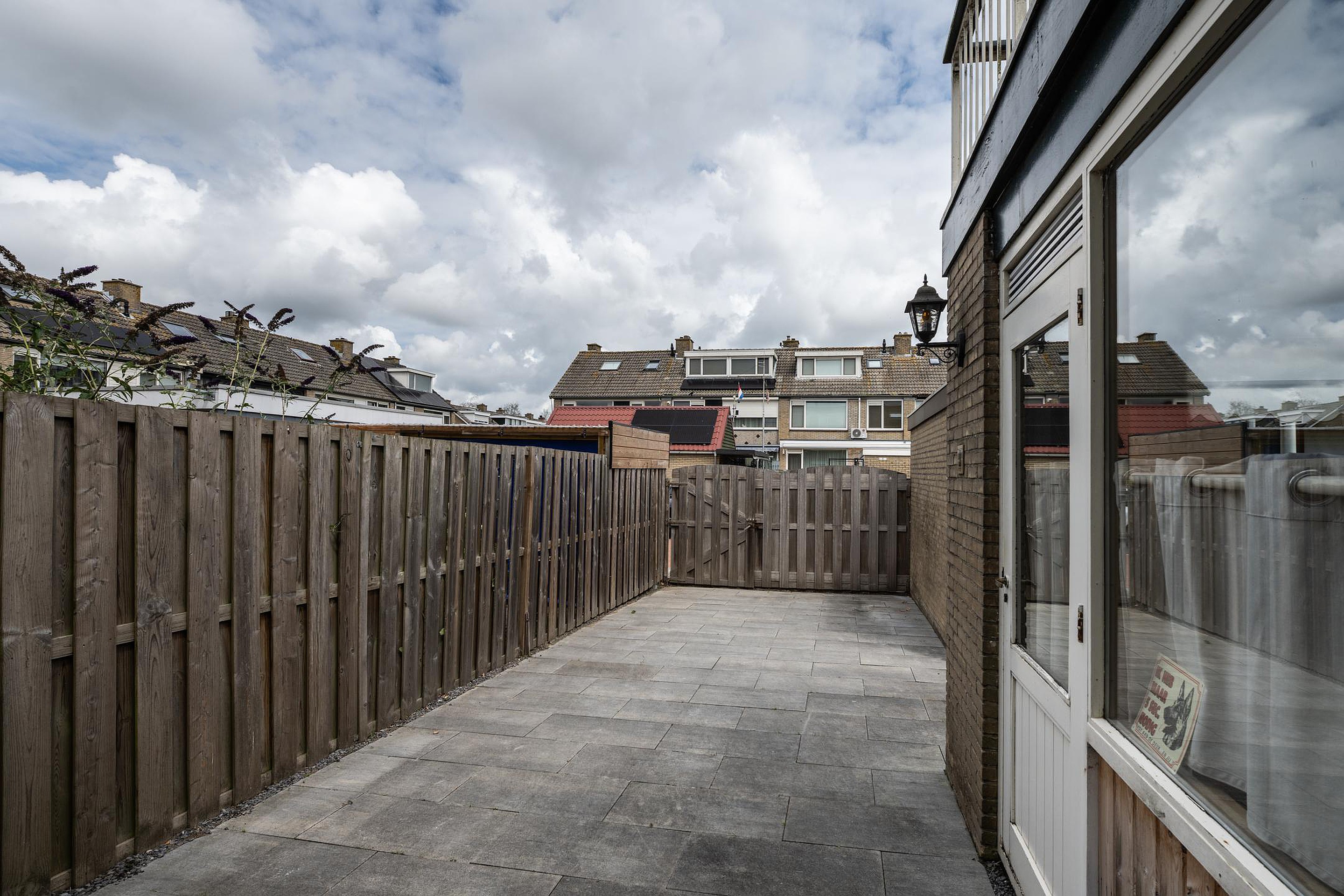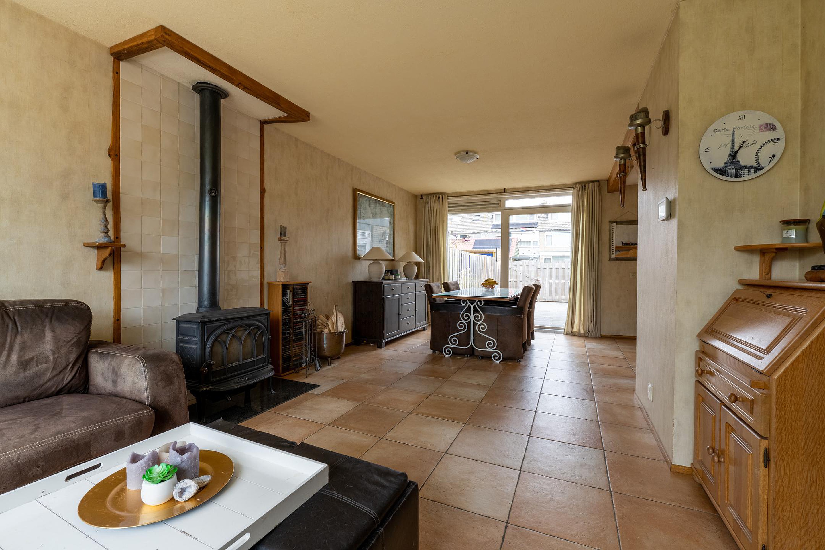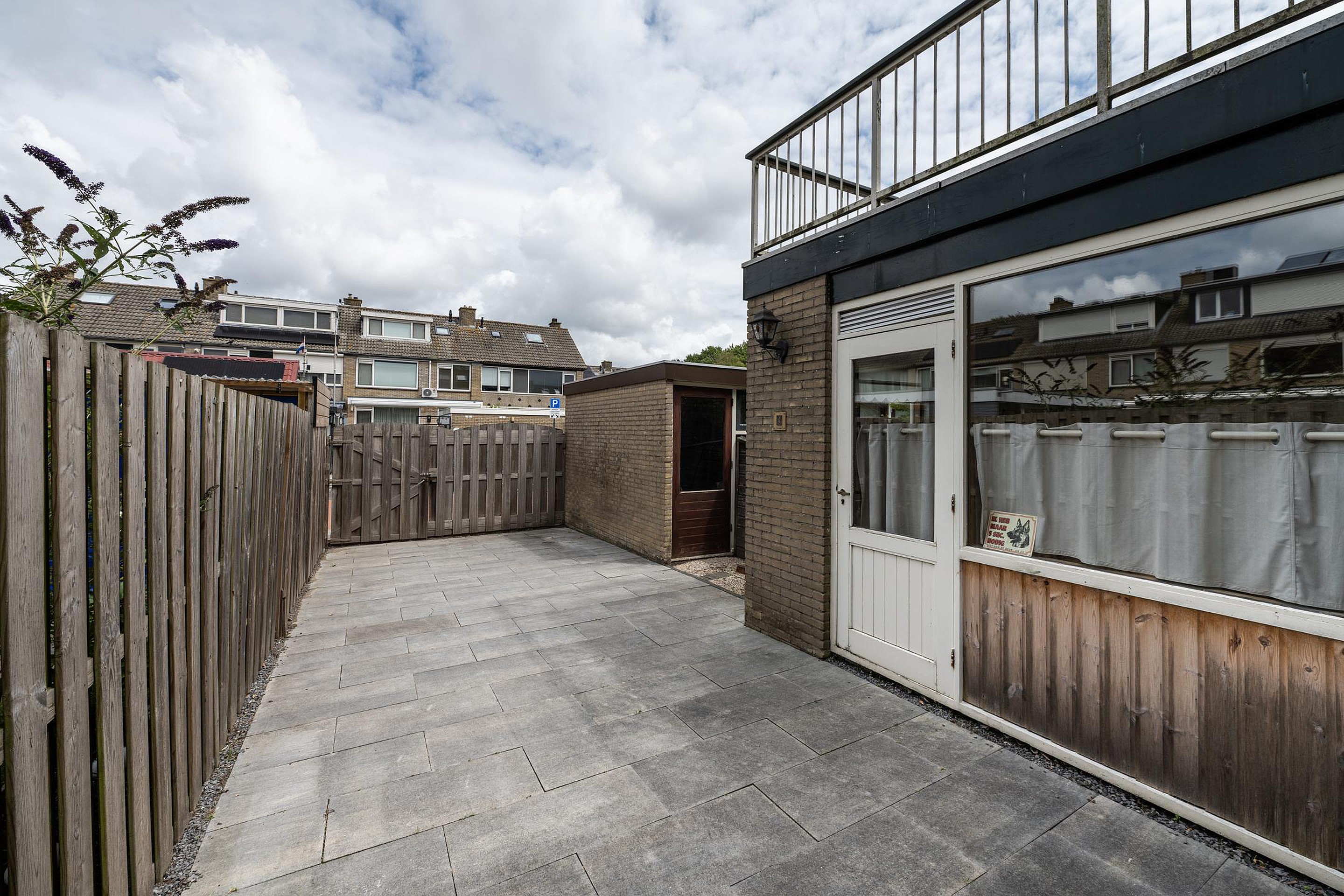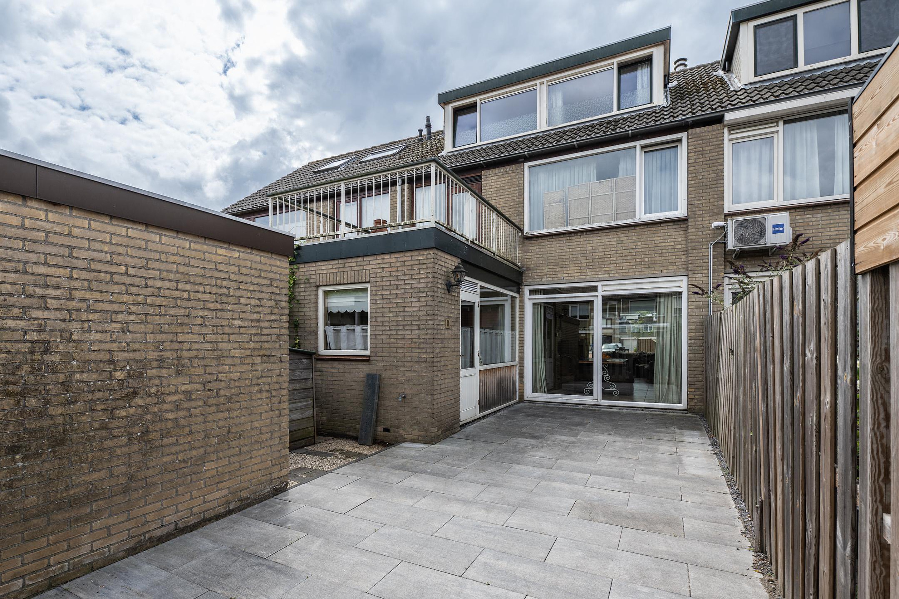 Begane grond U komt binnen in de af te sluiten entree, vervolgens betreedt u de hal met de trapopgang, trapkast, toiletruimte en de meterkast. Via deze hal komt u in de ruime woonkamer. Zoals hiervoor beschreven is de originele indeling gewijzigd, waardoor de originele keukenruimte nu ook bij de woonkamer gerekend kan worden. Aan de achterzijde van de woonkamer is een schuifpui aanwezig voor directe toegang tot de achtertuin. De keuken is in een hoekopstelling geplaatst en voorzien van diverse inbouwapparatuur, waaronder een vijfpits gaskookplaat met afzuigkap, een oven, magnetron en koelkast. Ook via de keuken heeft u middels de tuindeur toegang tot de achtertuin. De tuin is grotendeels voorzien van bestrating, er is een ruime berging aanwezig.