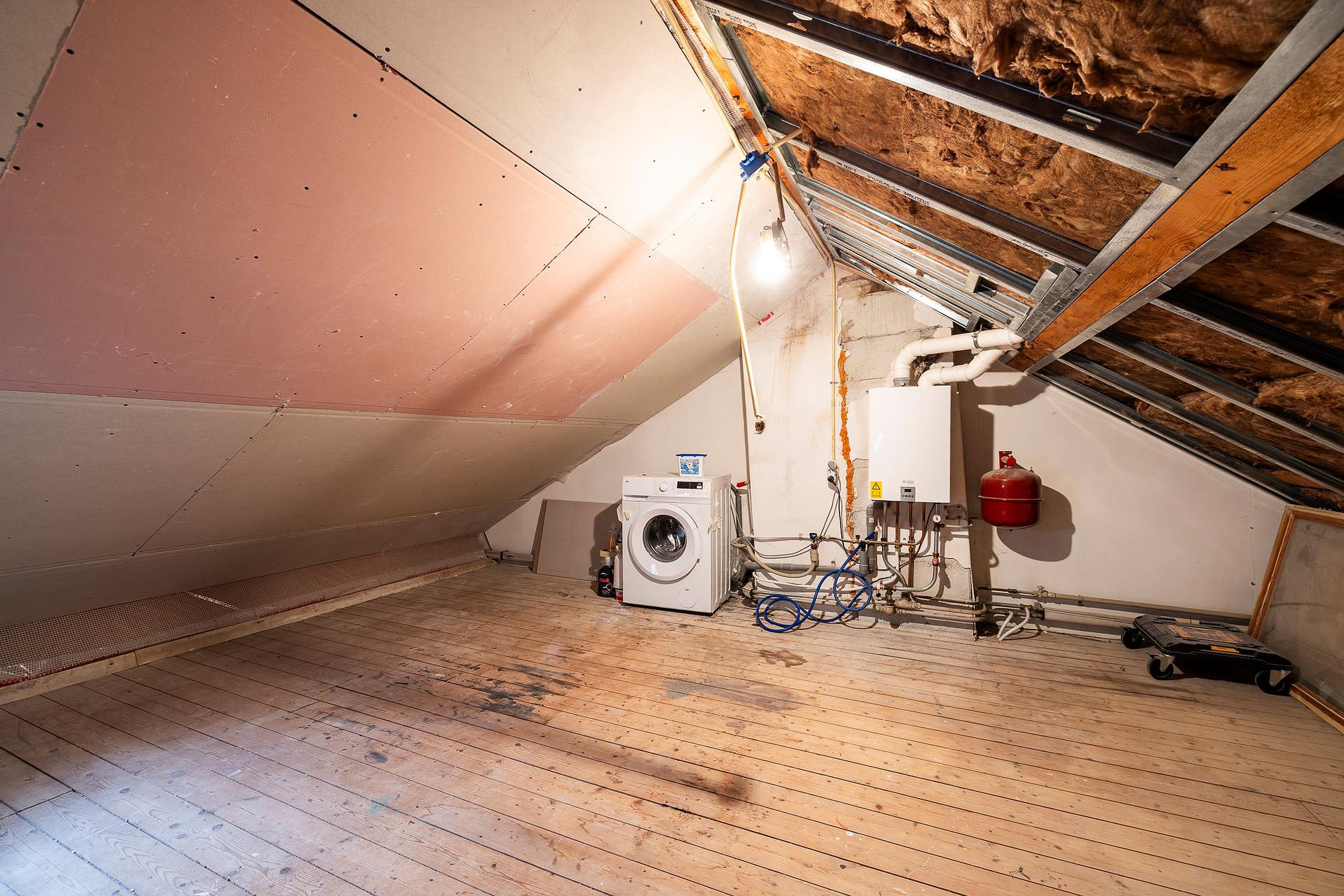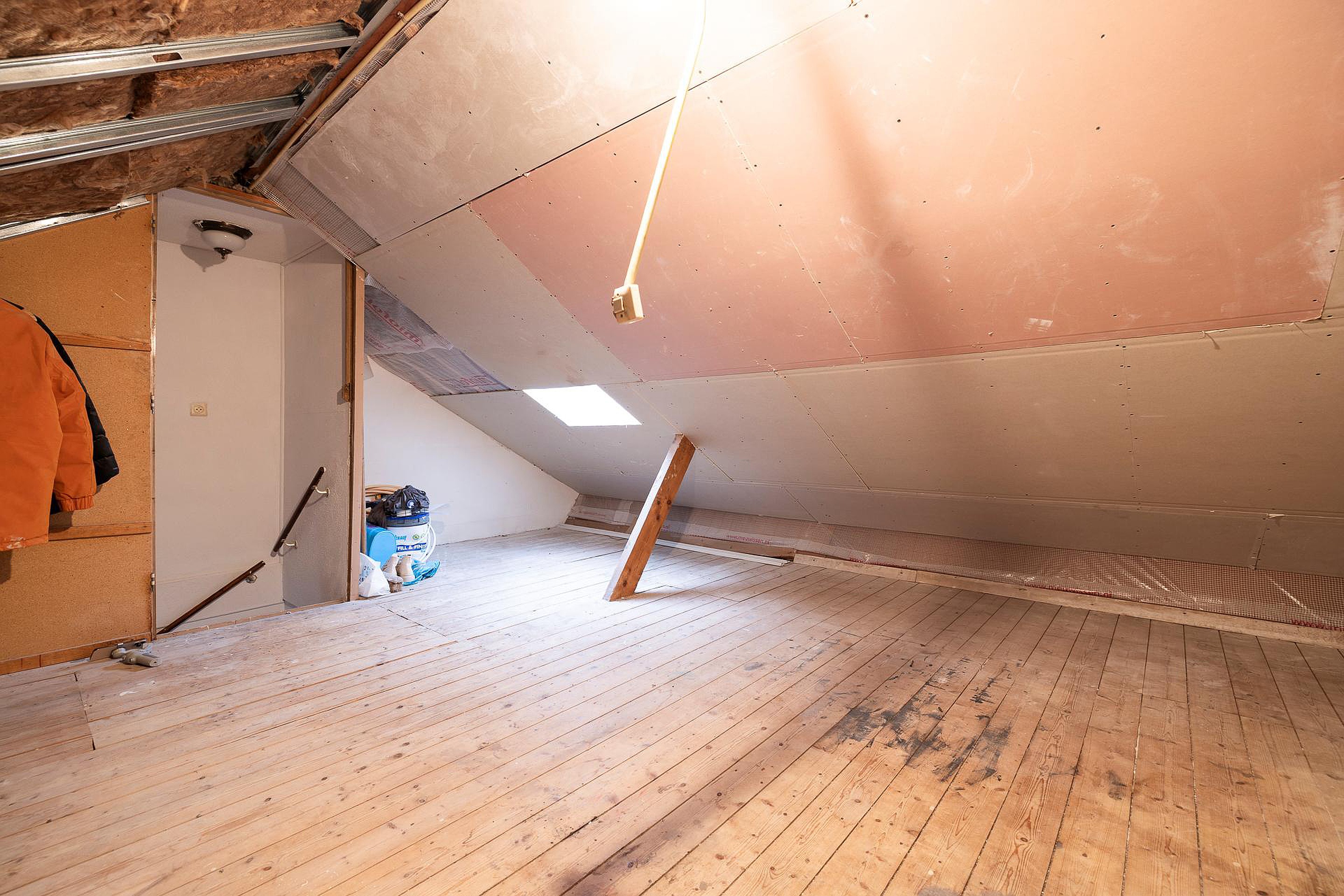 Via de vaste trap bereik je de zolderkamer. Deze kan je als opbergruimte gebruiken of in gebruik nemen als 5e slaapkamer, door het plaatsen van bijvoorbeeld een dakraam of dakkapel.