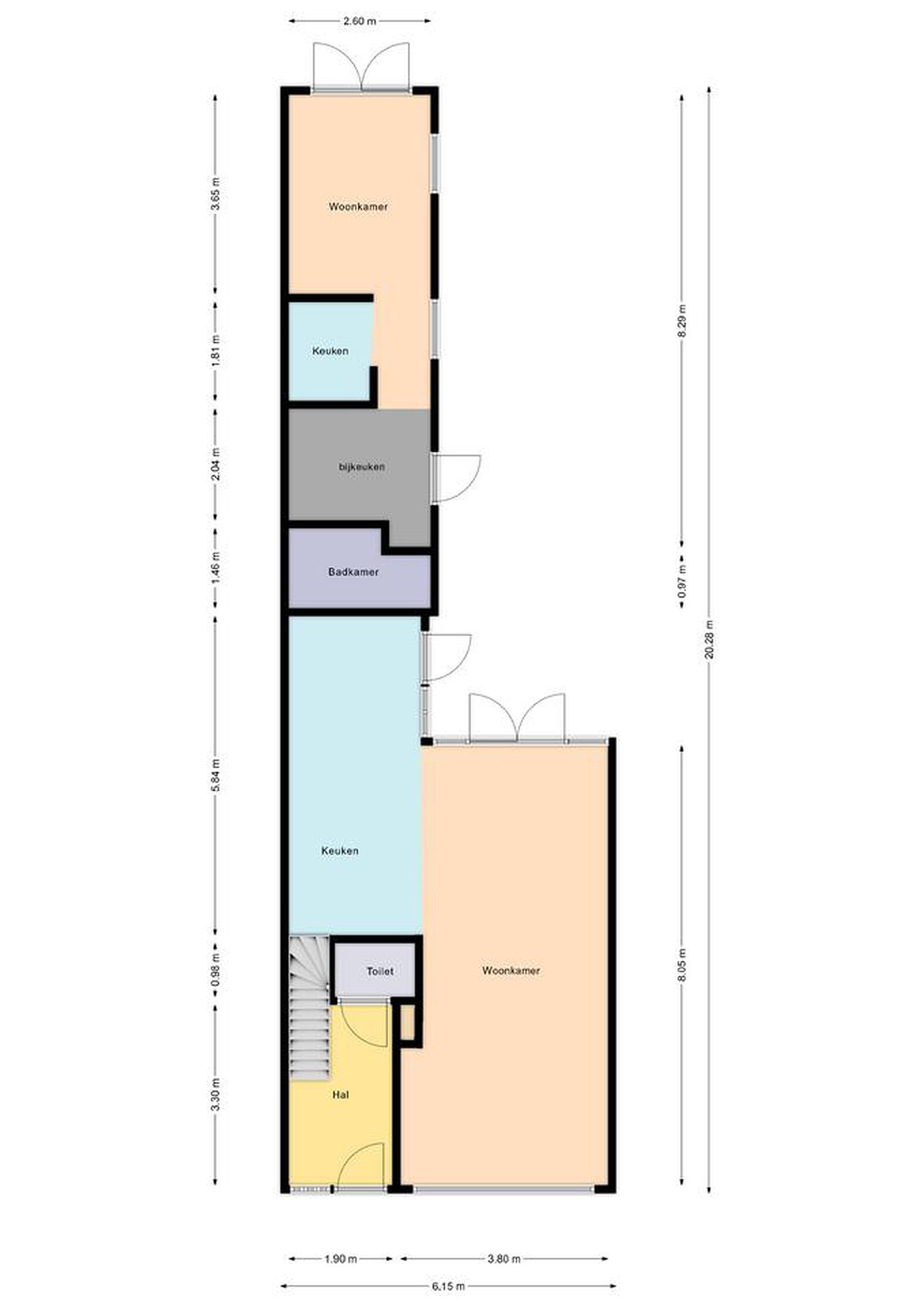 Begane grond u komt binnen in de hal die toegang geeft naar het toilet, de trap naar de 1e verdieping en de woonkamer. De doorzon woonkamer heeft openslaande deuren naar de tuin. Vanuit de woonkamer loopt u tevens de openkeuken in met ook een deur naar de tuin.