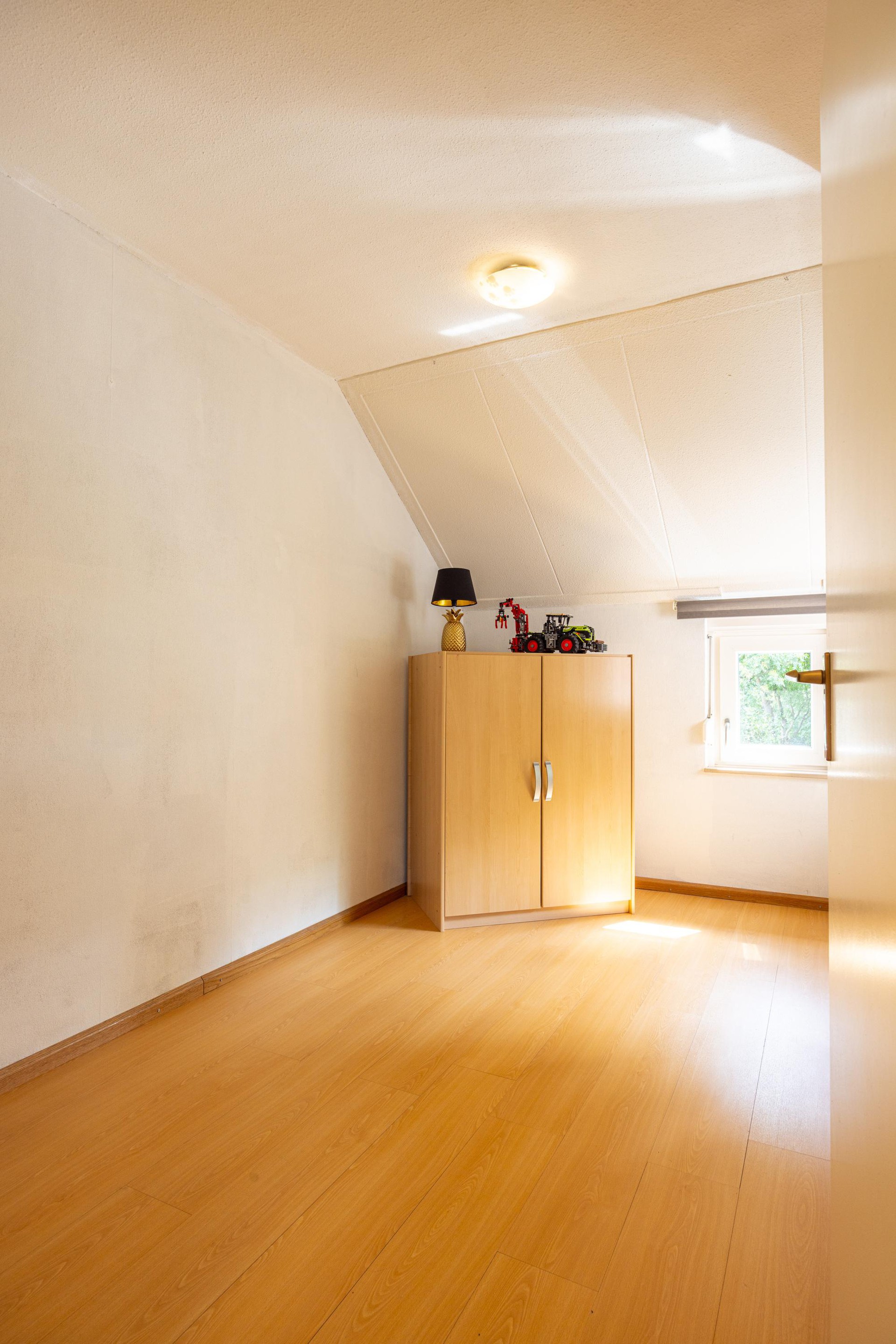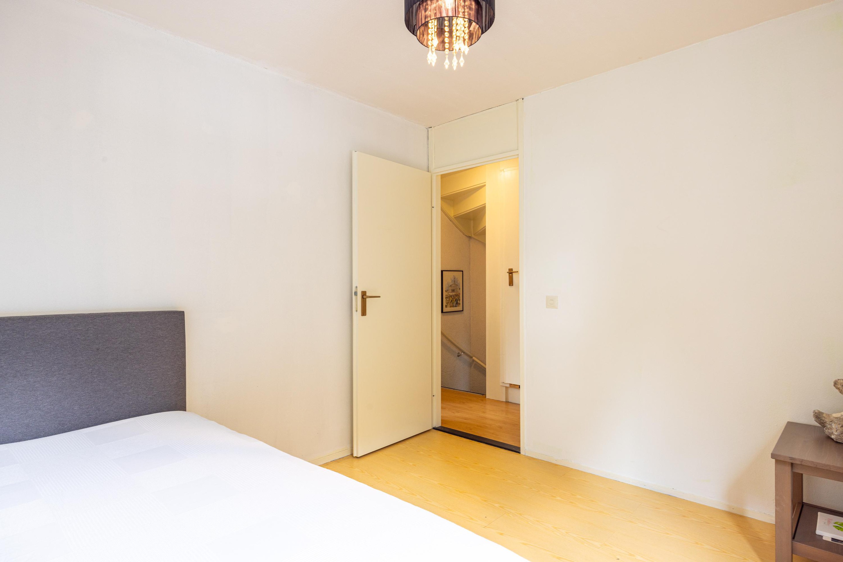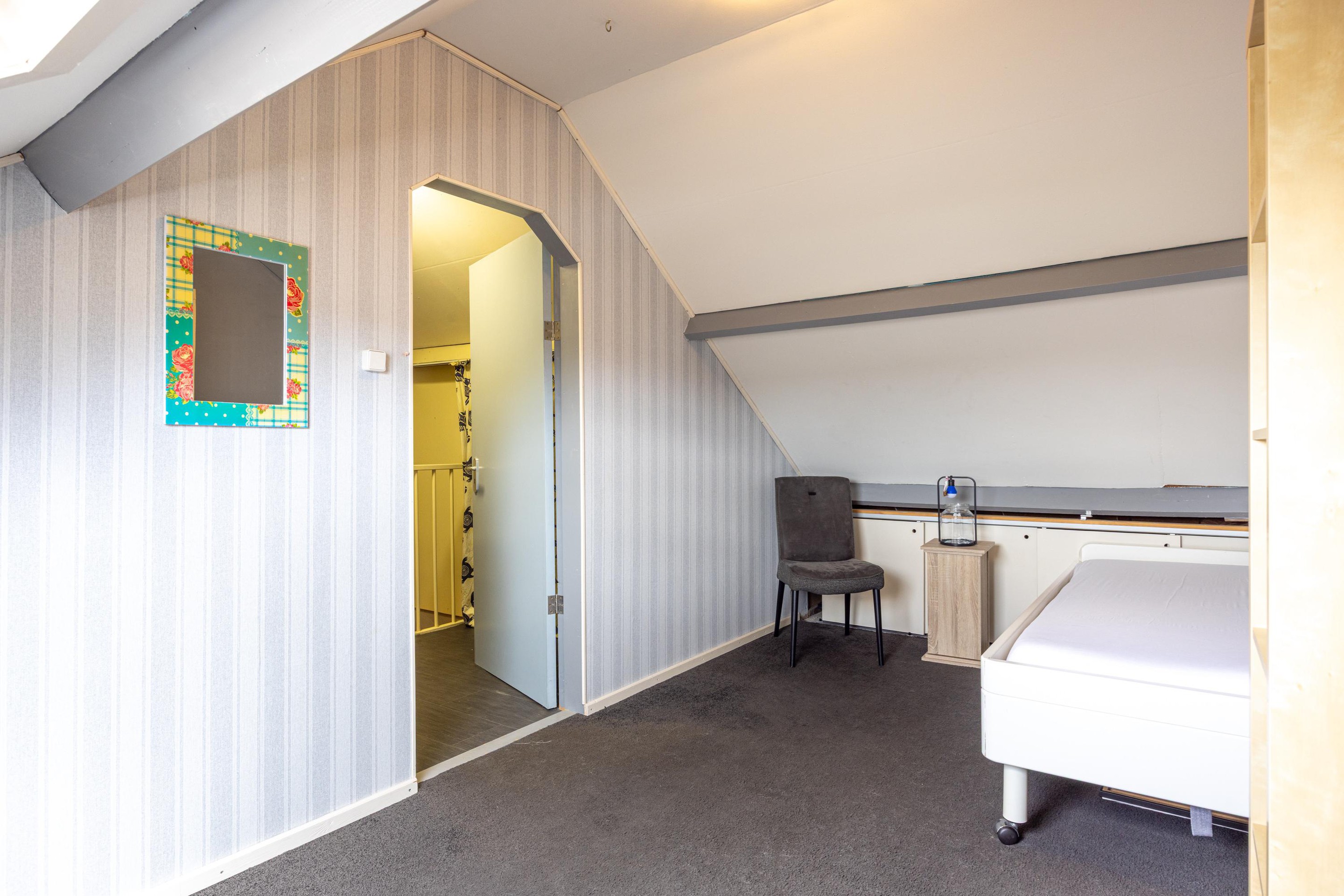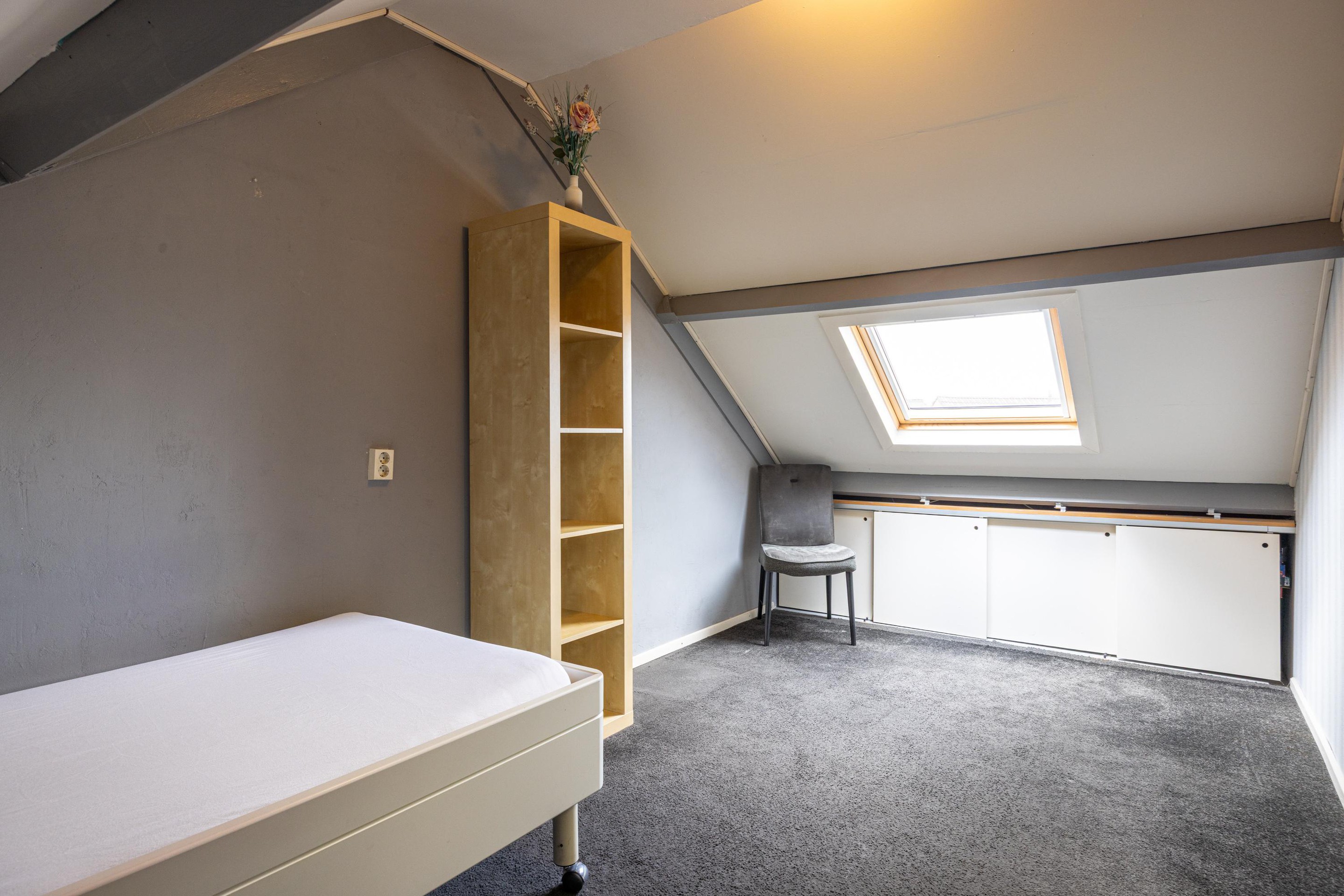 Tweede verdieping Via een vaste trap bereikt u de tweede verdieping. Hier bevindt zich een overloop met aansluitingen voor het witgoed en de cv-installatie. Tevens vindt u hier een vierde slaapkamer, voorzien van tapijt, een dakraam en handige opbergruimte achter schuifdeuren.