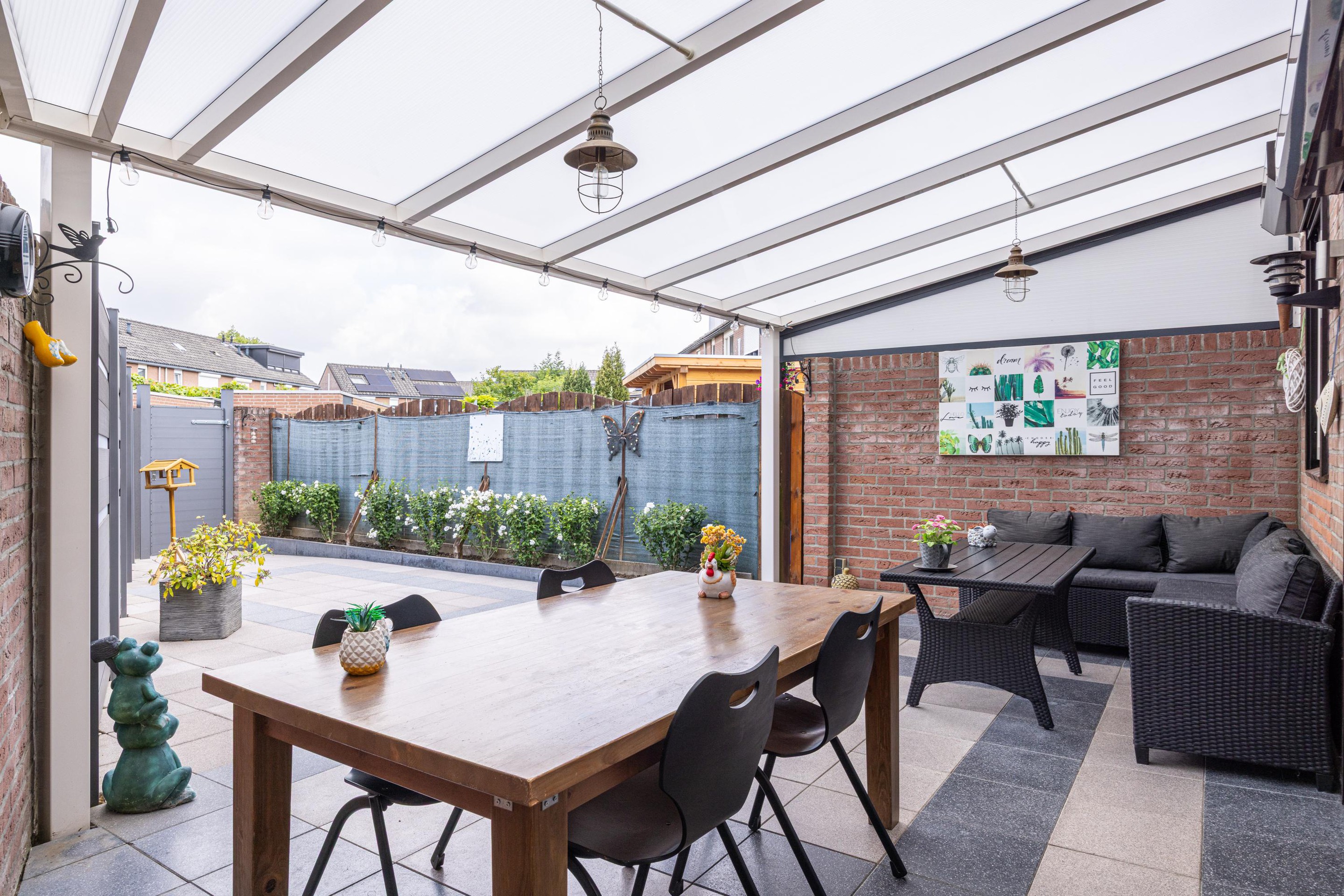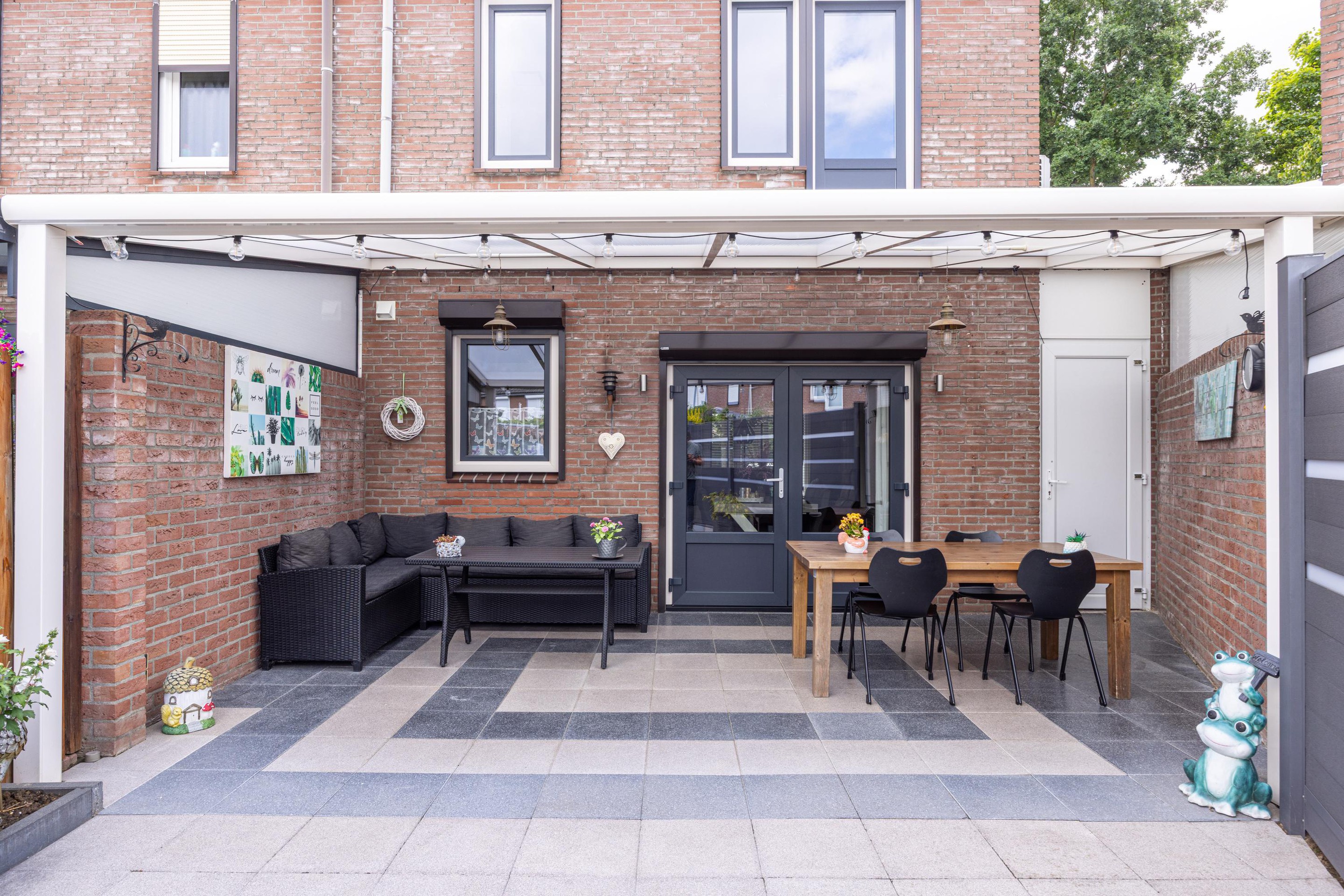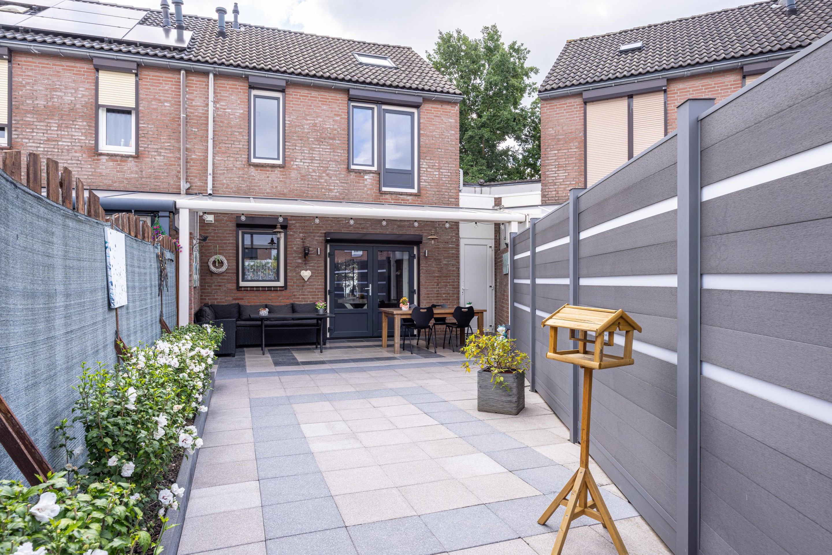 - Onderhoudsvriendelijke tuin met overkapping en achterom