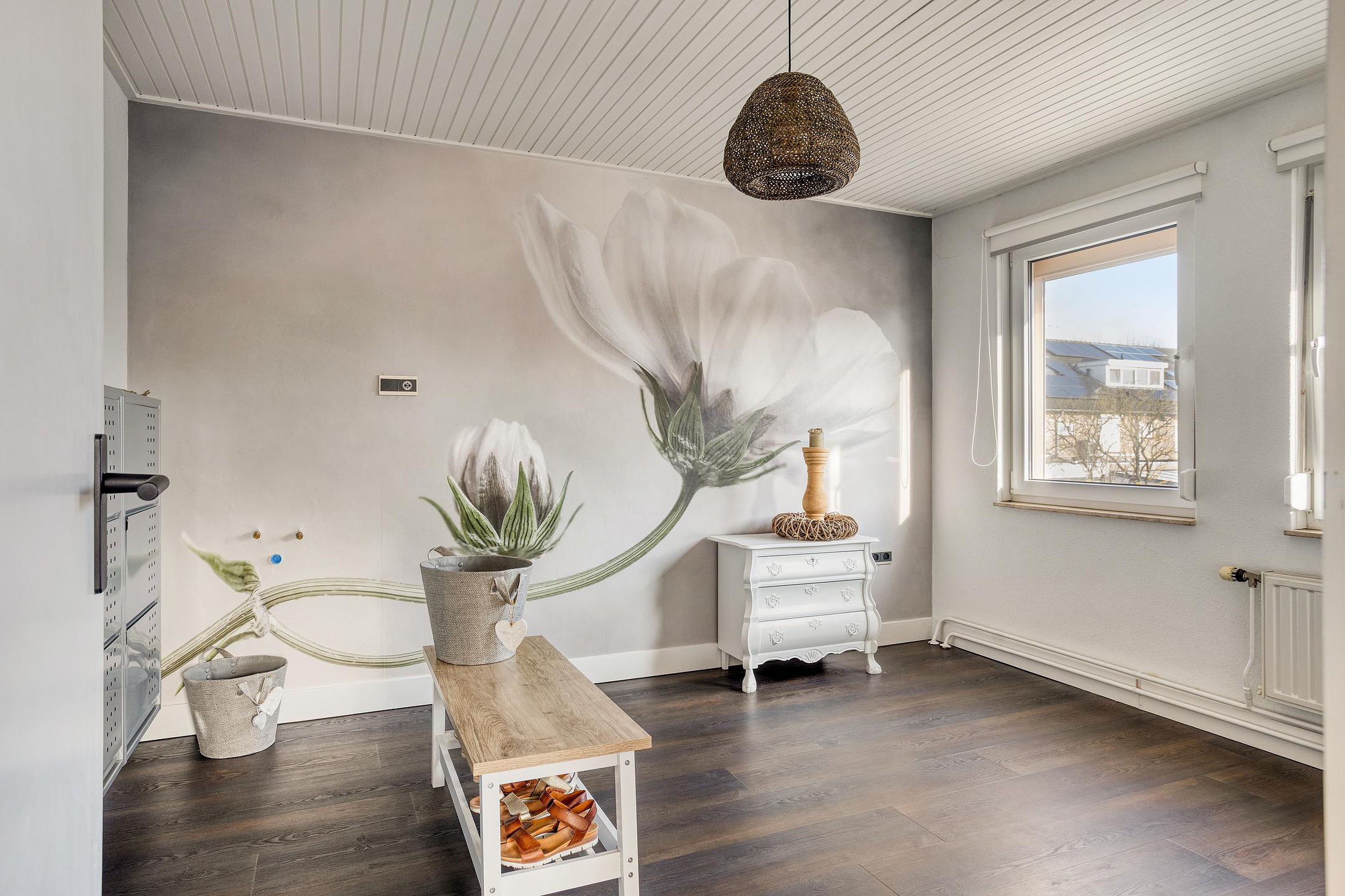 In 2021 is de pui (inclusief loopdeur) tussen de hal en woonkamer vernieuwd.