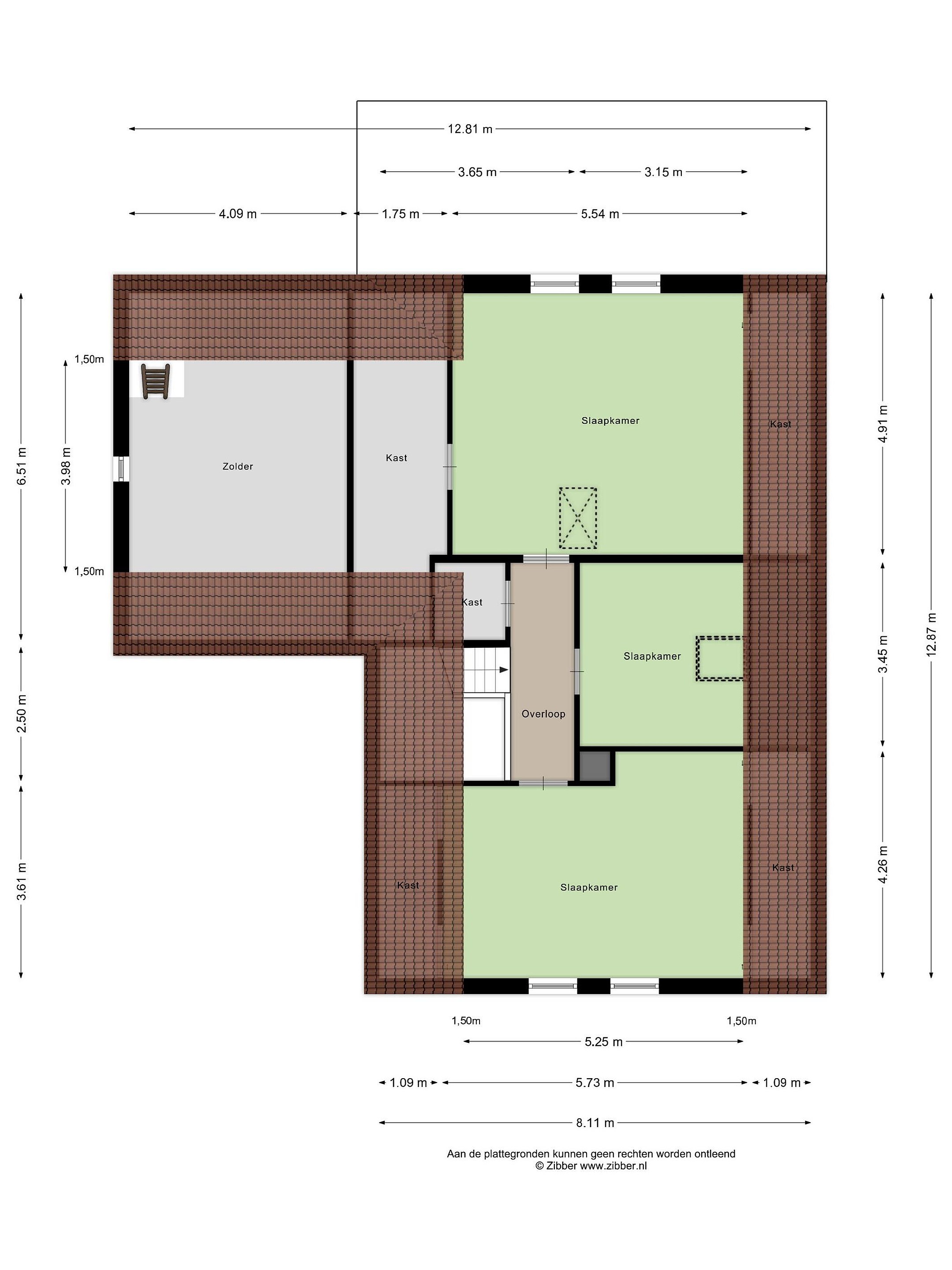 Vanuit de achterste slaapkamer is er een vlizotrap naar de bergzolder (Nokhoogte 1,5m)