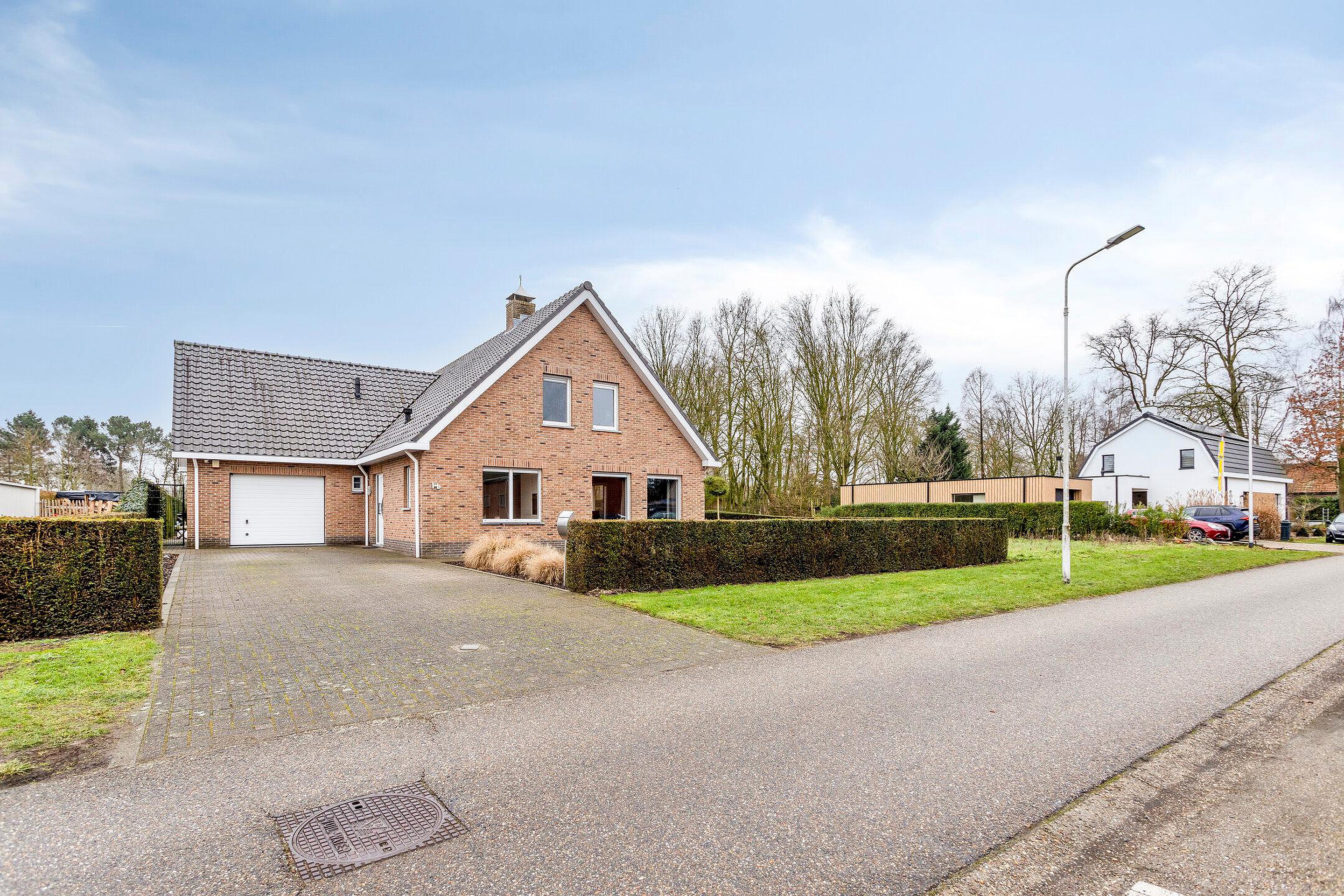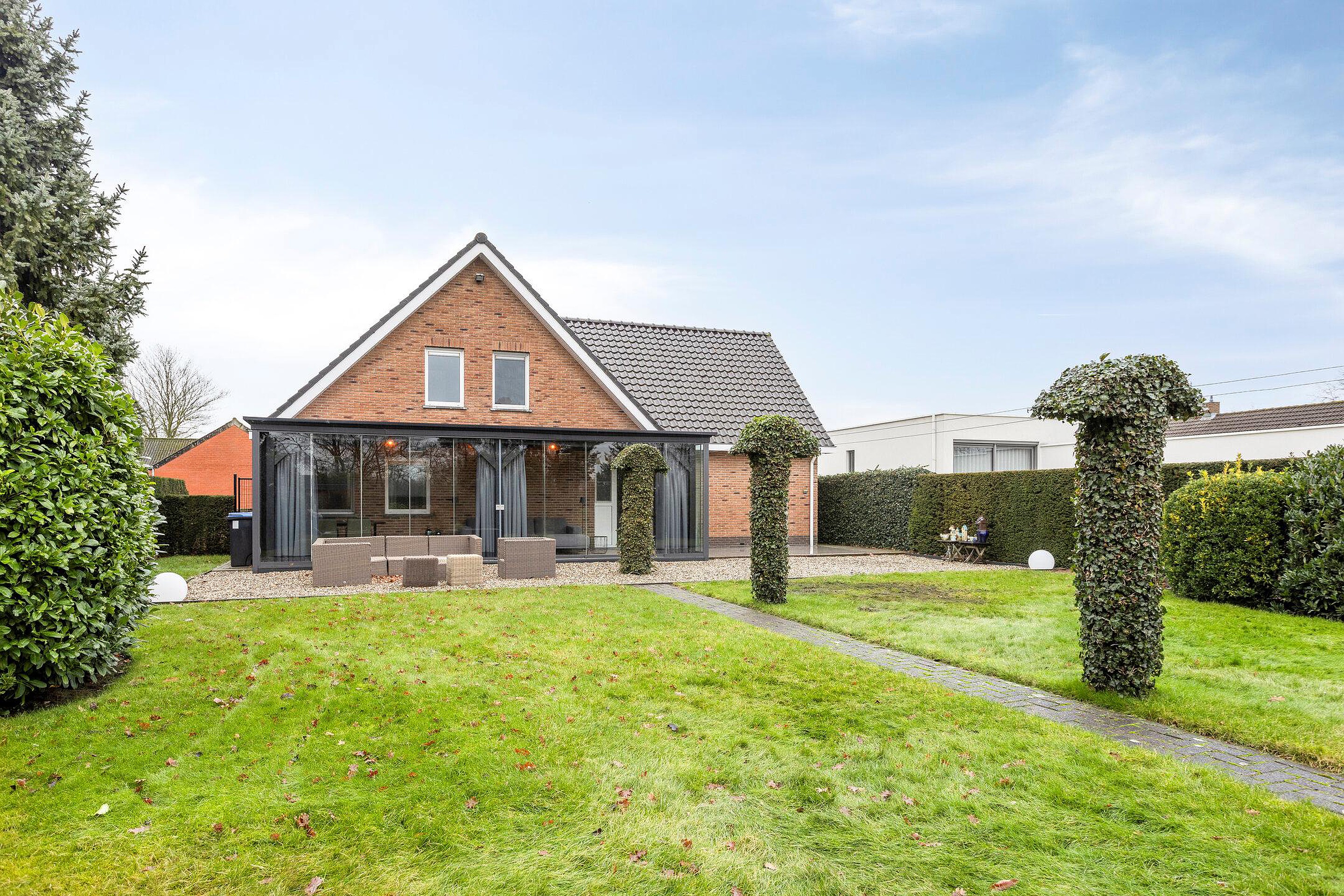 Onder architectuur gebouwde, goed onderhouden en geïsoleerde woning met aangebouwde tuinkamer en aanpandige garage met zolder.