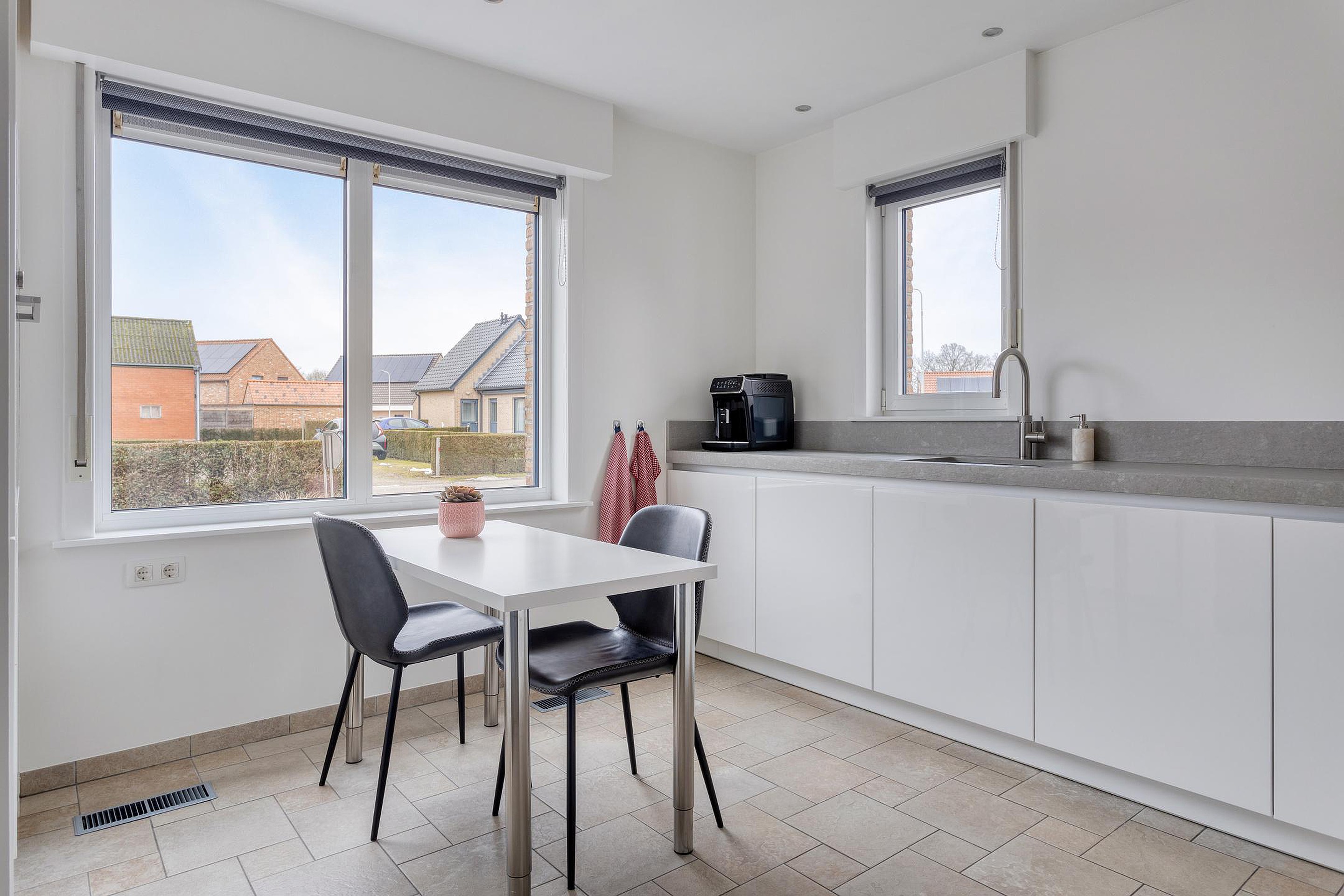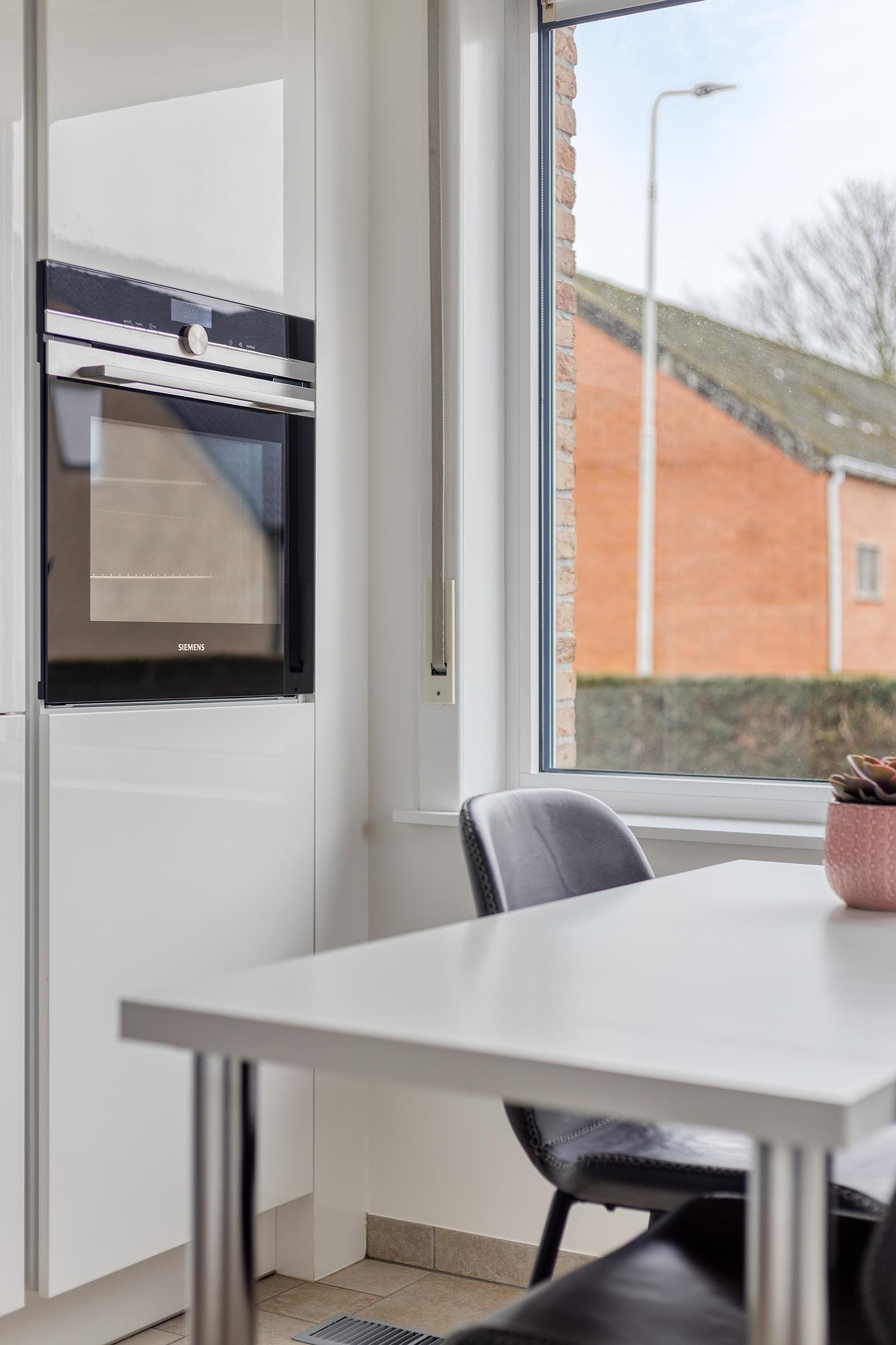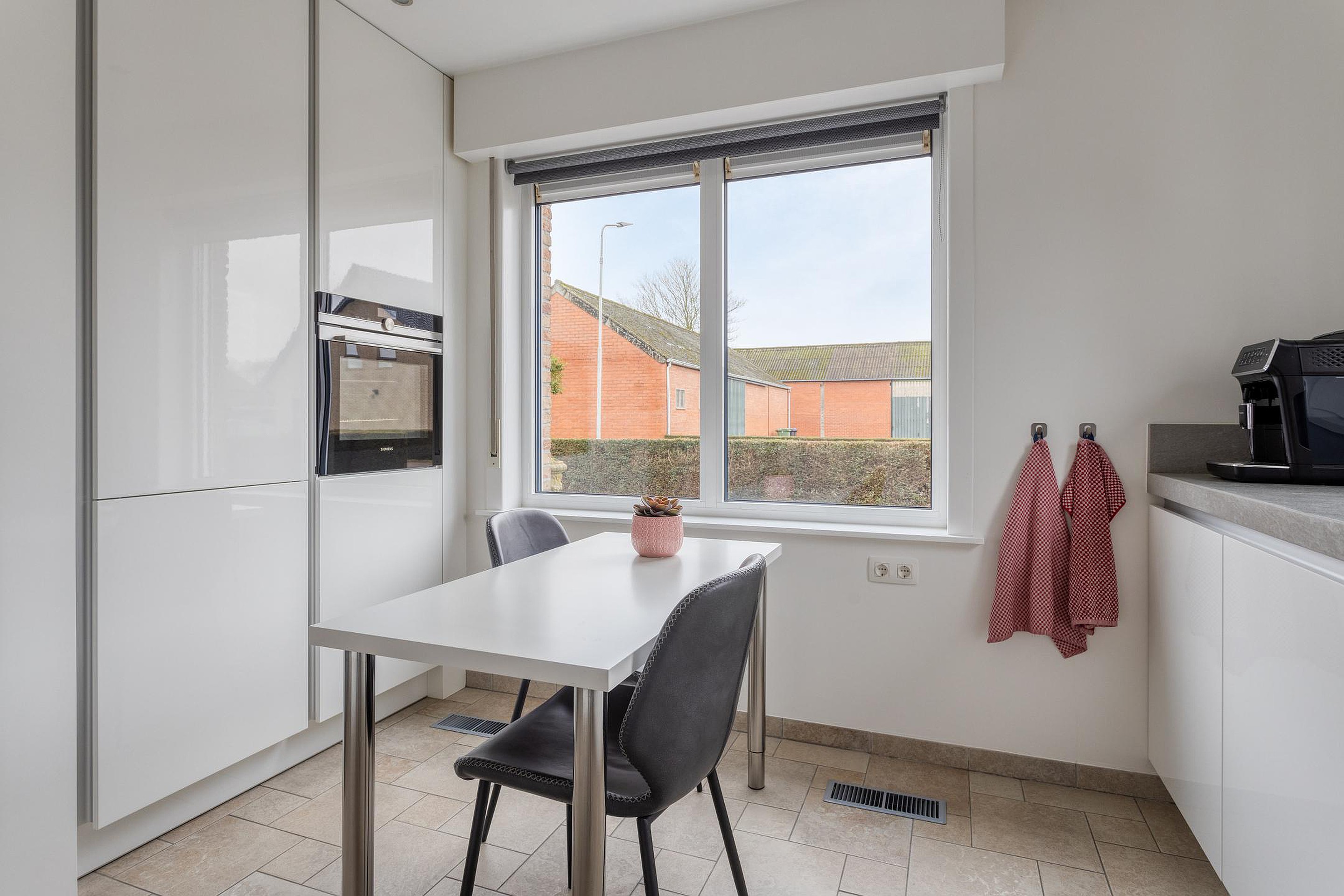 De keuken is vernieuwd in 2018 en voorzien van Siemens inbouwapparatuur, zoals een Quooker, inductiekookplaat, wasemkap, oven, koelkast en vaatwasser.