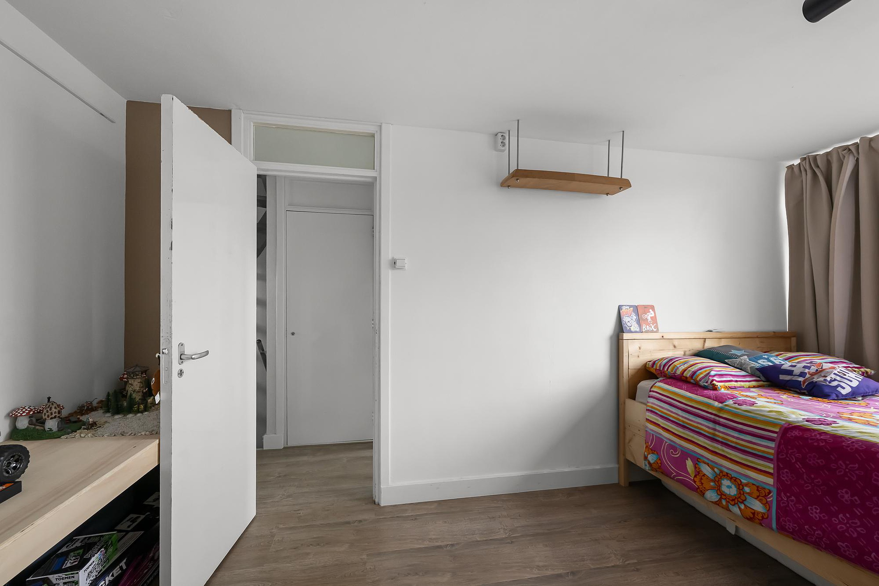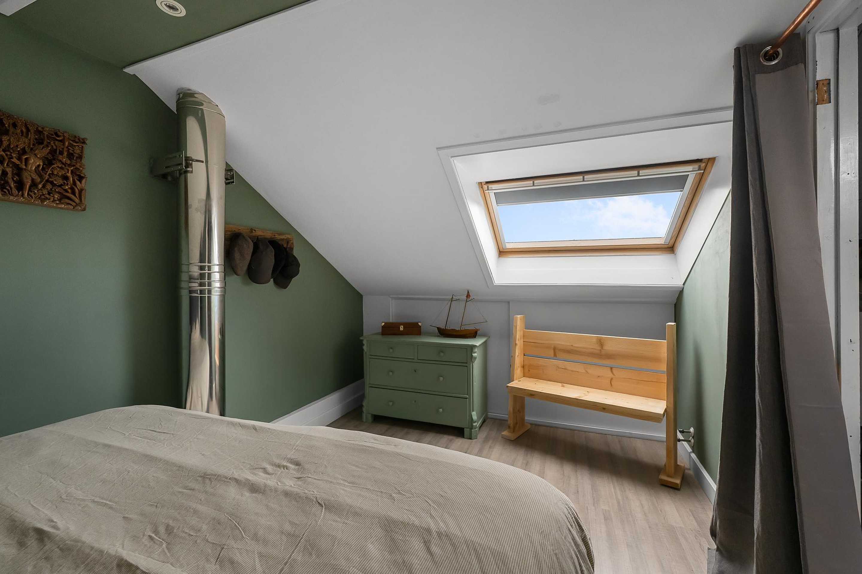 De tweede verdieping biedt verrassend veel ruimte. Op de voorzolder is plek voor de wasmachine en droger. Daarnaast bevindt zich hier de vierde slaapkamer, voorzien van een dakraam en inbouwspots, perfect als extra slaapkamer, werkkamer of hobbyruimte.