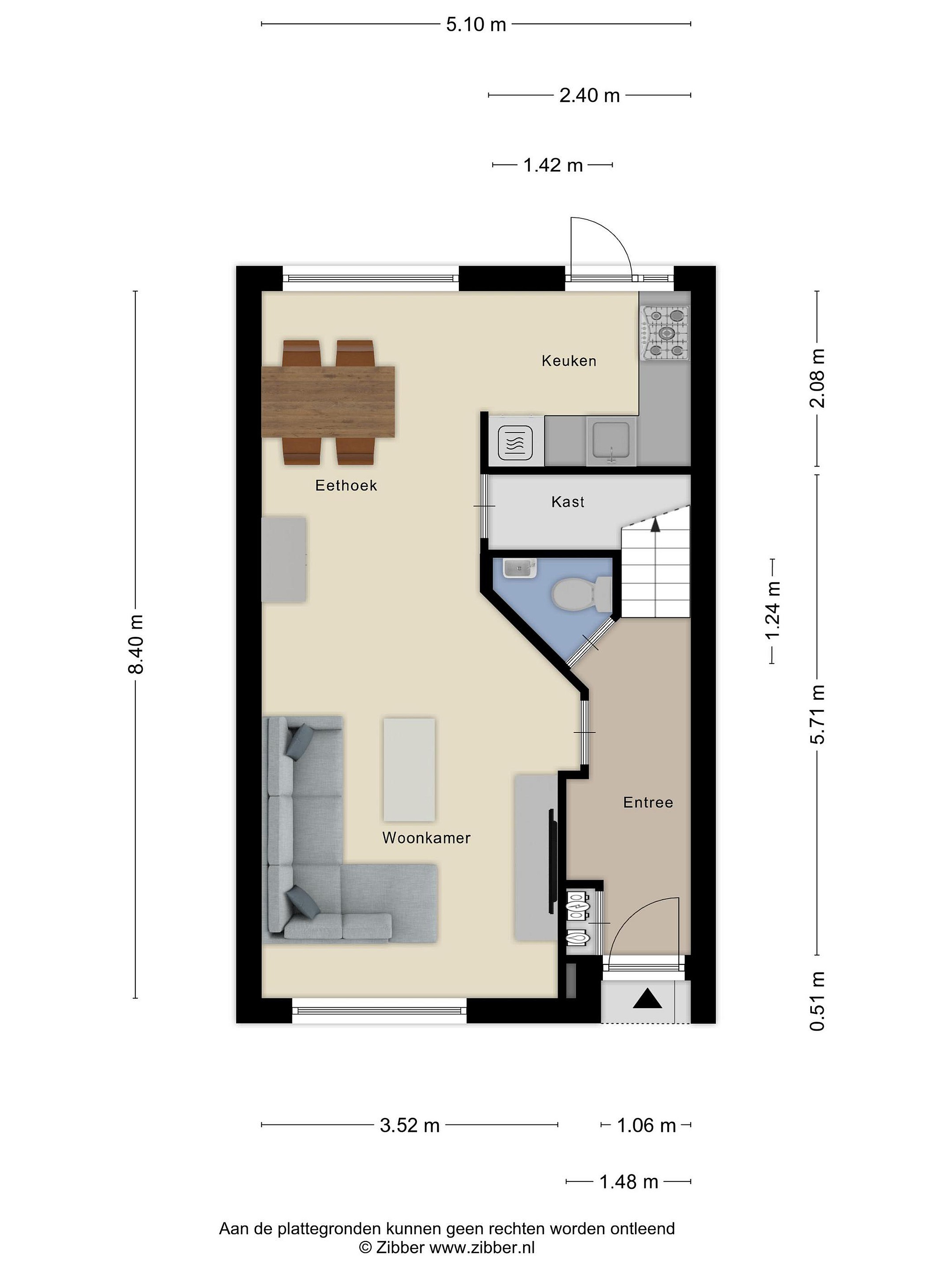 Deze woninginformatie is met de grootste zorg samengesteld, desondanks kunnen er geen rechten aan worden ontleend. Er wordt dan ook geen enkele aansprakelijkheid aanvaard voor enige onvolledigheid, onjuistheid of anderszins, dan wel de gevolgen daarvan. Alle opgegeven maten en oppervlakten zijn indicatief.