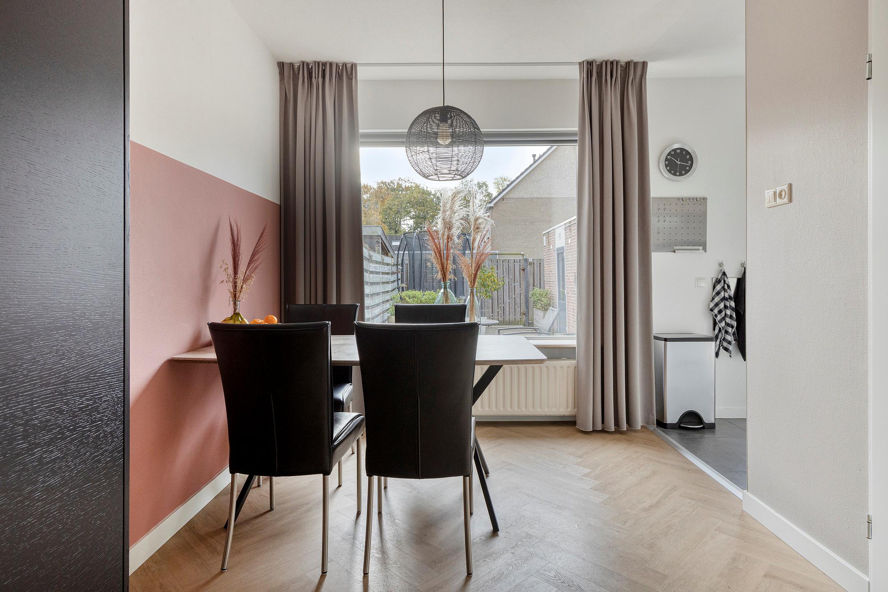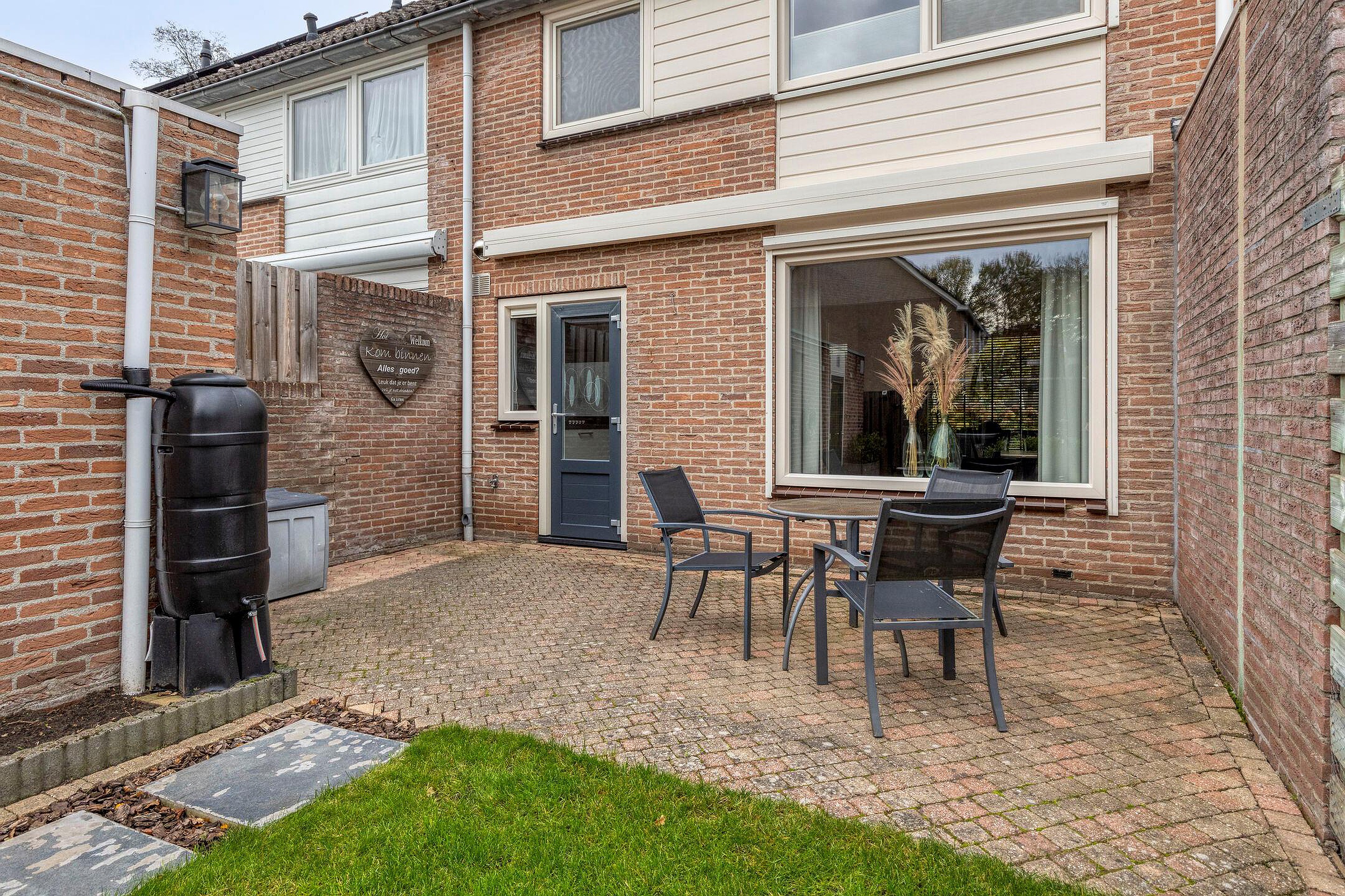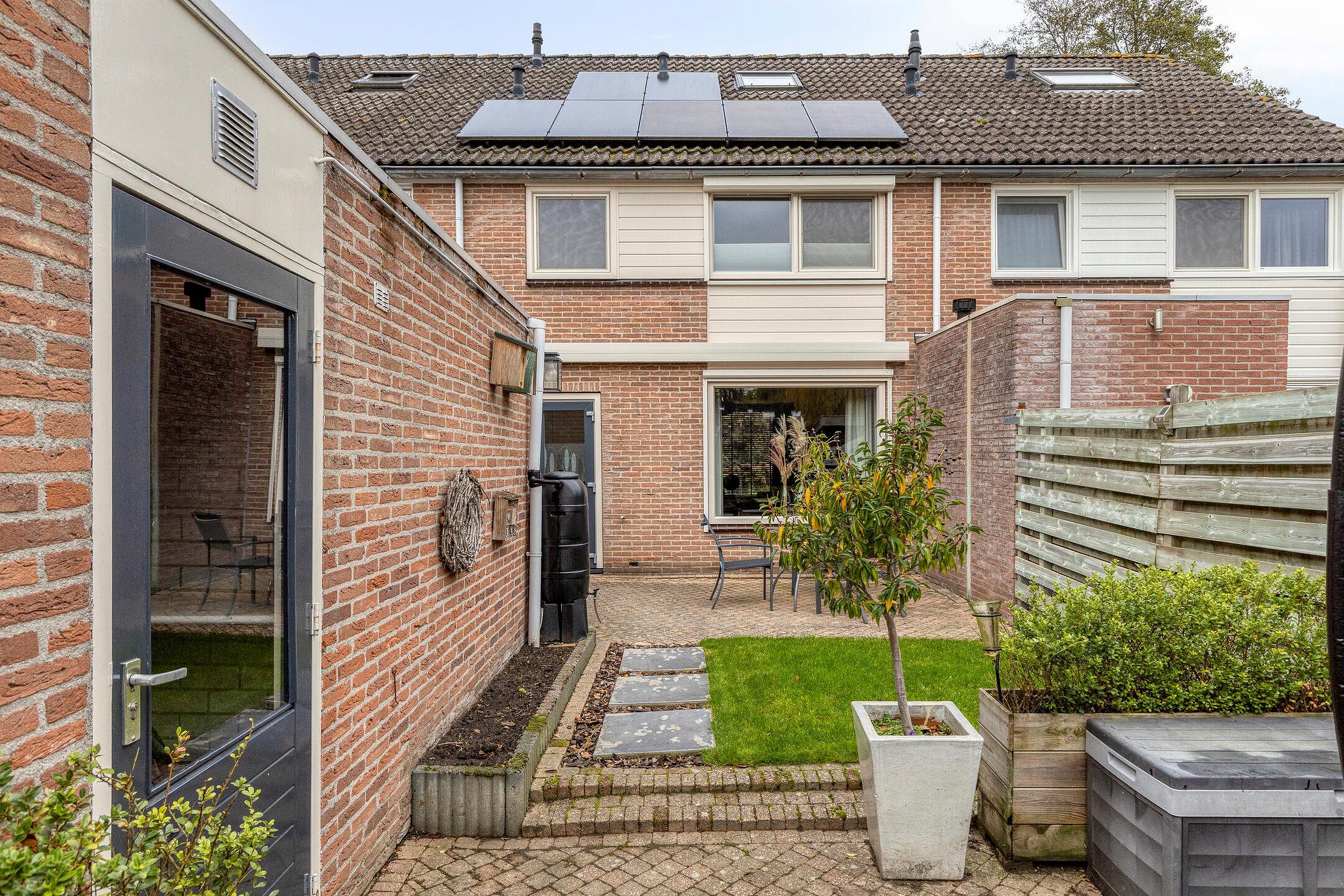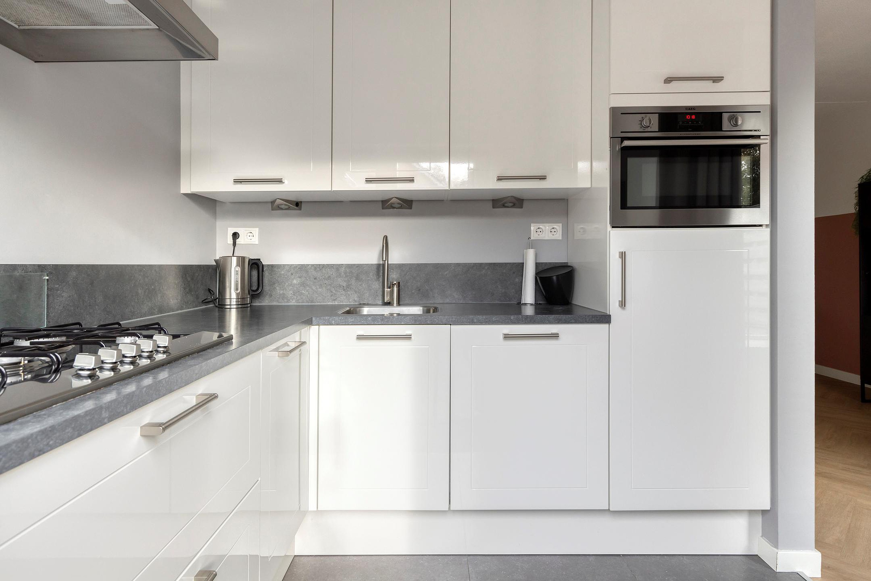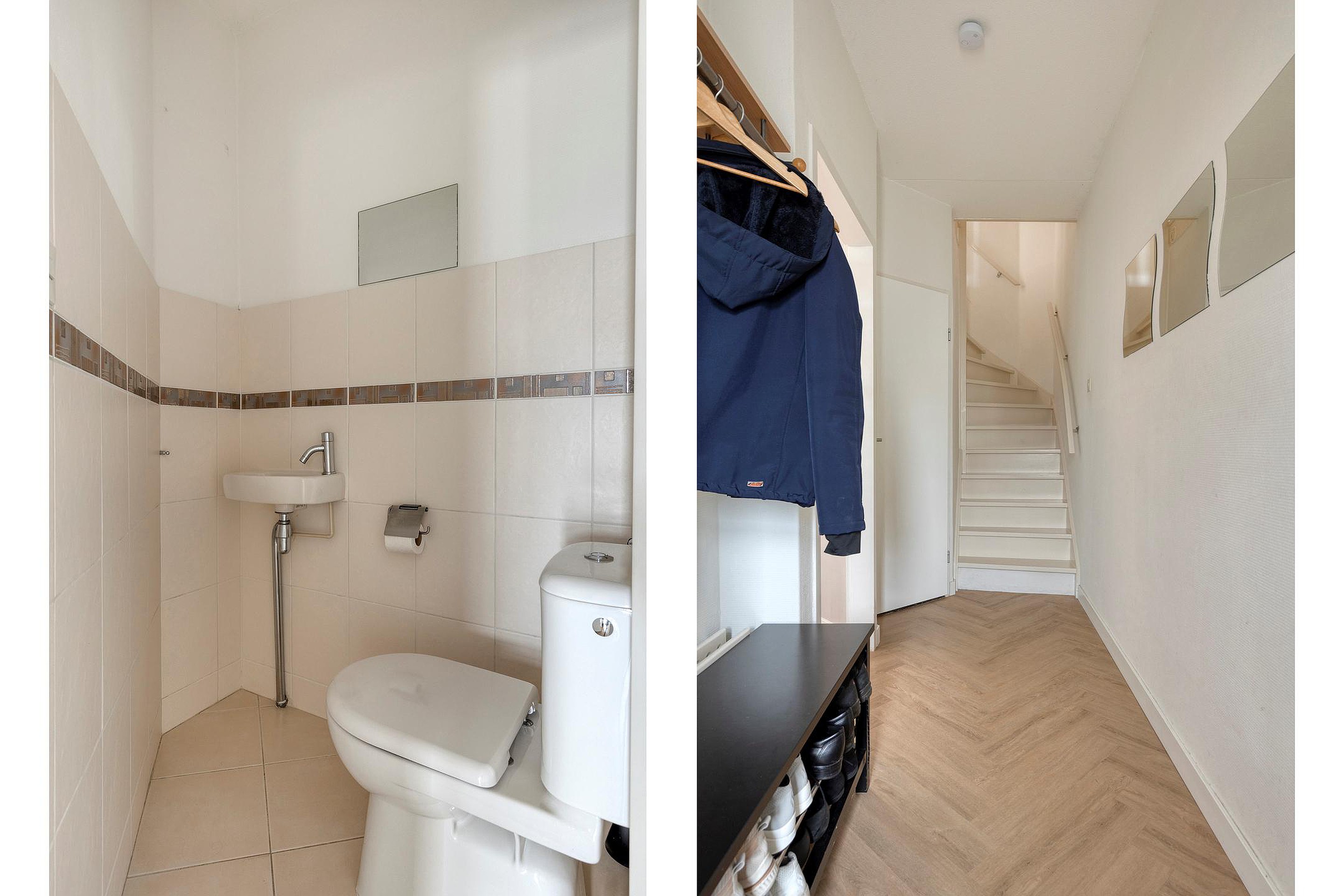 Via de verzorgde voortuin bereik je de voordeur en kom je de ruime hal binnen met meterkast, toilet met fonteintje, trapopgang en toegang tot woonkamer. De lichte en sfeervolle woonkamer met pvc-vloer is voorzien van een handige trapkast en zitgedeelte aan de voorzijde. Aan de achterzijde kijkt u vanaf uw eettafel in uw eigen tuin. En hier treft u ook de halfopen keuken die in een hoekopstelling is gerealiseerd. Deze vernieuwde inbouwkeuken (2016) is compleet uitgerust met een combimagnetron/oven, gas-kookplaat met wok brander, vaatwasser, afzuigkap/schouw en koelkast met vriesvak. Door middel van een tuindeur komt u in de zonnige achtertuin met zonneterras, borders en de stenen schuur.
