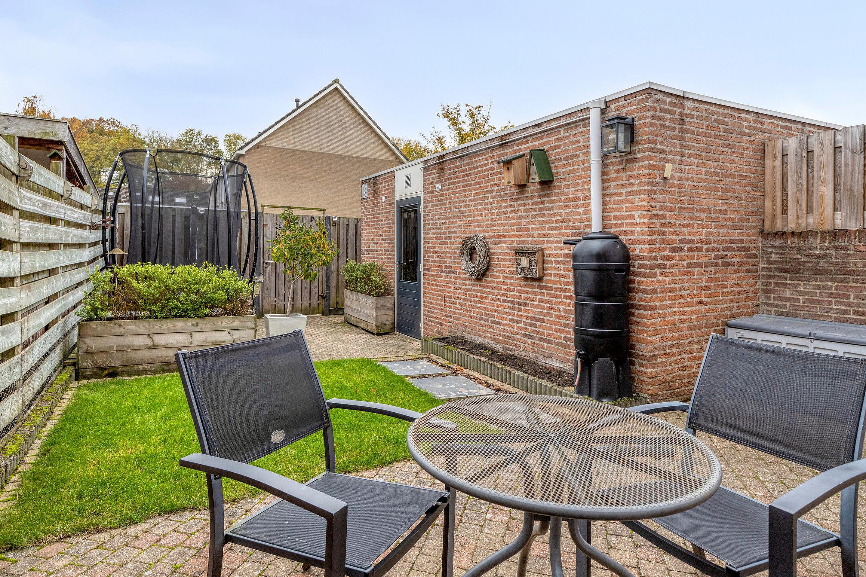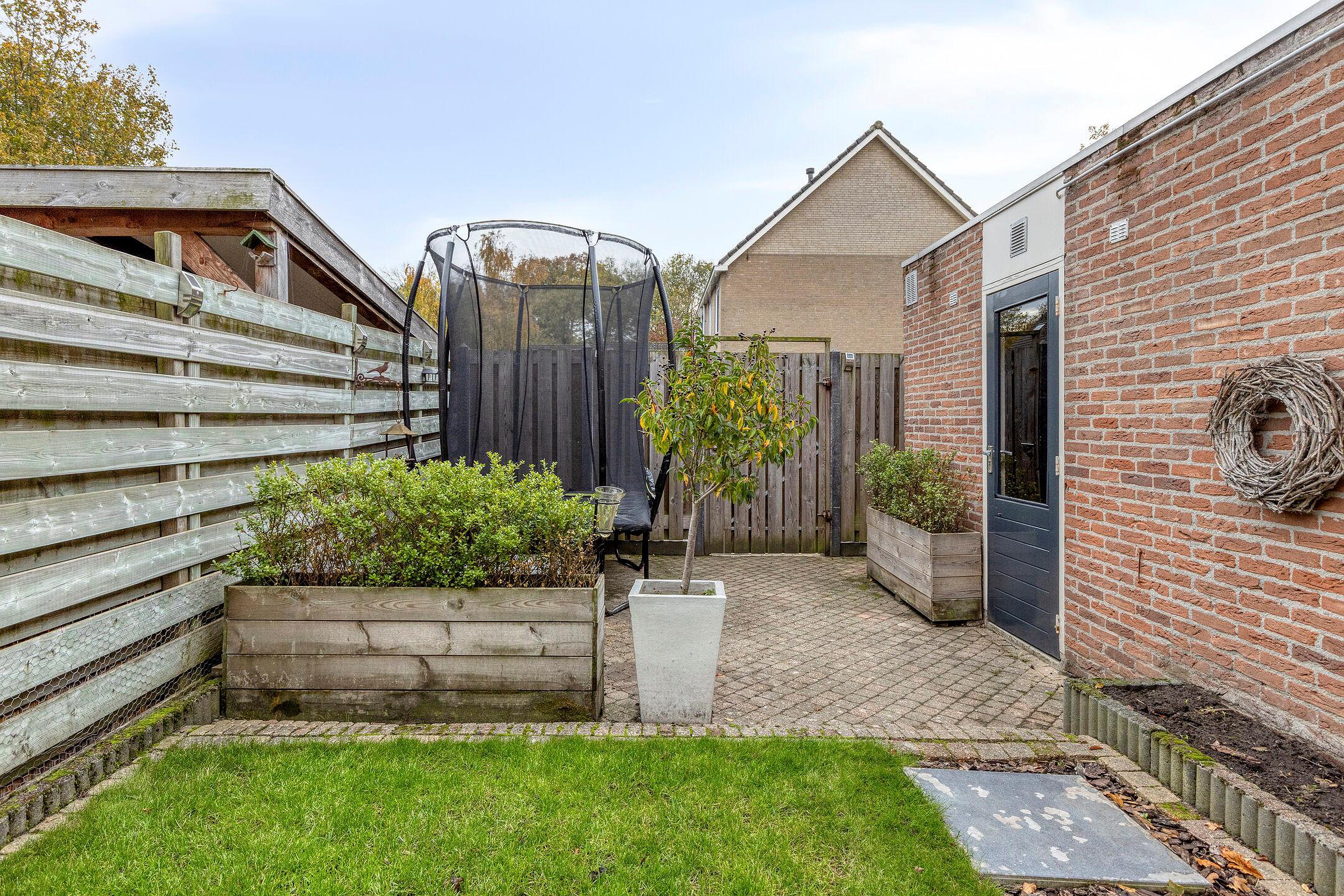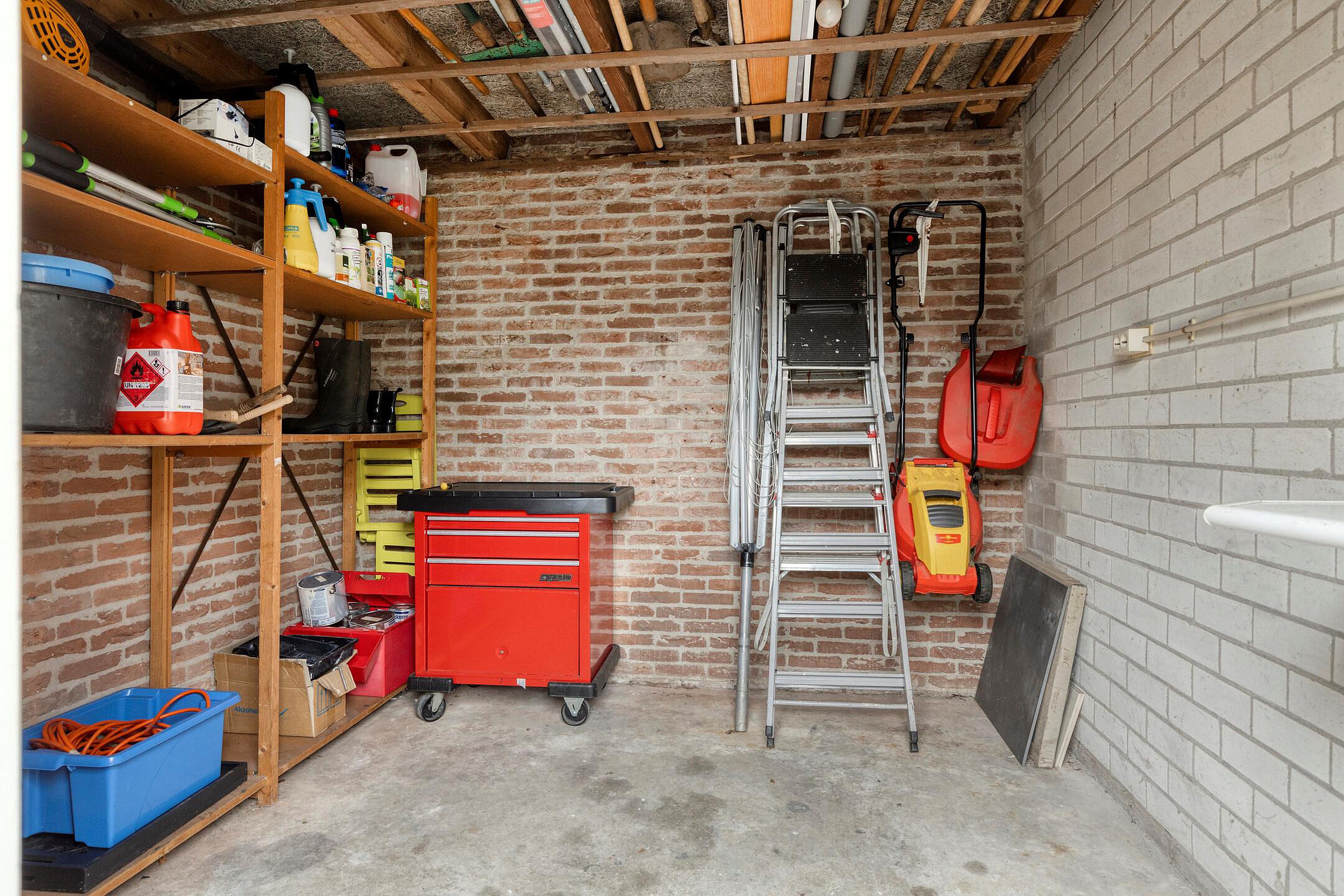De achtertuin is onderhoudsgemakkelijk én keurig aangelegd. Deze strakke tuin biedt een vrije achterom en beschikt over een praktische stenen schuur met elektra.