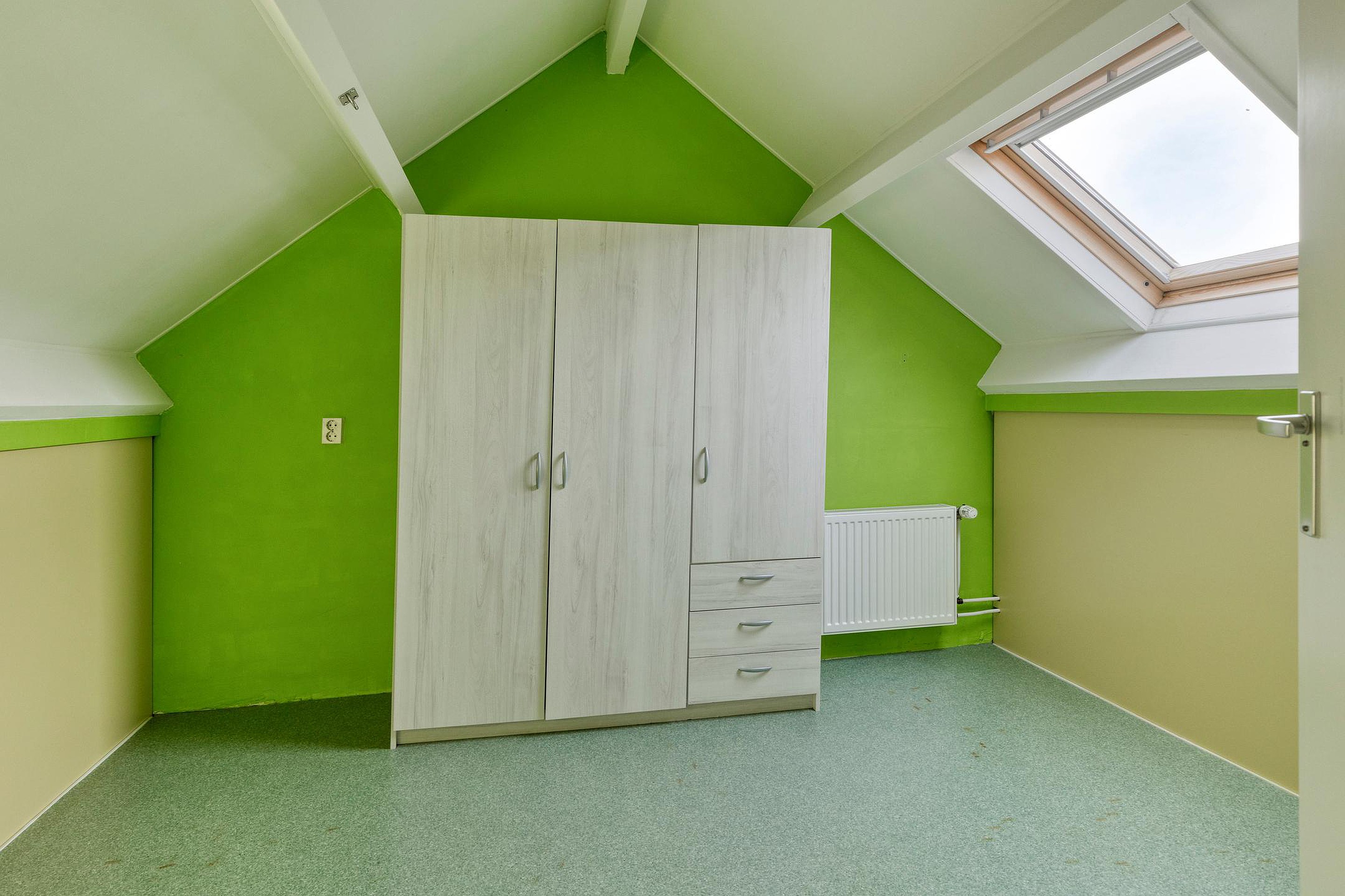 Via een vaste trap bereikt u de zolderverdieping. Hier vindt u een ruime vierde slaapkamer met zeil, veel bergruimte in de schuine kap en een Velux dakvenster. De CV-Combiketel Remeha Avanta 28c (2007) en witgoedaansluitingen zijn op de overloop gesitueerd.