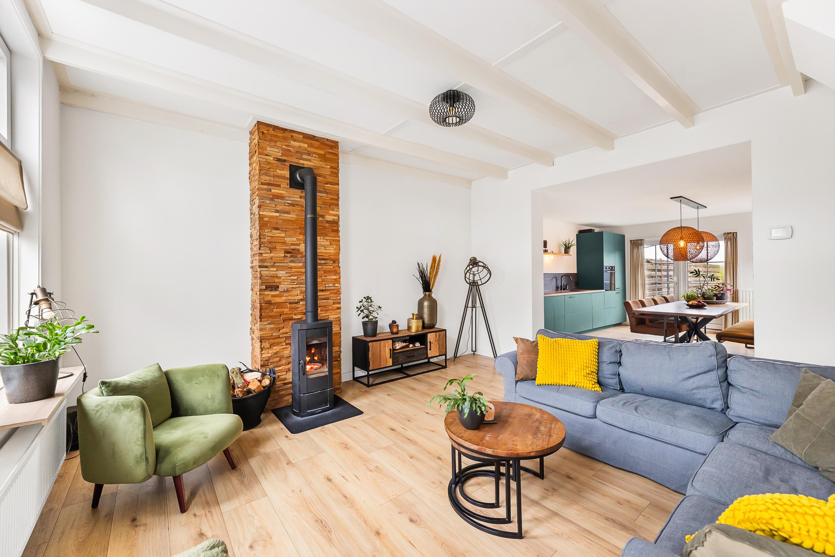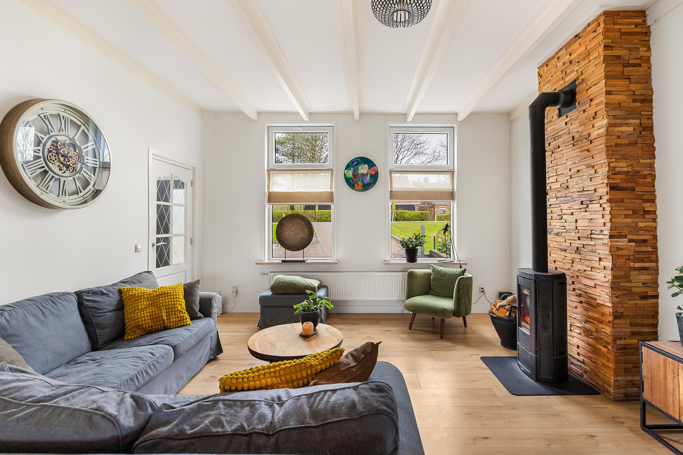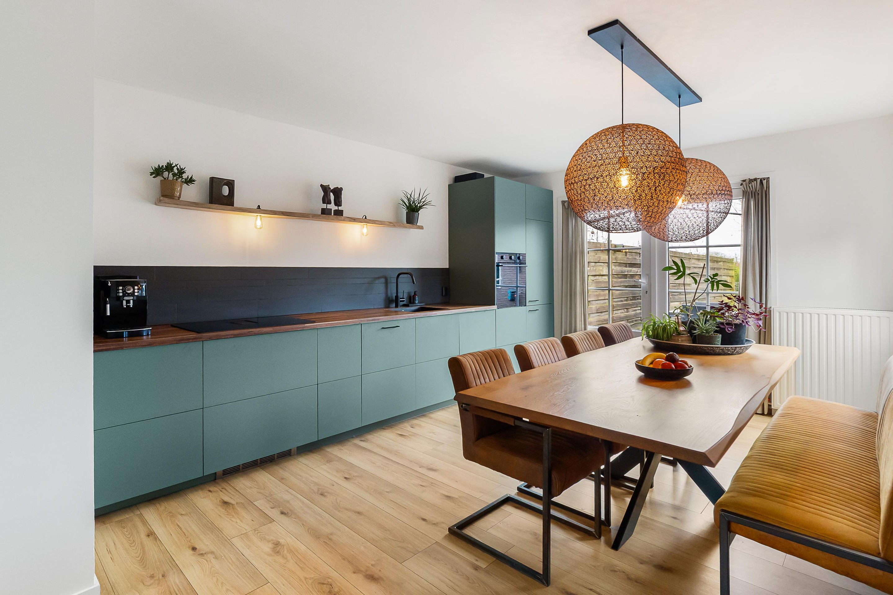 Begane grond Begane grond: Hal met vernieuwde meterkast, sfeervolle woonkamer met balkenplafond en een houtkachel die zorgdraagt voor een huiselijke sfeer tijdens de koudere maanden. De moderne woonkeuken is in 2025 vernieuwd en beschikt over diverse inbouwapparatuur zoals een inductiekookplaat, afzuigkap, oven, vaatwasser en een koel-/vriescombinatie. Vanuit de keuken loopt u via de openslaande tuindeuren direct de tuin in. Via een tussenportaal met praktische vaste kastenwand met opstelling c.v.-combiketel is er toegang tot de verzorgde en compleet uitgevoerde badkamer v.v. ligbad, inloopdouche en een badmeubel met dubbele wastafel. In de praktische bijkeuken is een extra keukenblok geplaatst, wat zorgdraagt voor extra opbergruimte en gebruiksgemak, tevens bevindt zich hier een moderne toiletruimte en wasmachine- en drogeropstelling en is er ook van hieruit toegang tot de tuin.