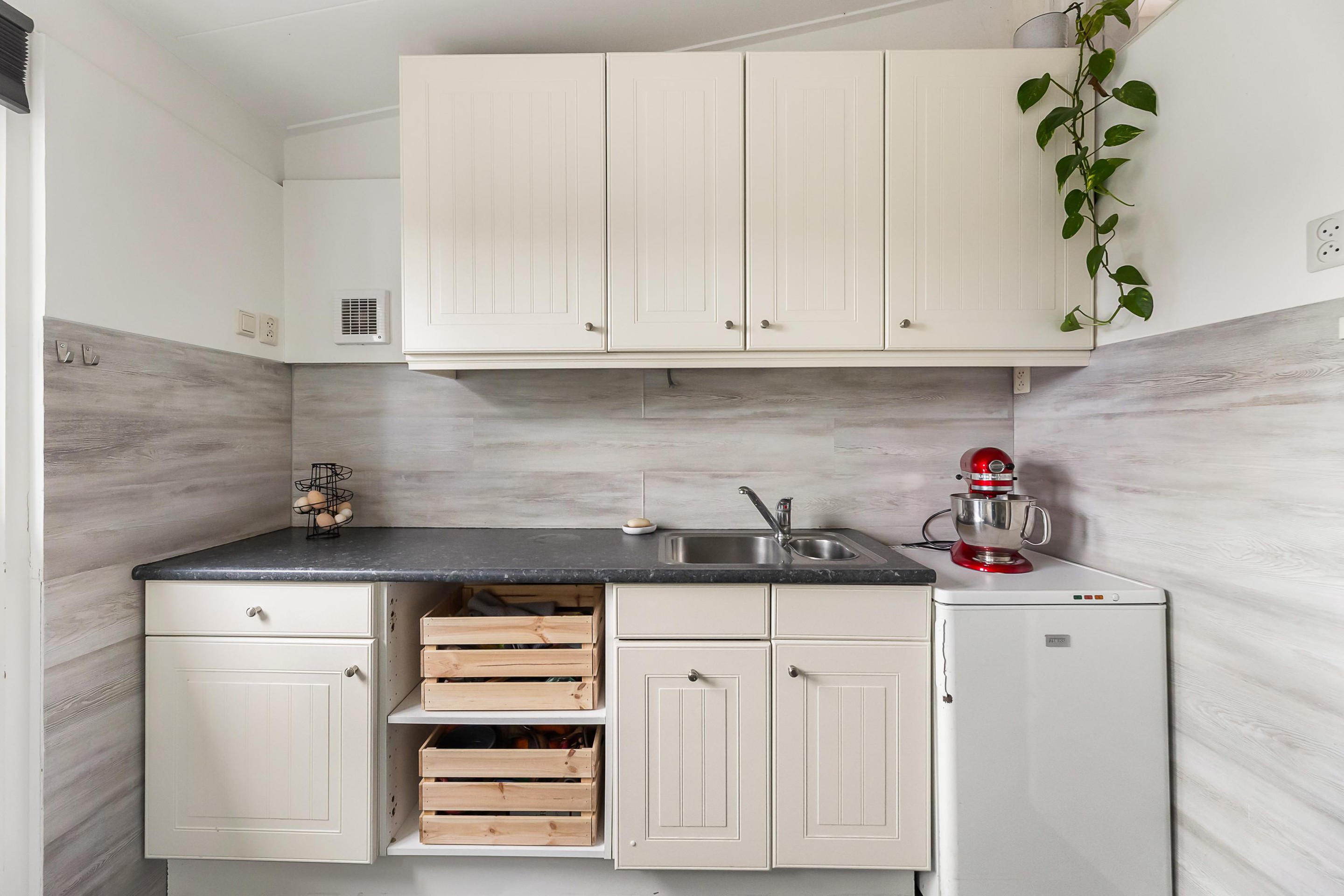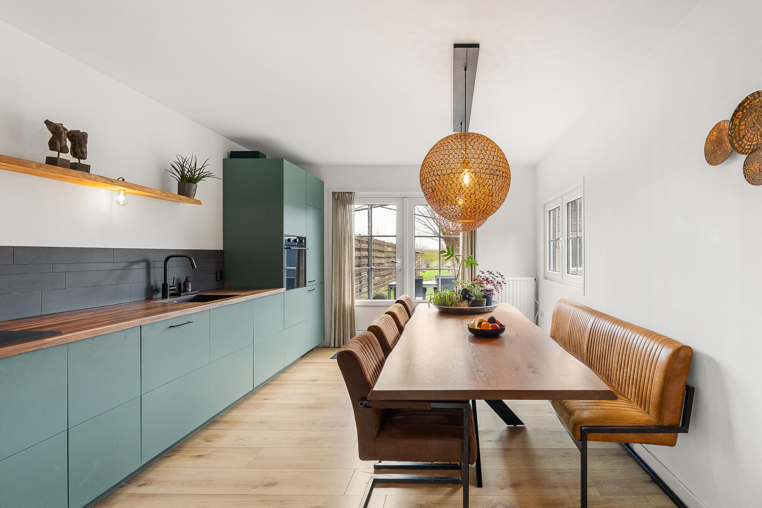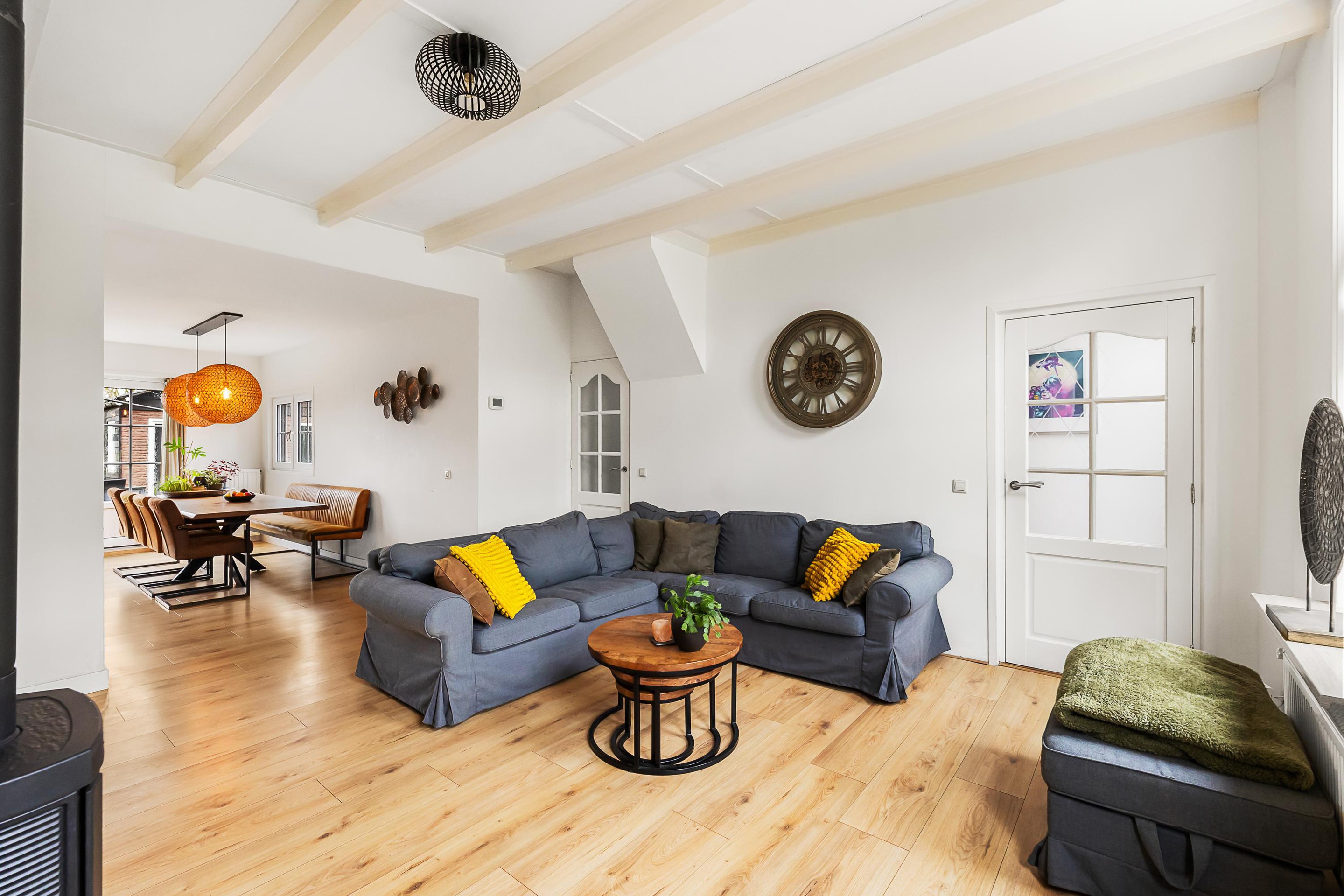 Begane grond Begane grond: Hal met vernieuwde meterkast, sfeervolle woonkamer met balkenplafond en een houtkachel die zorgdraagt voor een huiselijke sfeer tijdens de koudere maanden. De moderne woonkeuken is in 2025 vernieuwd en beschikt over diverse inbouwapparatuur zoals een inductiekookplaat, afzuigkap, oven, vaatwasser en een koel-/vriescombinatie. Vanuit de keuken loopt u via de openslaande tuindeuren direct de tuin in. Via een tussenportaal met praktische vaste kastenwand met opstelling c.v.-combiketel is er toegang tot de verzorgde en compleet uitgevoerde badkamer v.v. ligbad, inloopdouche en een badmeubel met dubbele wastafel. In de praktische bijkeuken is een extra keukenblok geplaatst, wat zorgdraagt voor extra opbergruimte en gebruiksgemak, tevens bevindt zich hier een moderne toiletruimte en wasmachine- en drogeropstelling en is er ook van hieruit toegang tot de tuin.