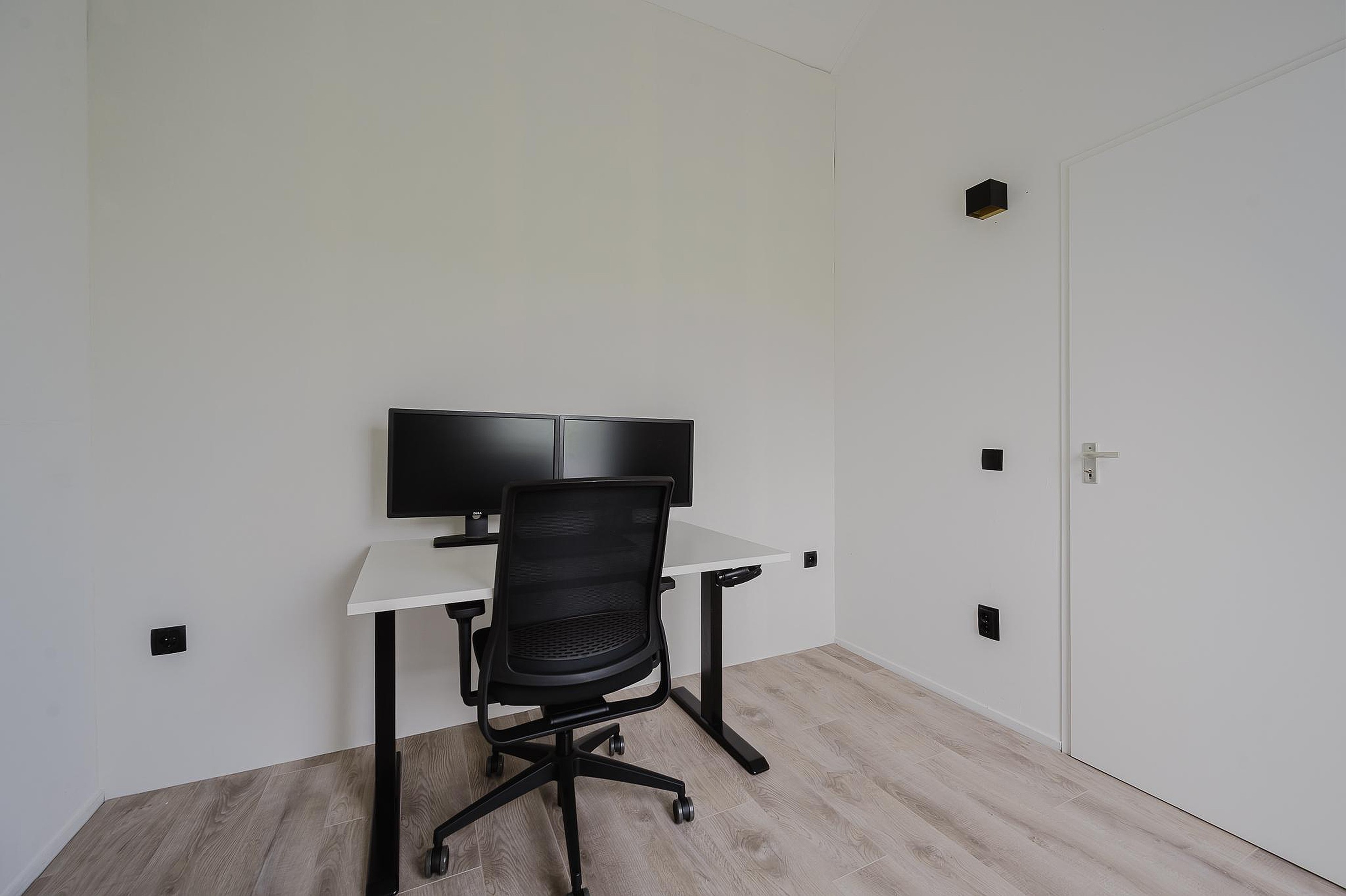 Aan de achterzijde bevindt zich de ruime master bedroom, extra groot dankzij de verbrede dakkapel. In deze kamer is een inloopkast gerealiseerd, die eventueel ook als derde slaapkamer gebruikt kan worden.