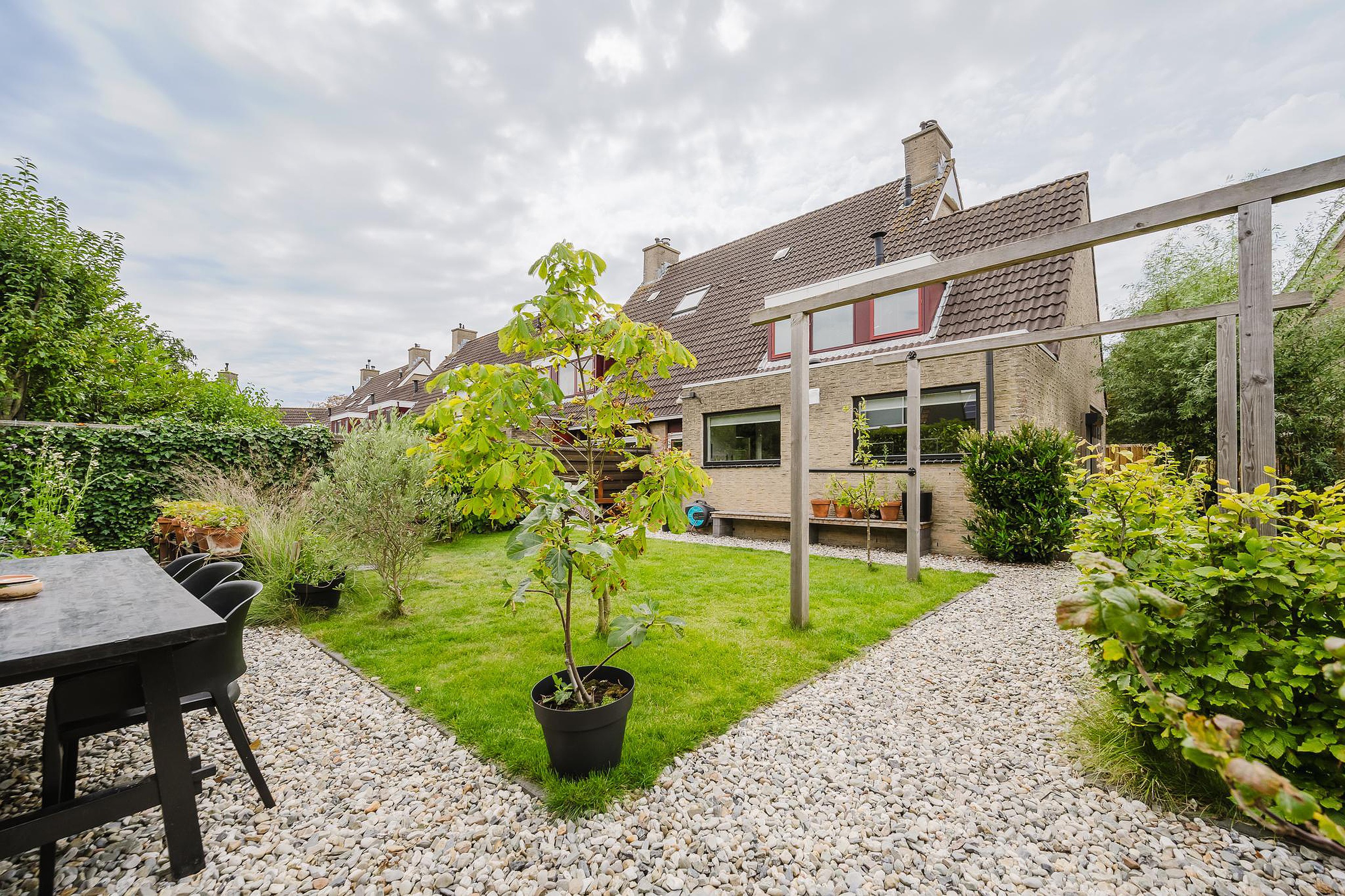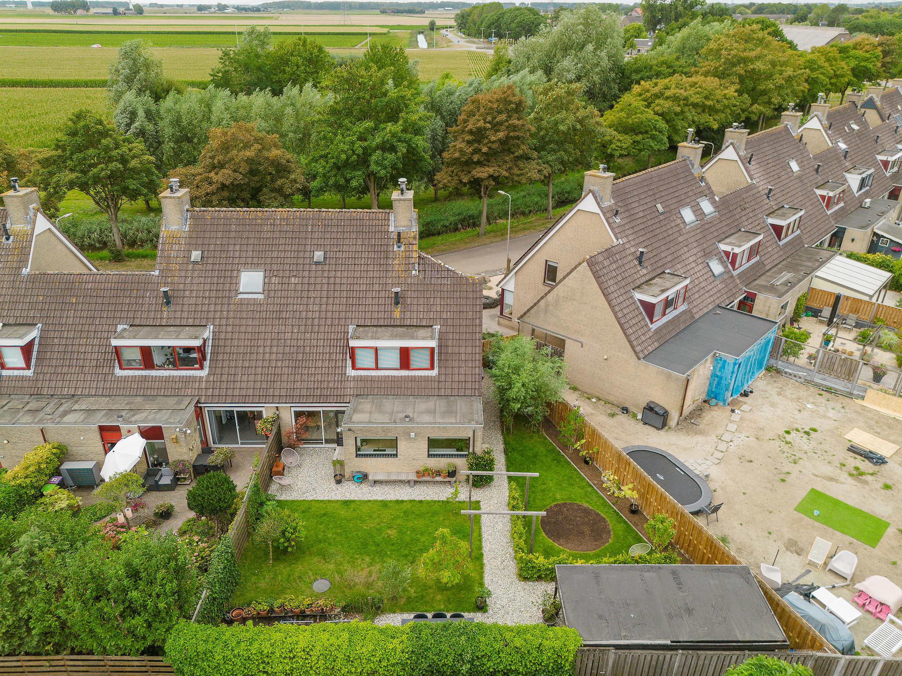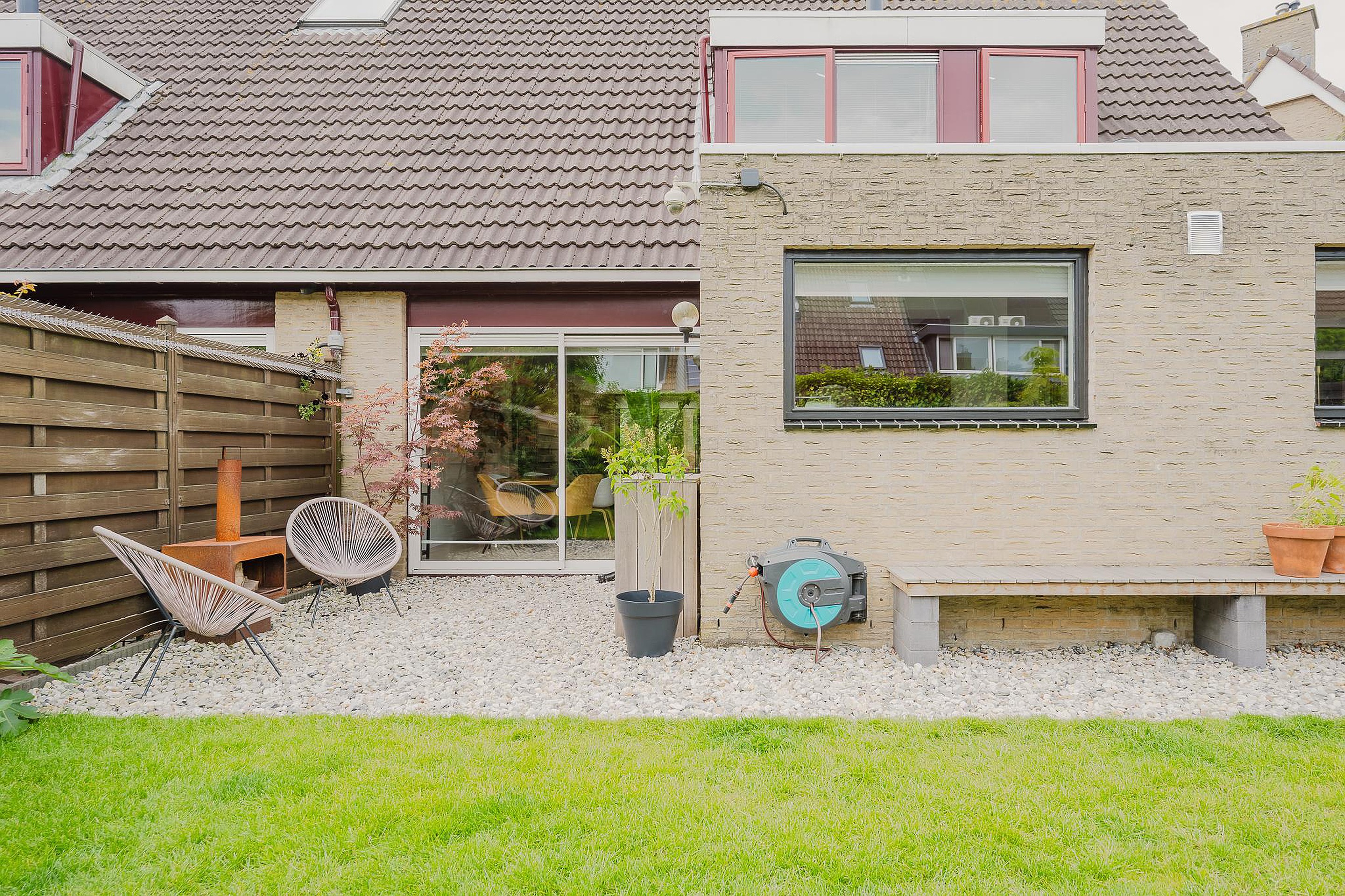 Via de keuken of de schuifpui in de woonkamer, bereik je de adembenemende achtertuin gelegen op het noordoosten. De achtertuin is in 2023 volledig opnieuw aangelegd en is voorzien van verschillende zithoekjes, waardoor je de hele dag kunt genieten van de zon. De houten vrijstaande schuur met overkapping is in 2021 geplaatst en zorgt voor extra sfeer.