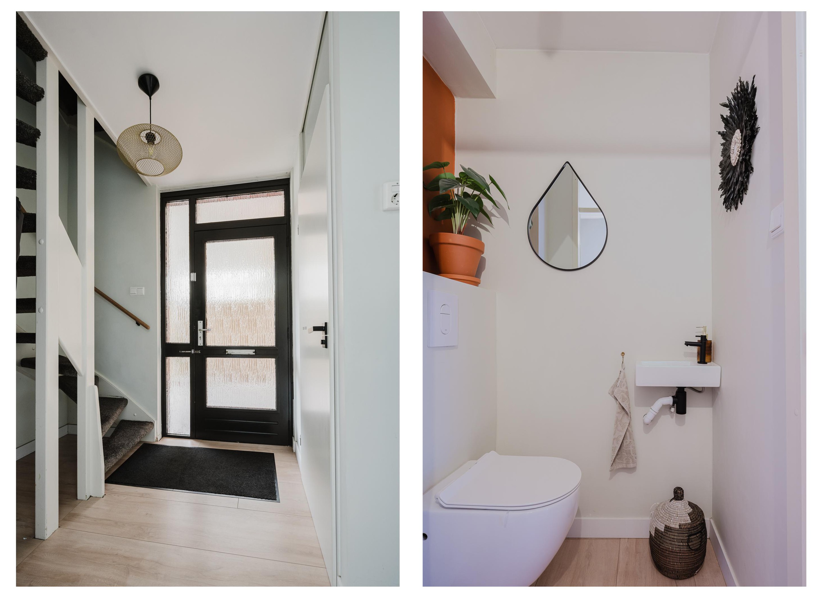 De woningentree biedt toegang tot de hal welke toegang biedt tot het toilet, de trapopgang, de meterkast en de woonkamer.
