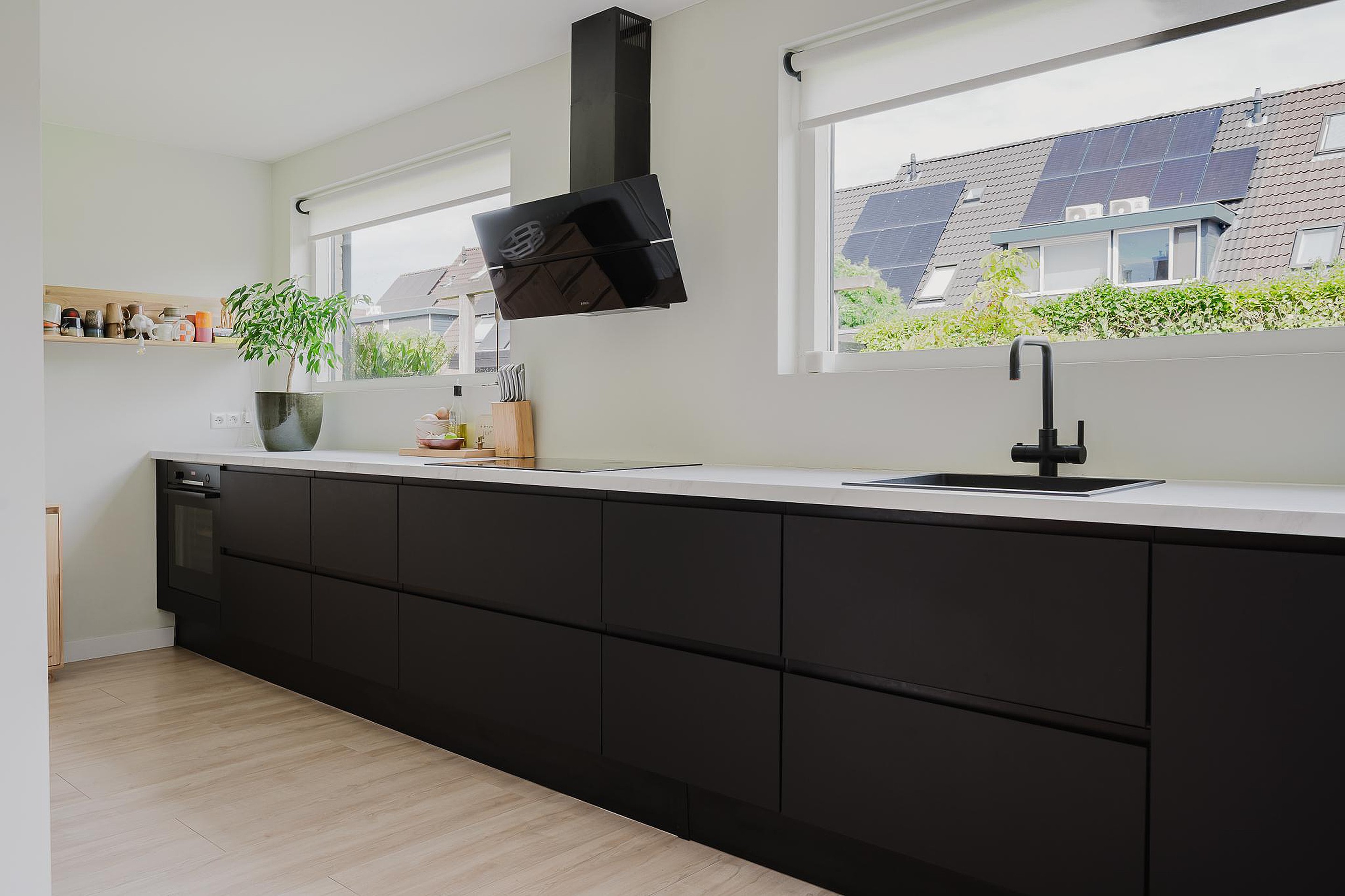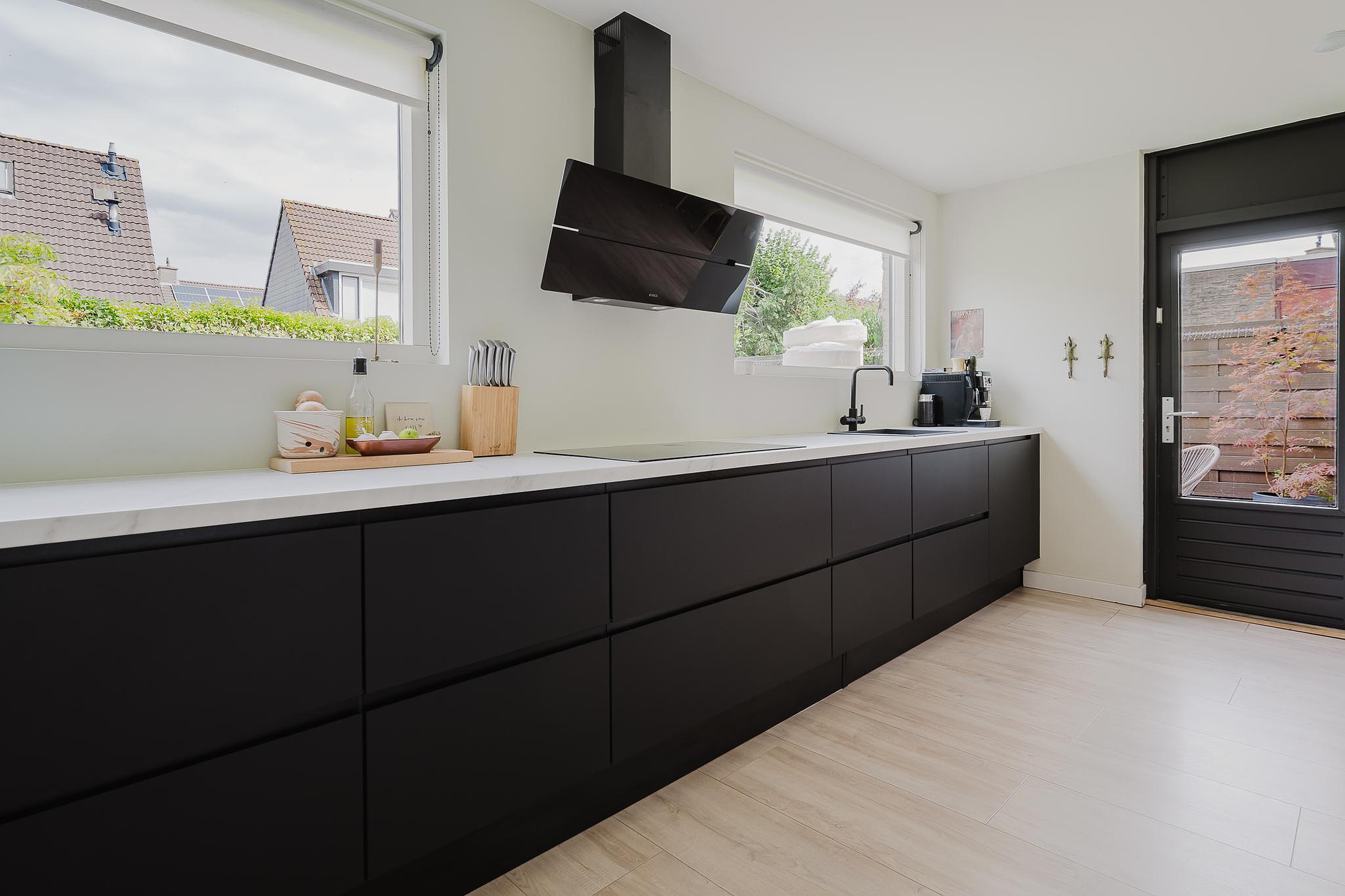 De stijlvolle keuken is in 2021 volledig gerenoveerd en is voorzien van een kunststof blad, een losse koel-vriescombi, heeft een 4-pits inductie kookplaat, een celsius kokend waterkraan, een oven en een losse magnetron.