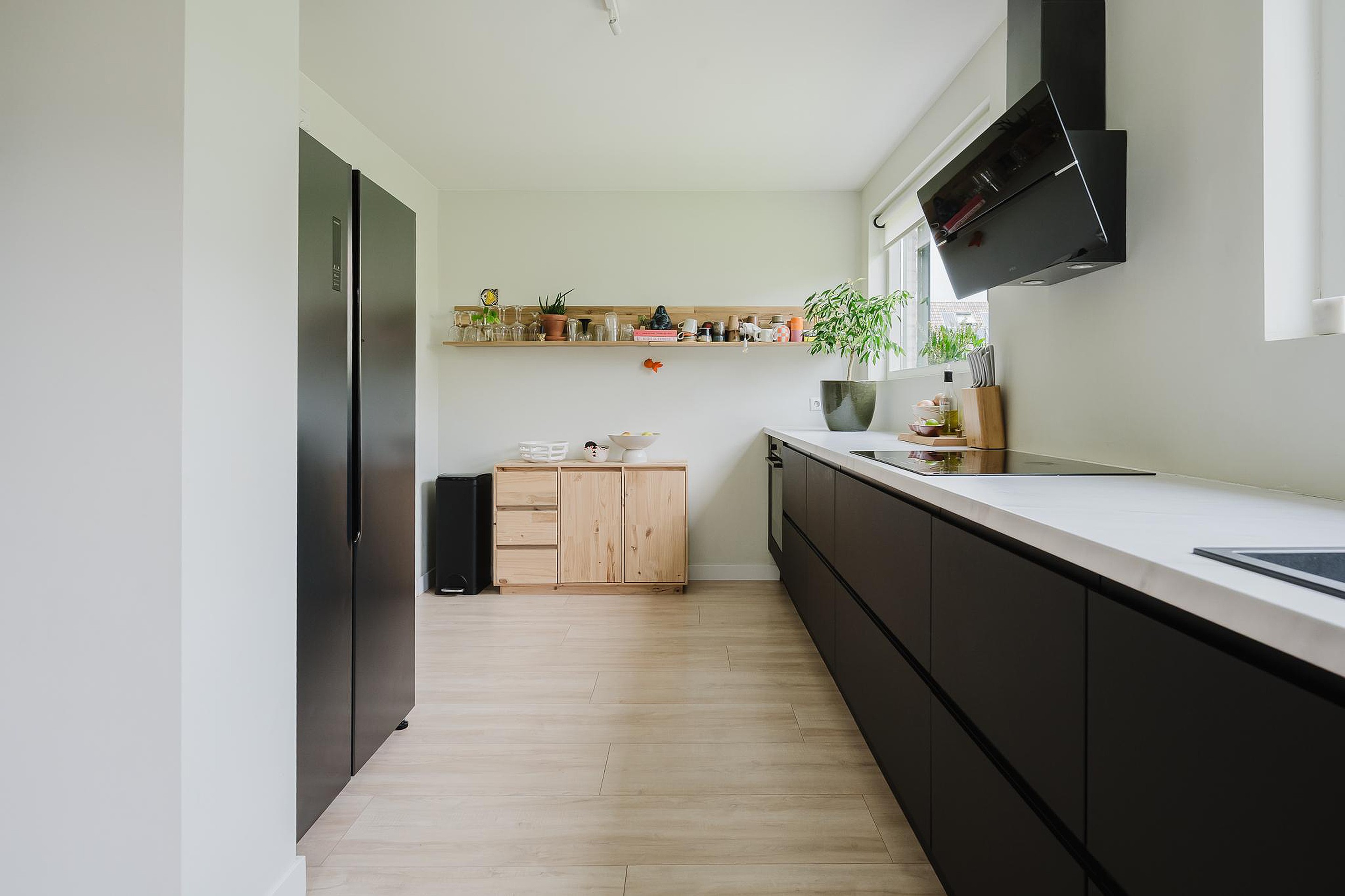 De voormalige garage is in 2021 volledig omgetoverd tot een waanzinnige woonkeuken en een praktische bijkeuken.