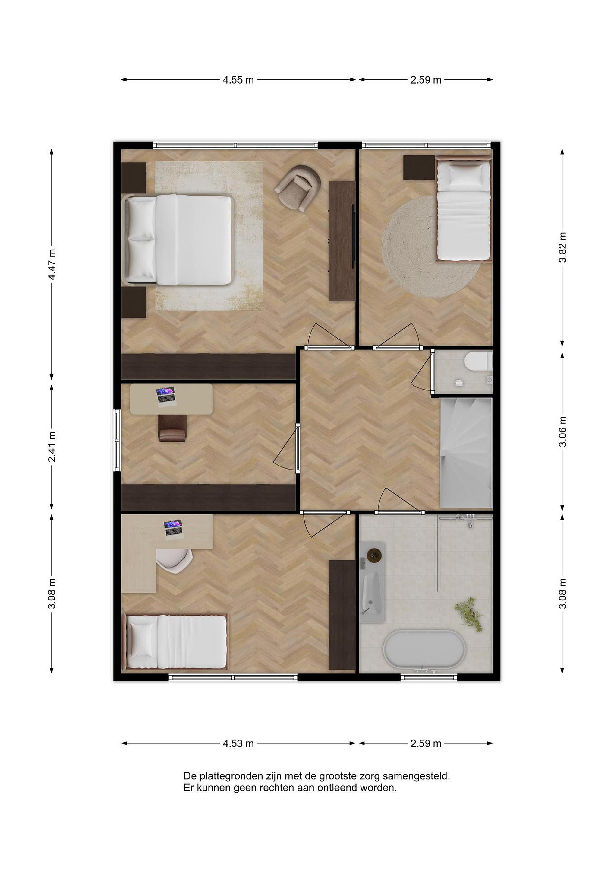 - Slaapkamer 4 is circa 309 cm x 453 cm